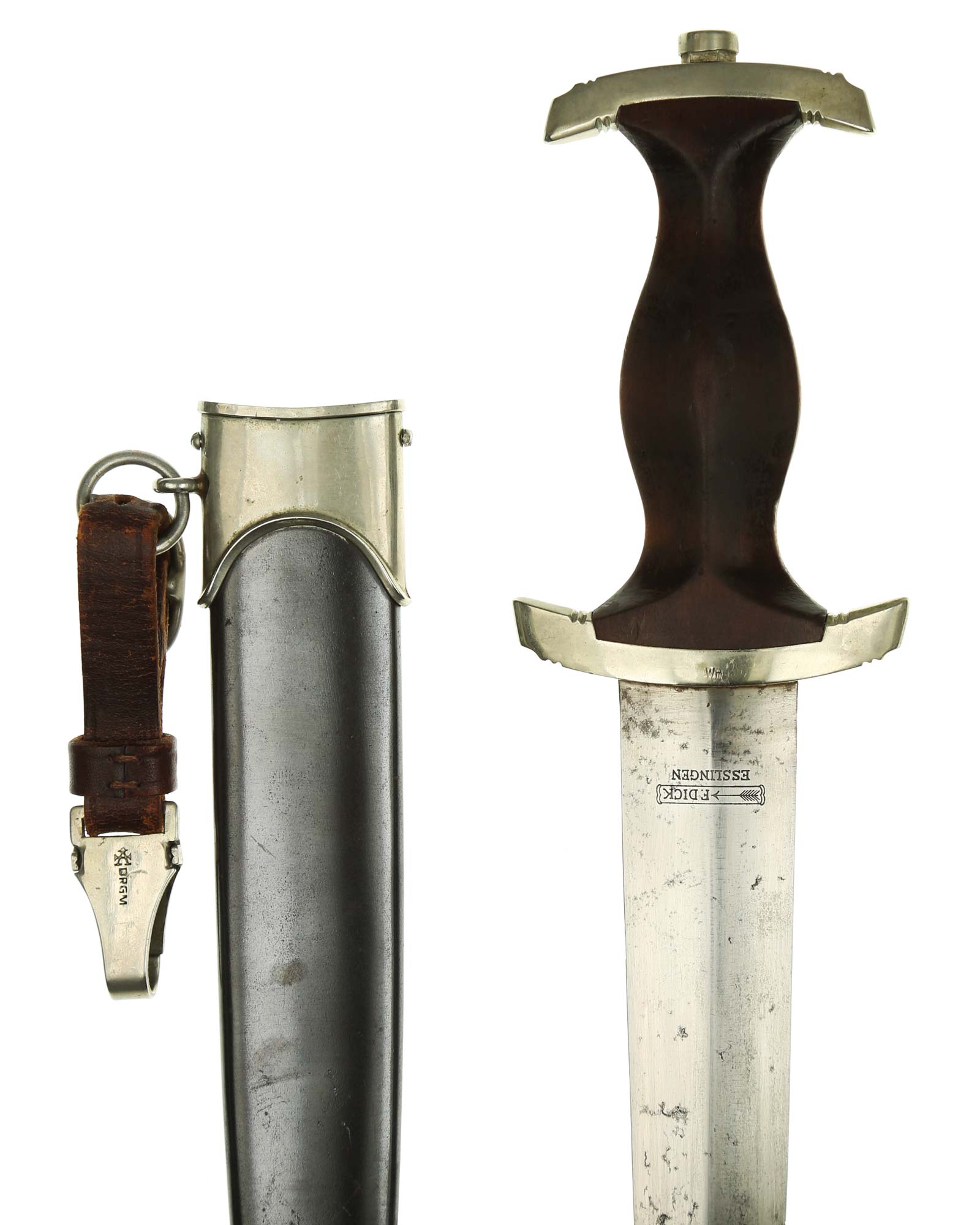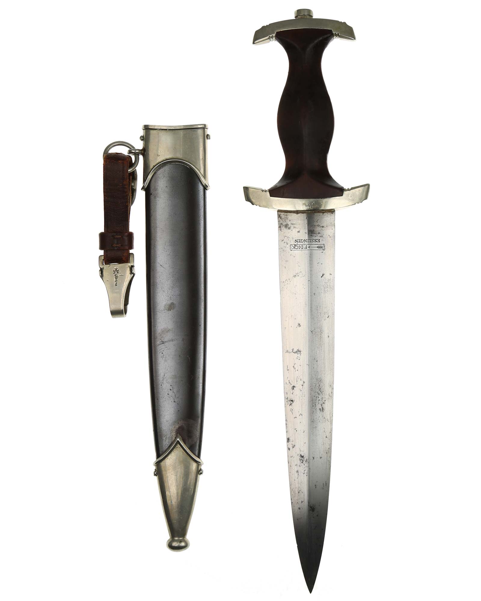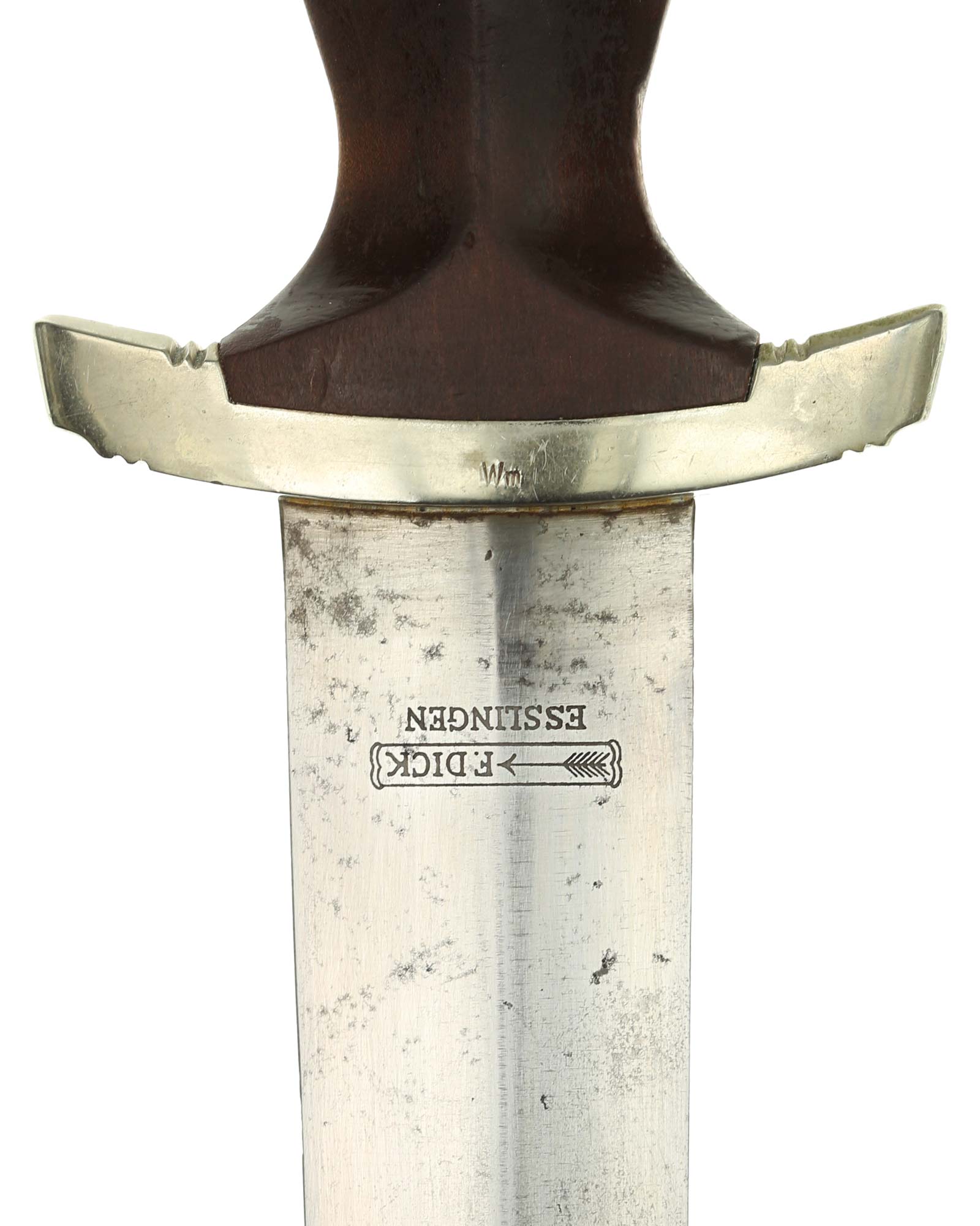 This early SA [Sturmabteilung] Dagger is in EXC+ condition. Model 1933. The total length is 37,3 cm. The Dagger has the maker mark on the blade: F. Dick Esslingen with Gau «Wm» Westmark.