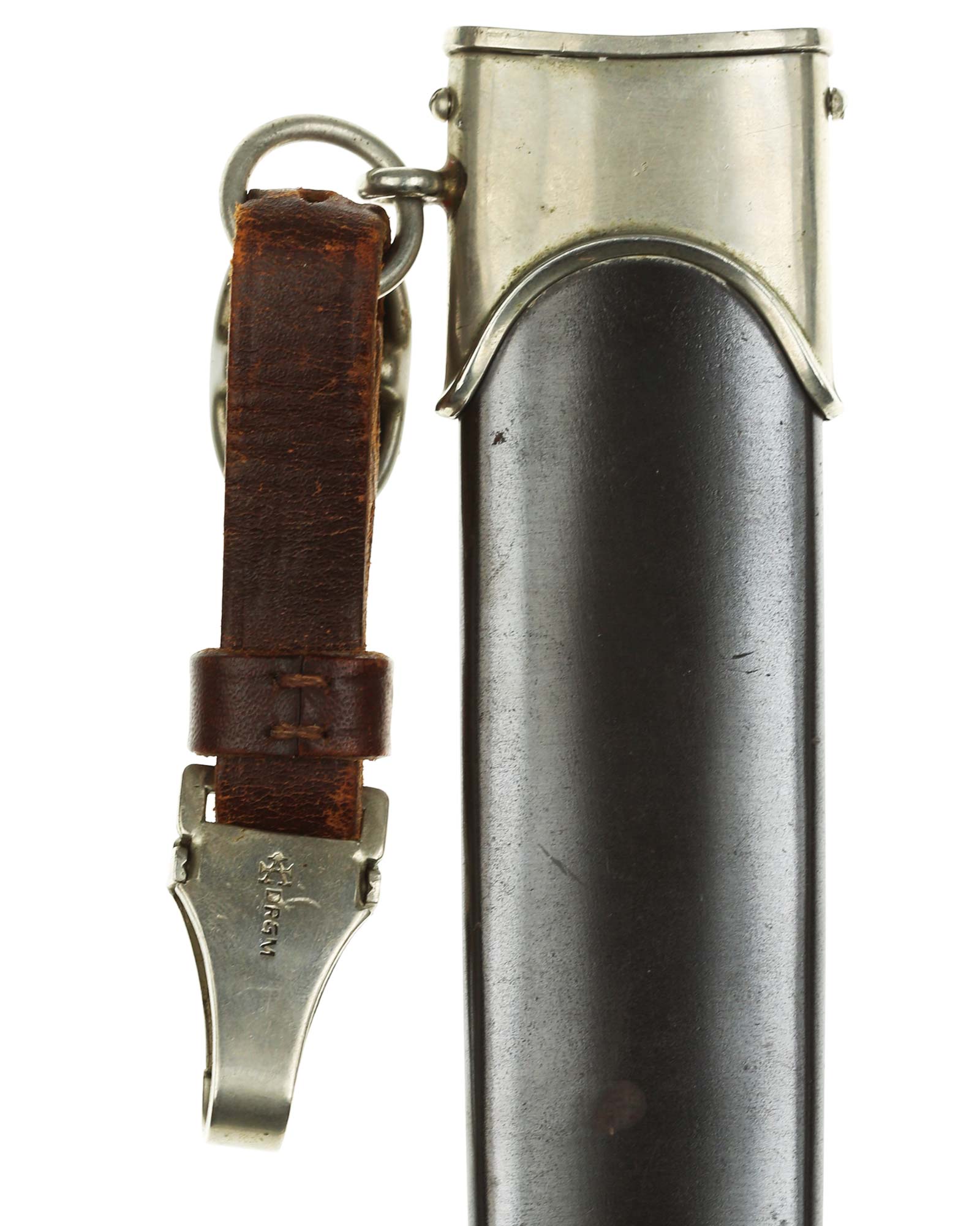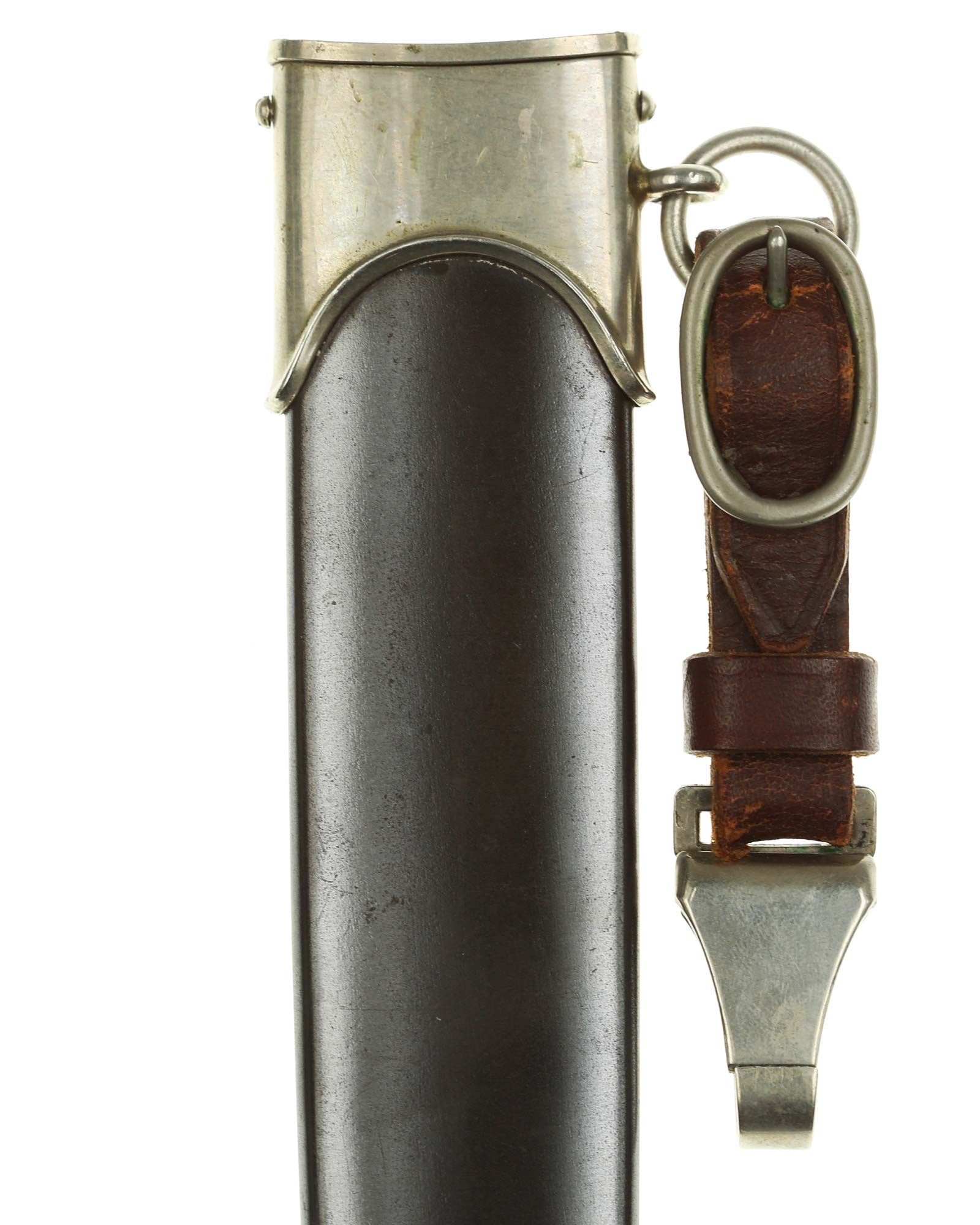 Scabbard: The scabbard shell is straight throughout. The nickel scabbard mounts are also in good condition. These mounts are retained by all four nickel screws, which are all in place.