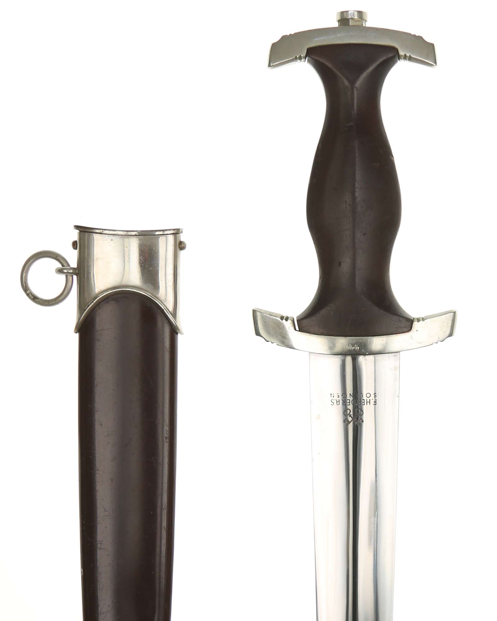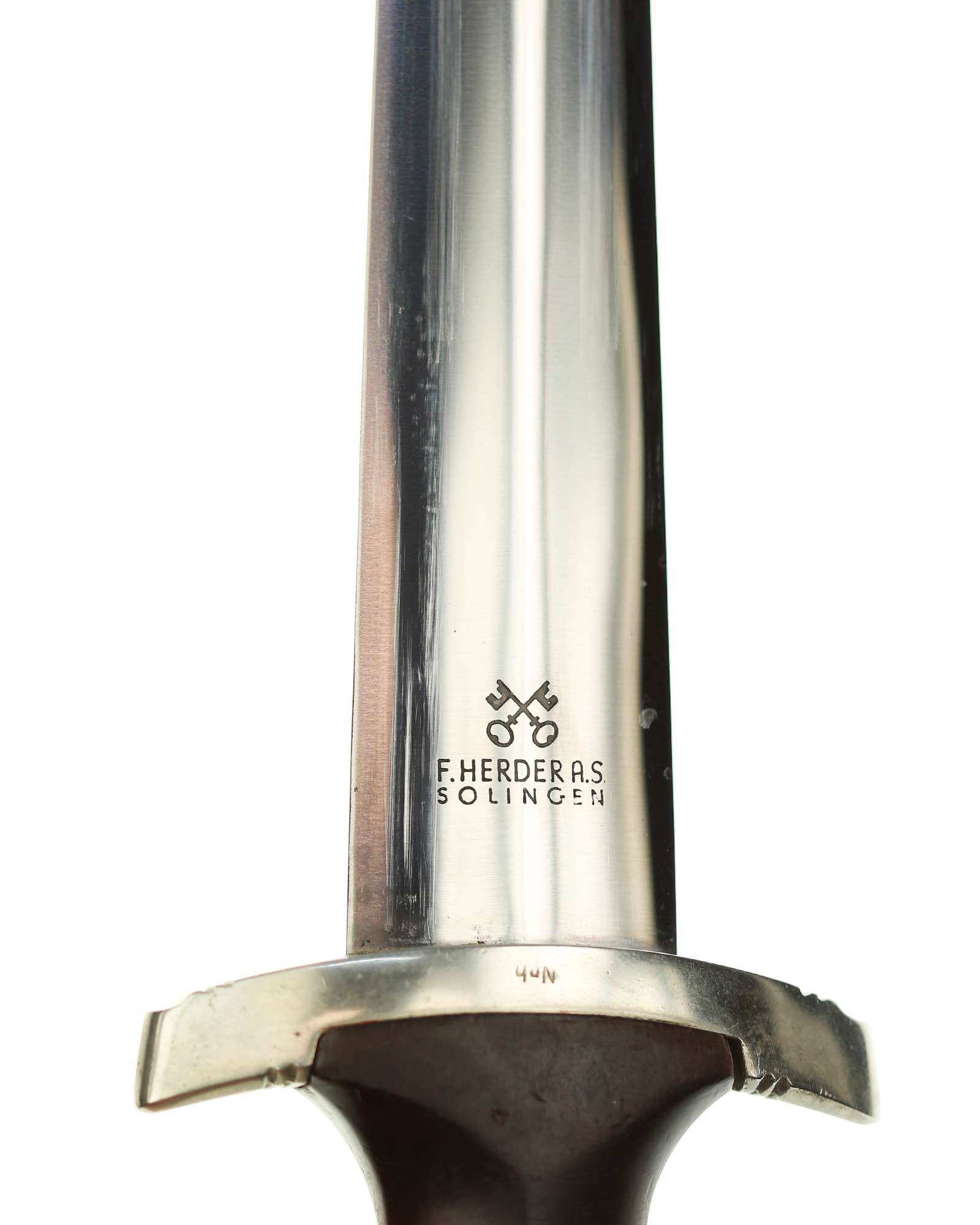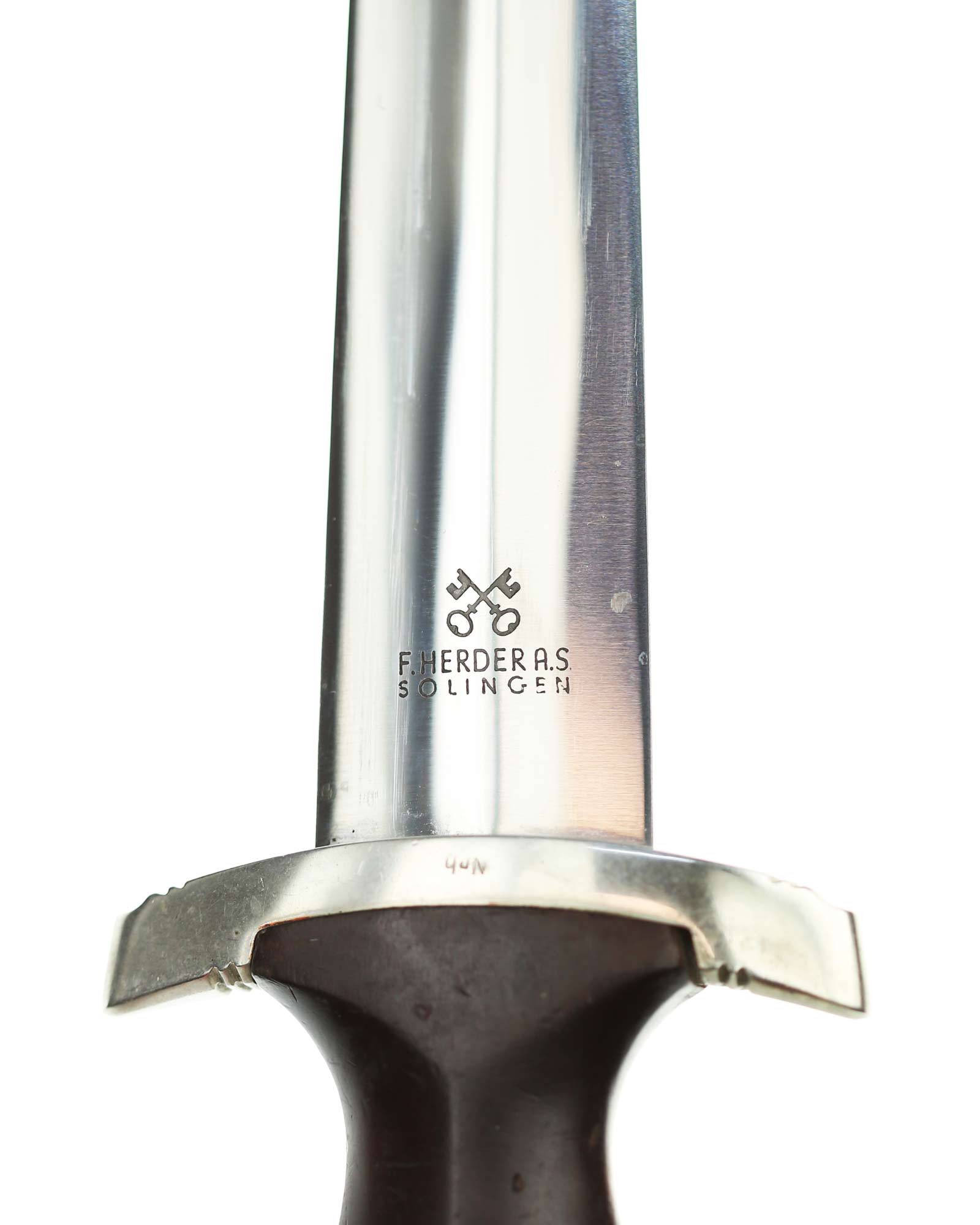 This SA [Sturmabteilung] Dagger in NEAR MINT condition. Model 1933. The total length is 37.1 cm. The Dagger has the maker mark on the blade: F. Herder A. & S. Solingen.