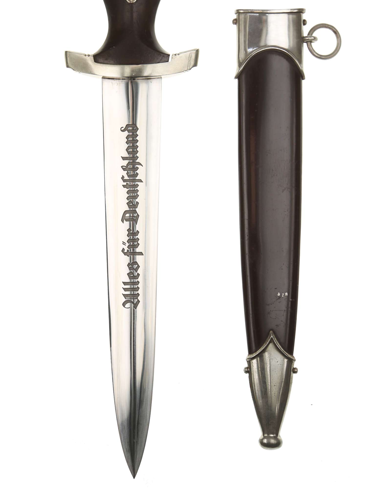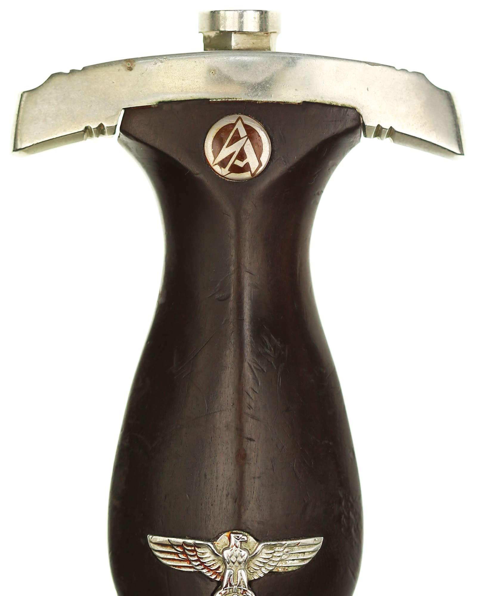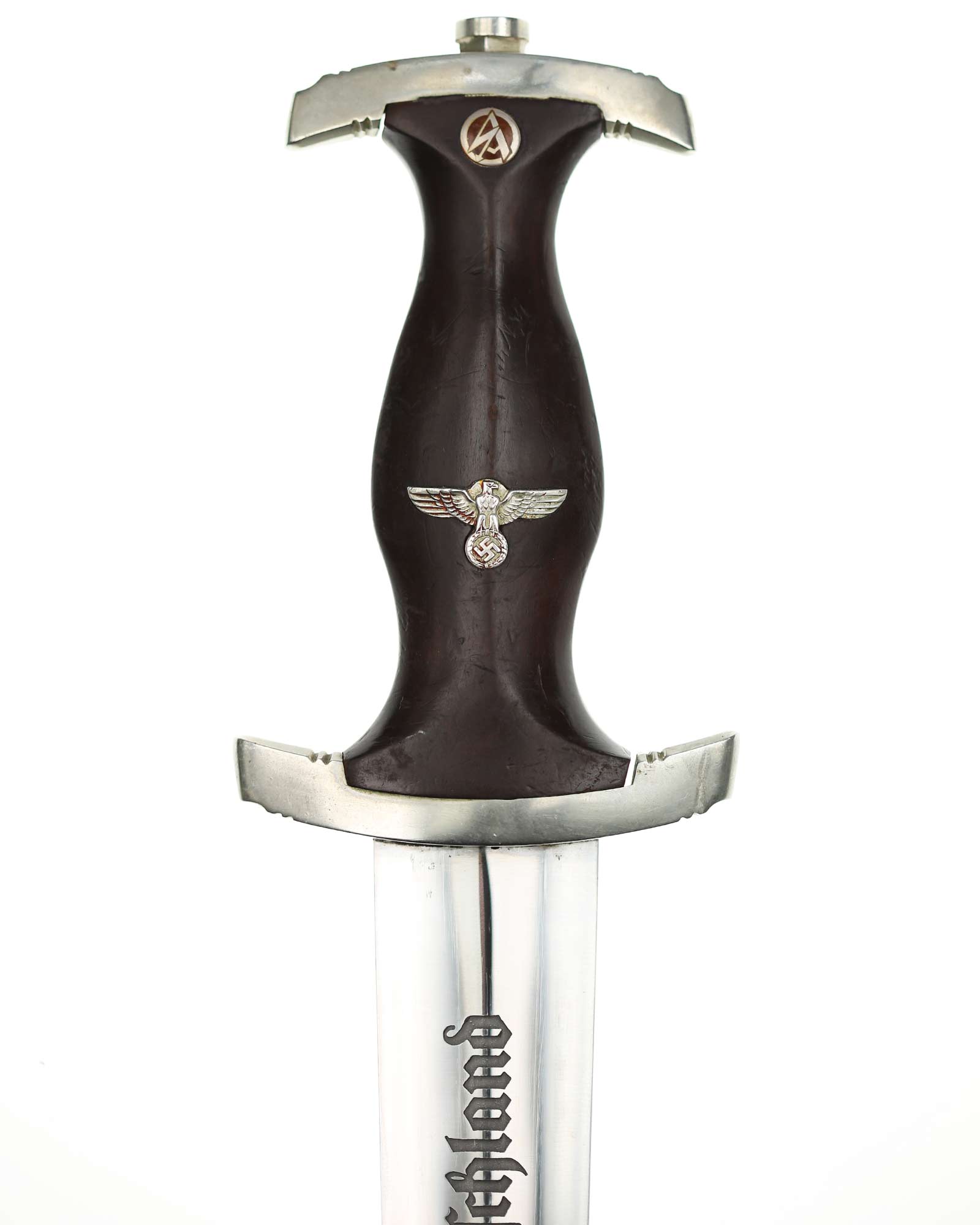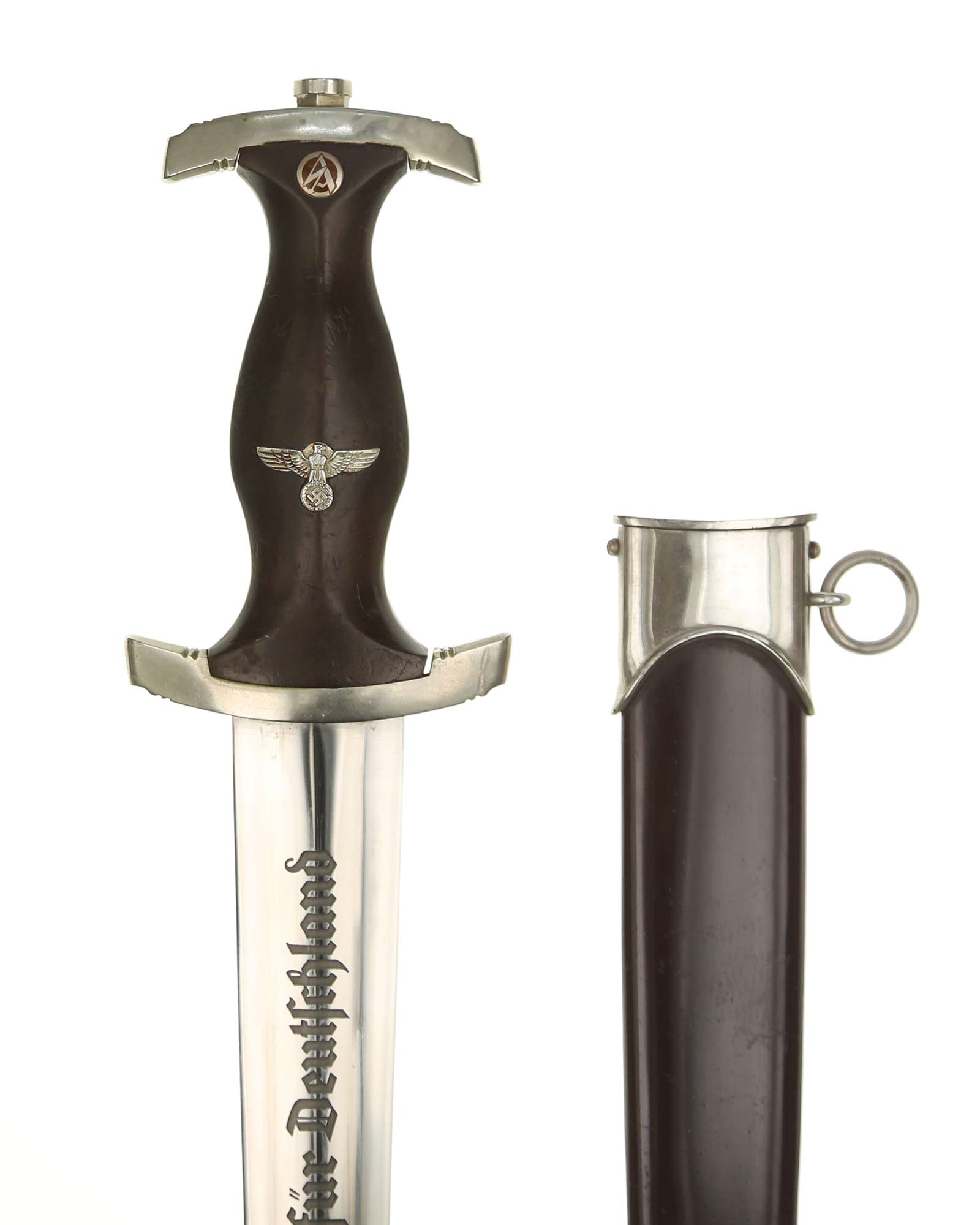 This SA [Sturmabteilung] Dagger in NEAR MINT condition. Model 1933. The total length is 37.1 cm. The Dagger has the maker mark on the blade: F. Herder A. & S. Solingen.