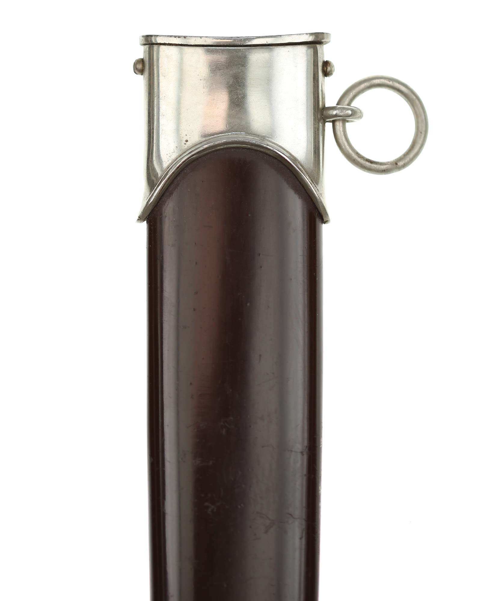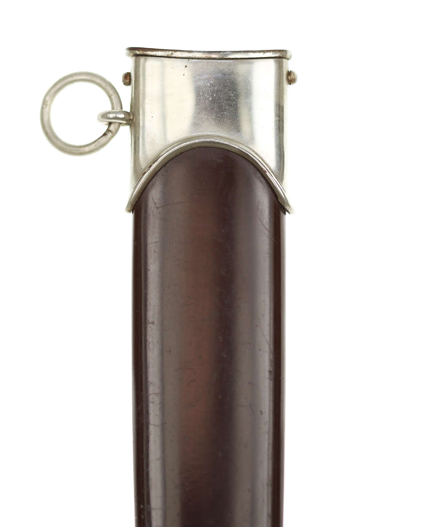 Scabbard: The scabbard shell is completely straight. The scabbard, all in all, is in a very fine condition. The scabbard mounts continue the theme of matching patination, and are both in excellent condition. These mounts are retained by the original screws.