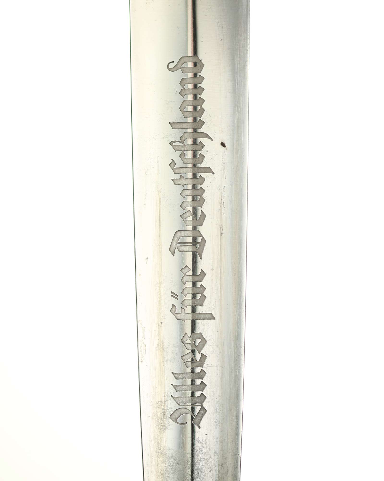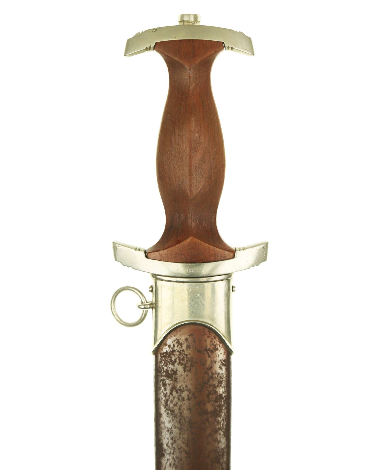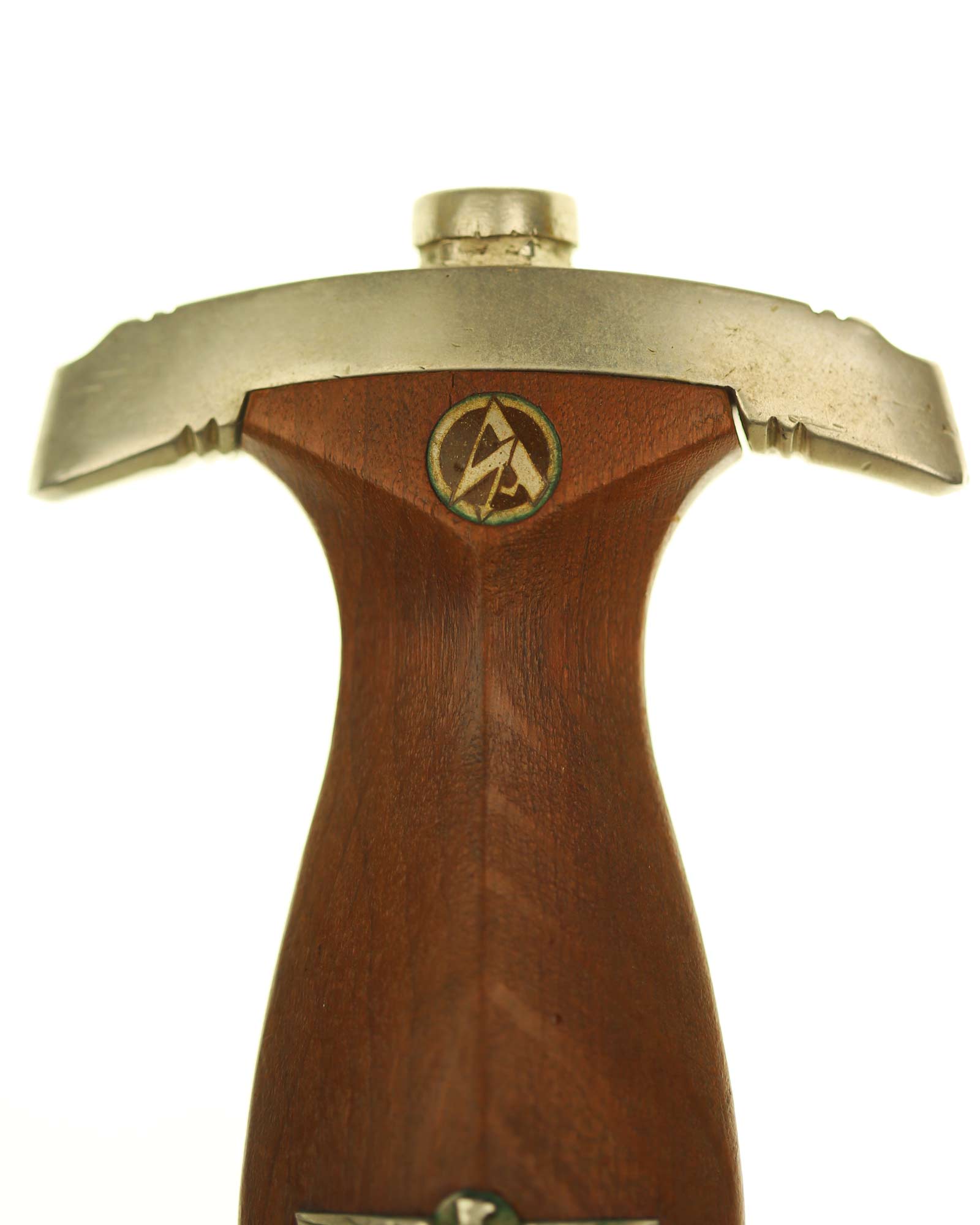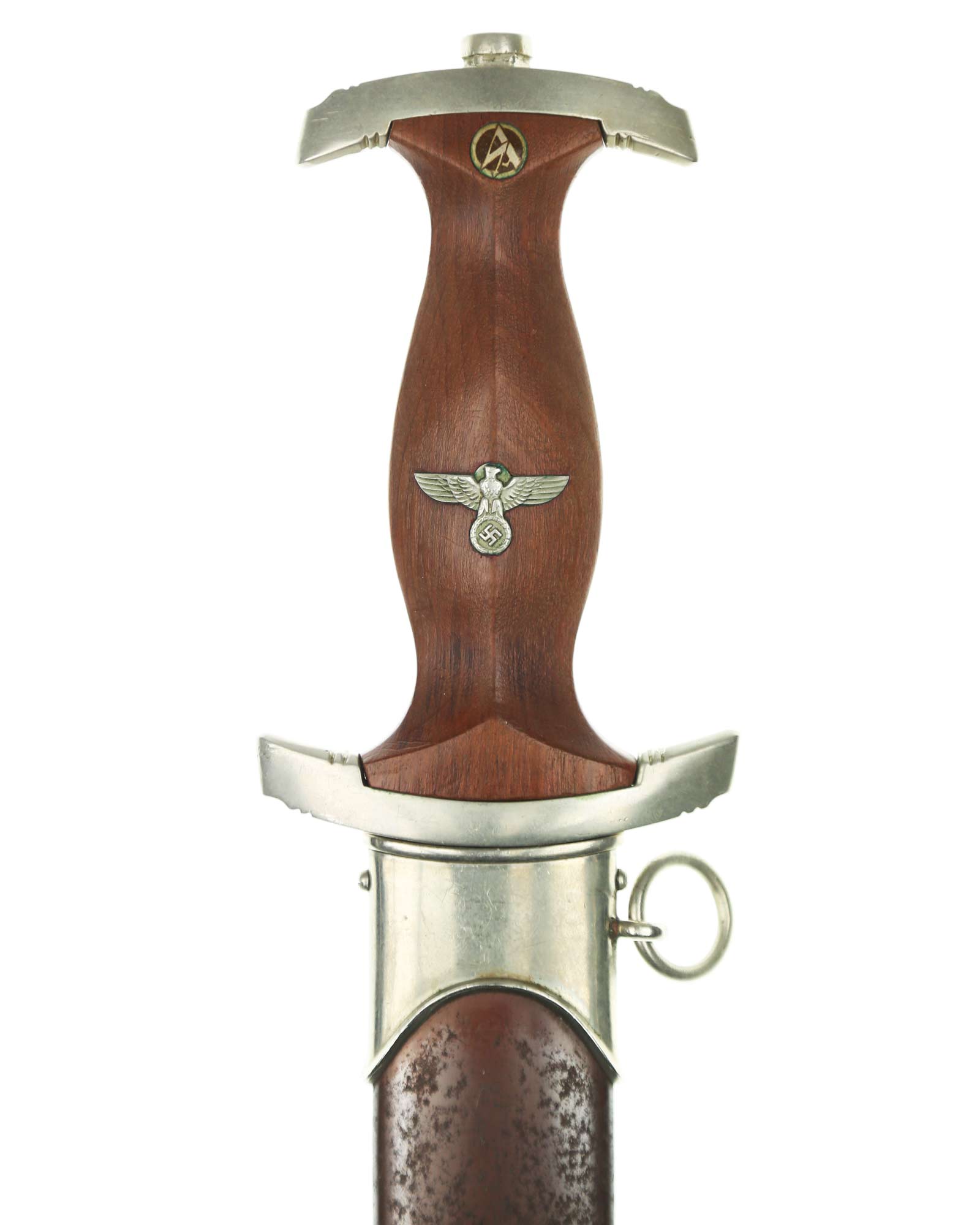 Blade: The blade of this example is still grades at about NEAR MINT. The SA motto Alles für Deutschland «Everything for Germany» is deep. The company logo is on the reverse ricasso: J.A. Henckels (Zwillingswerk) Solingen. The blade shoulders meet the crossguard contour.