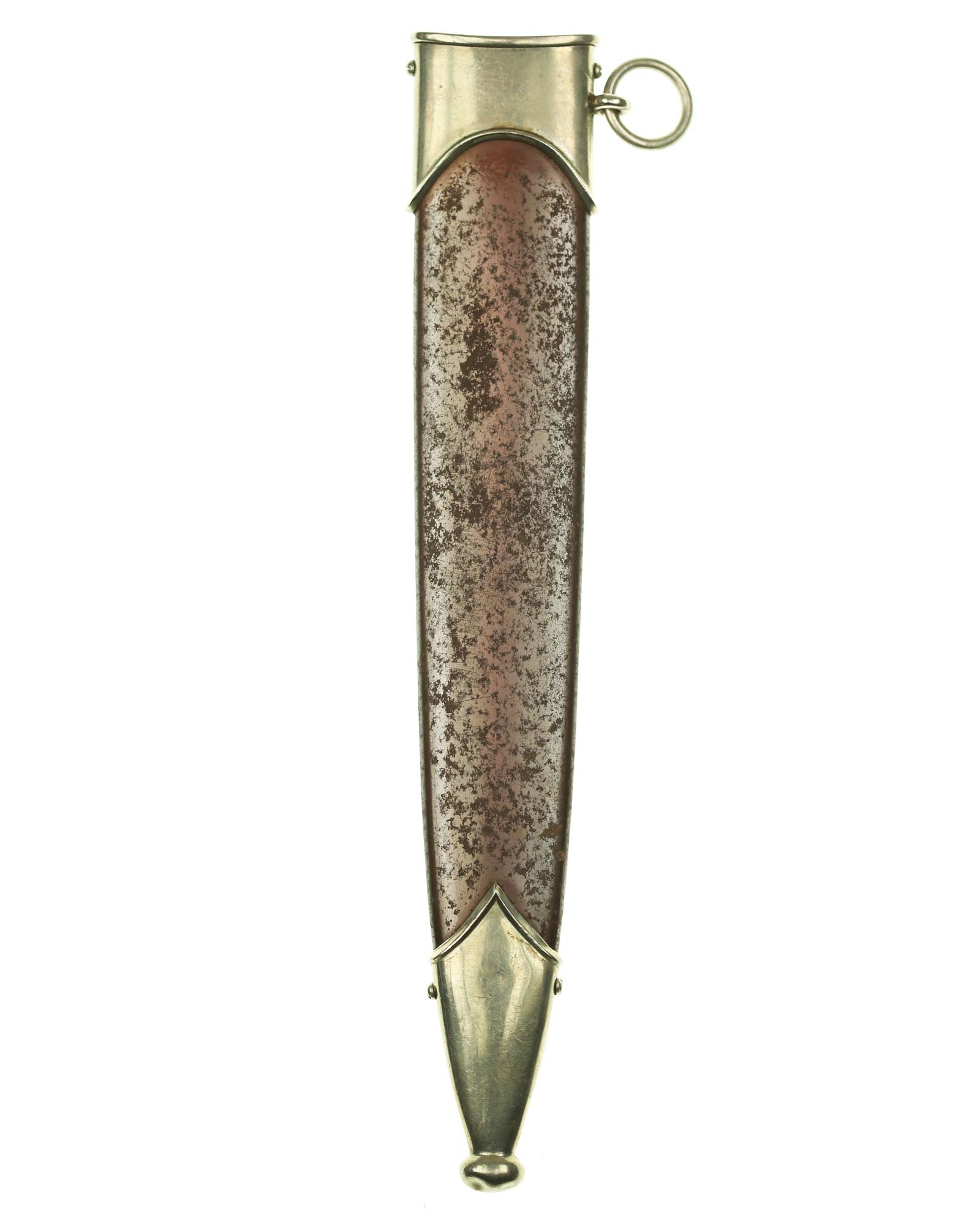 Scabbard: The scabbard shell is completely straight. The scabbard, all in all, is in a very fine condition. The scabbard mounts continue the theme of matching patination, and are both in excellent condition. These mounts are retained by the original screws.