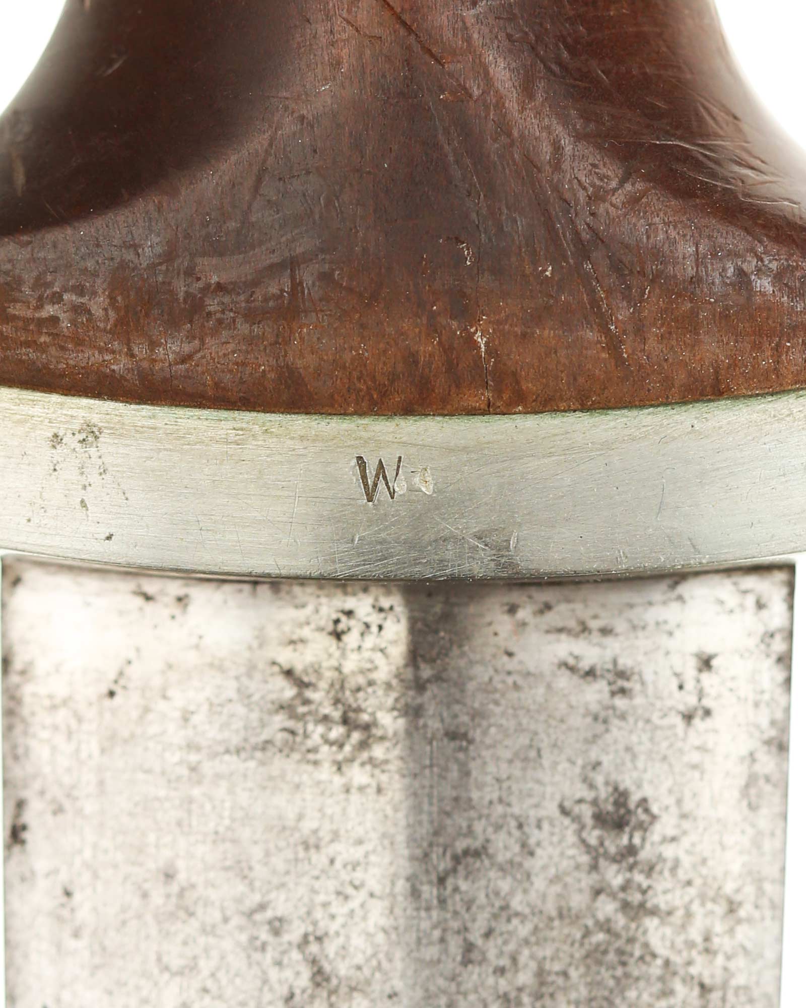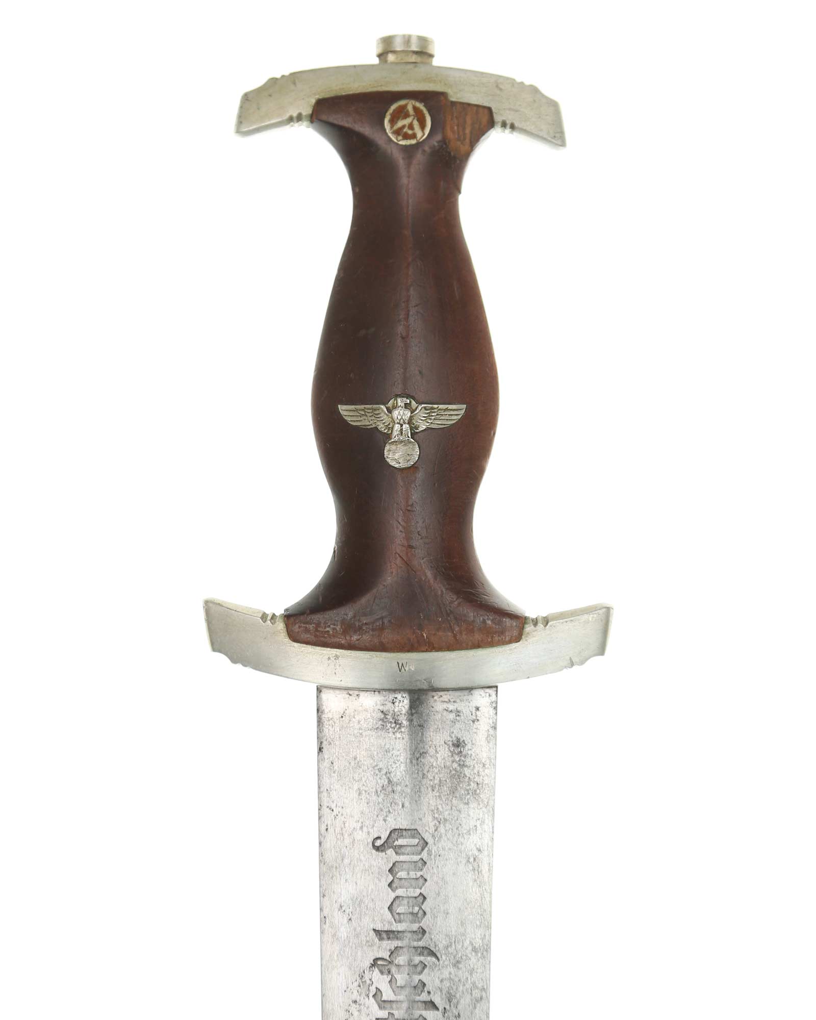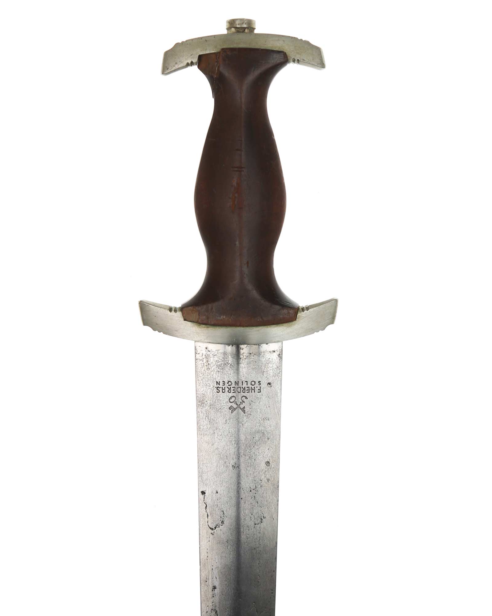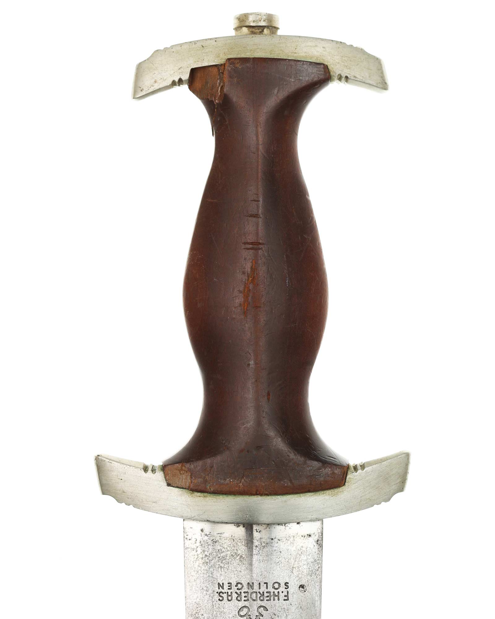 This SA [Sturmabteilung] Dagger in EXC condition. Model 1933. The total length is 34.3 cm. Early Nickel fittings, lower guard with «Wm» stamp. The Dagger has the maker mark on the blade: F. Herder A.S. Solingen. Dagger without Scabbard.