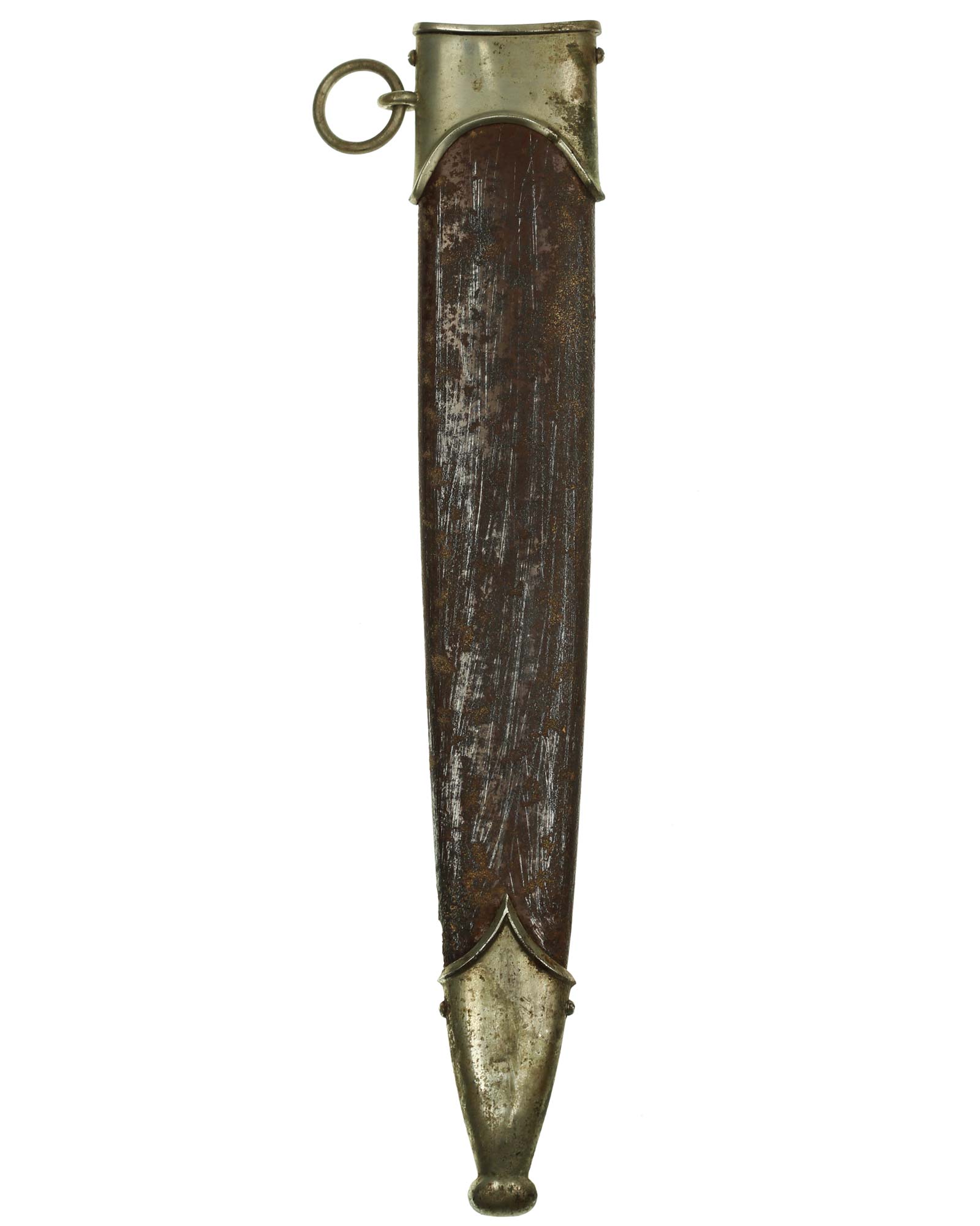 Scabbard: The scabbard shell is a uncleaned example. The scabbard mounts are of solid matching nickel, in good condition with just a minor ding to the bottom of the lower ball. The mounts are retained by solid nickel screws which are all in place.
