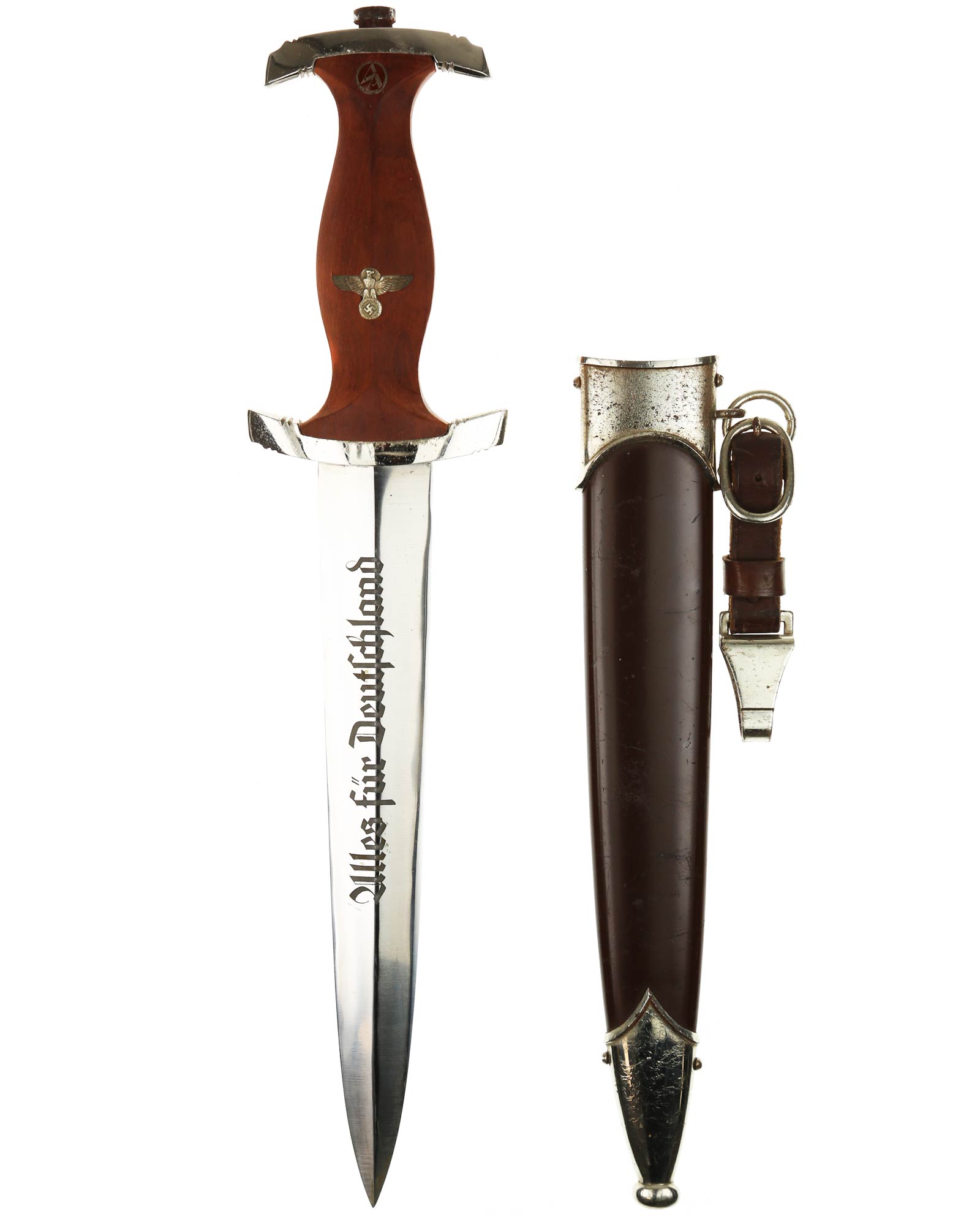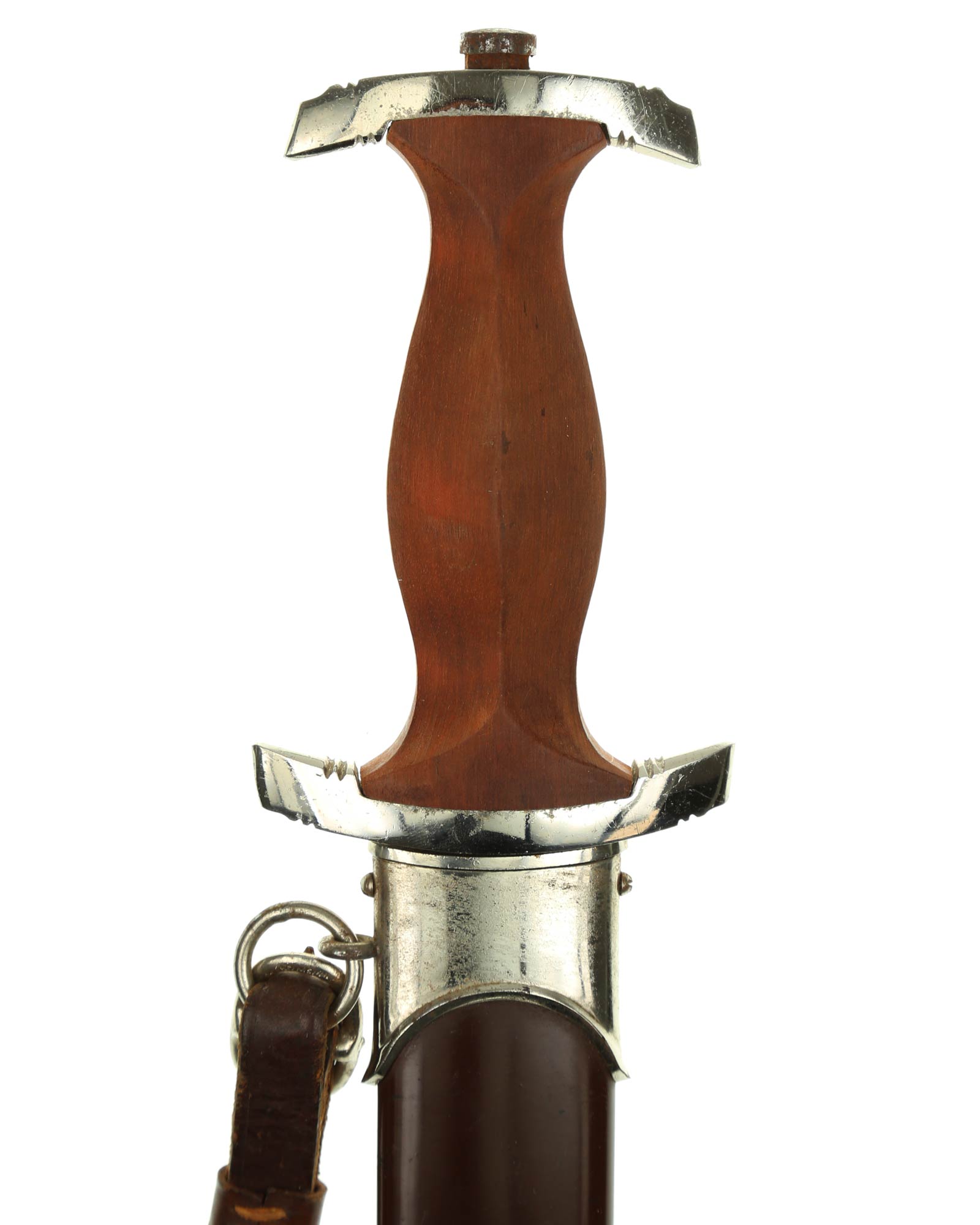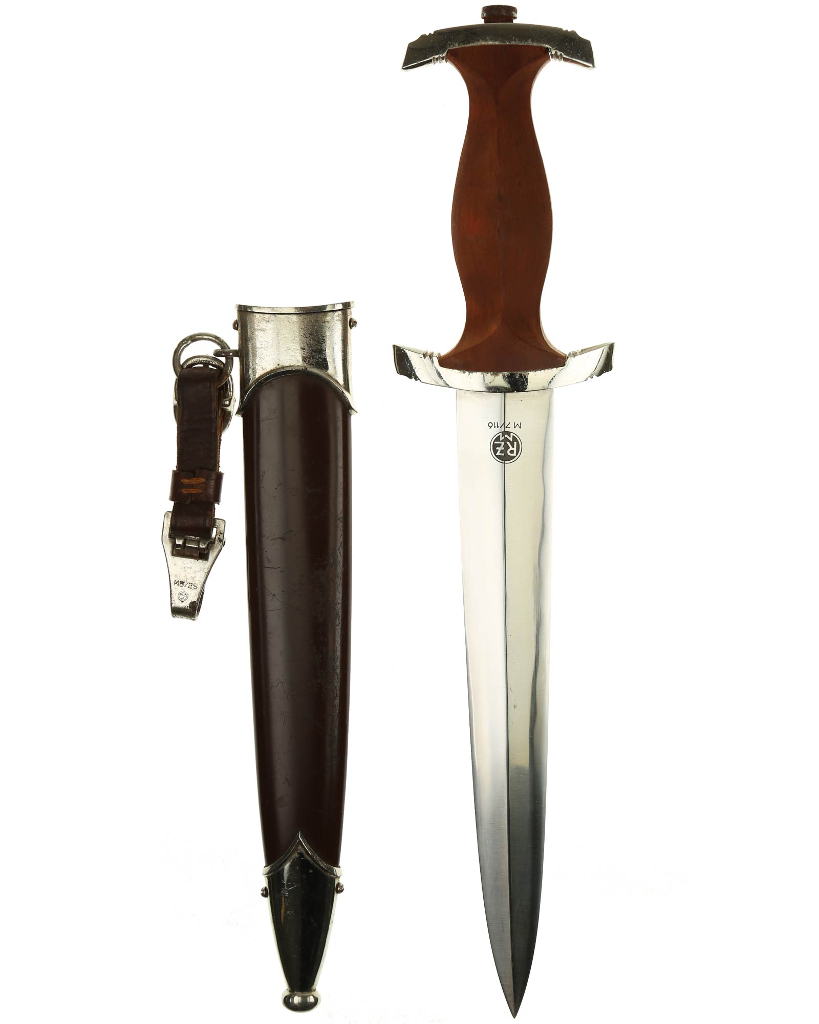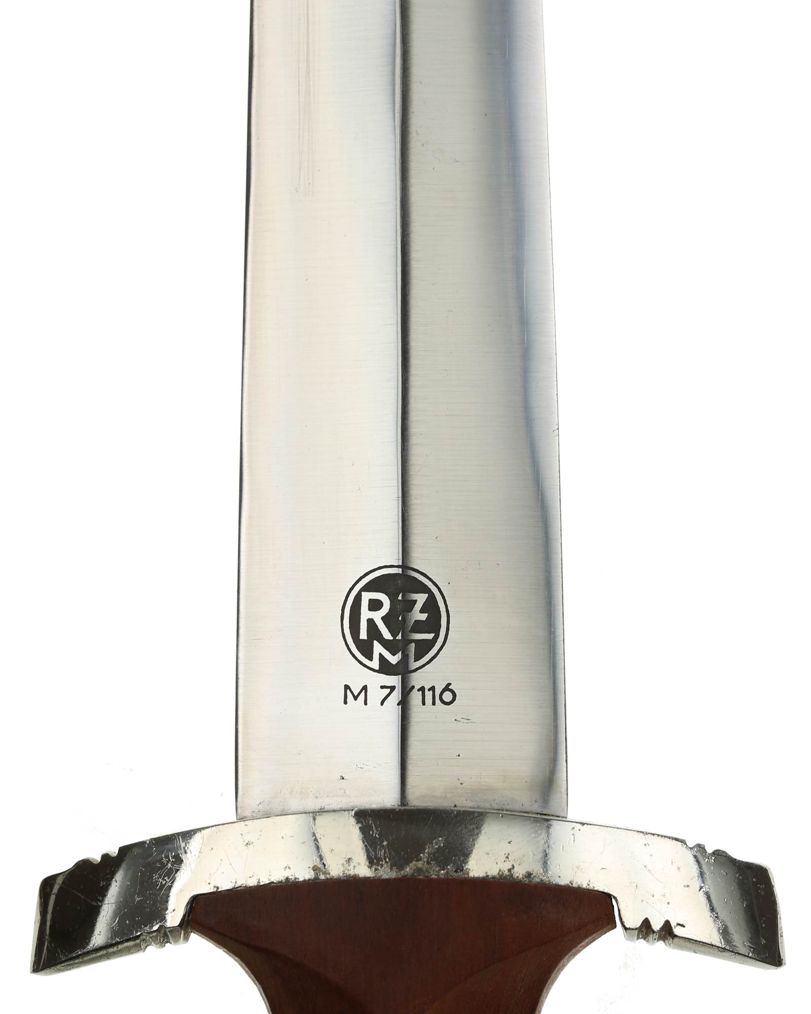 This SA [Sturmabteilung] Dagger in near mint condition. Model 1939-1942. The total length is 37.5 cm. The Dagger has the rare RZM Code on the blade: RZM M7/116 (Franz Frenzel Böhmen). Leather Hanger marked with RZM M5/25.