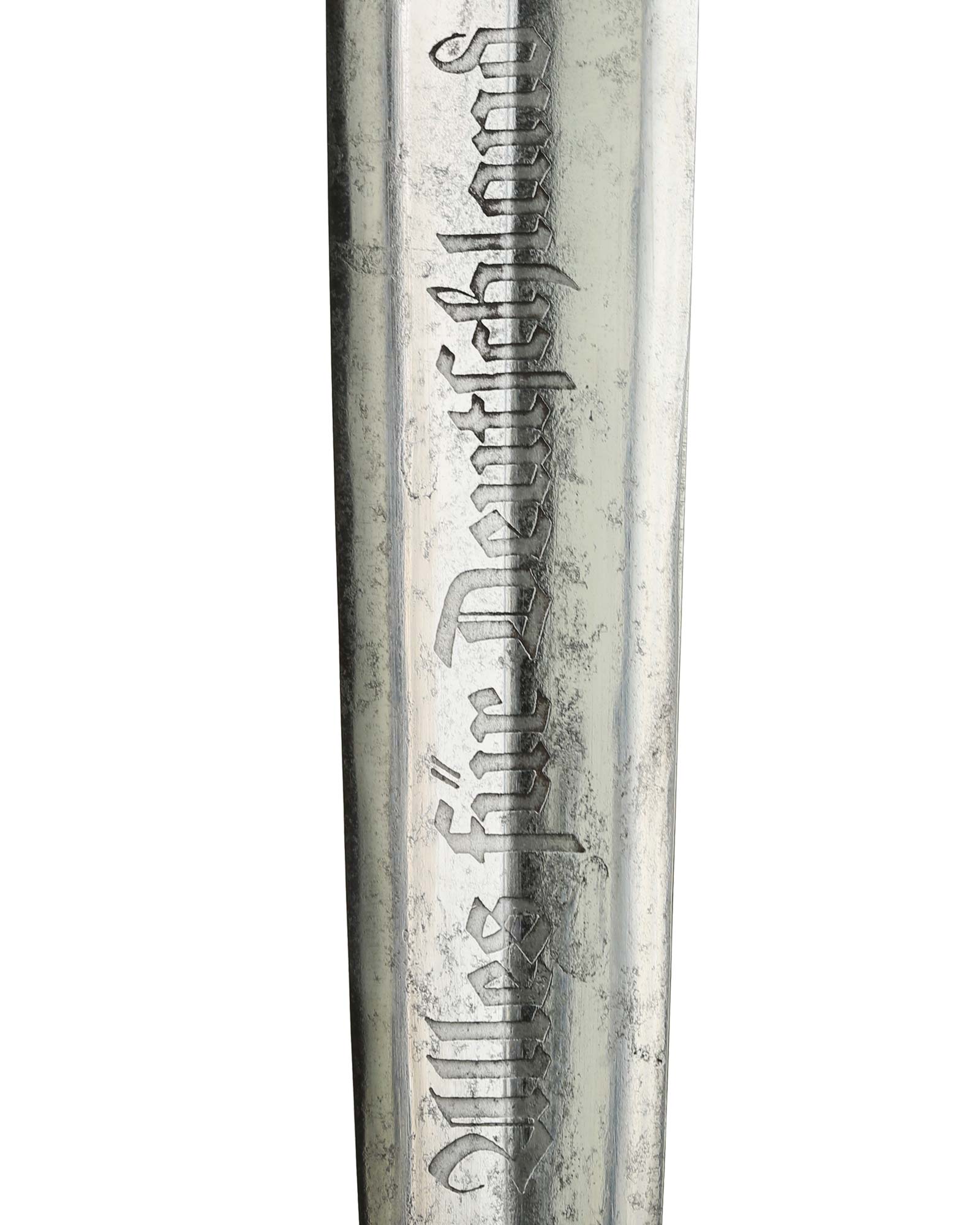 Grip: The all nickel mounts are in good condition throughout. The lower reverse crossguard is Gruppe marked Nrh - Niederrhein. The grip still remains in EXC+ condition. The runes button is nicely placed.
