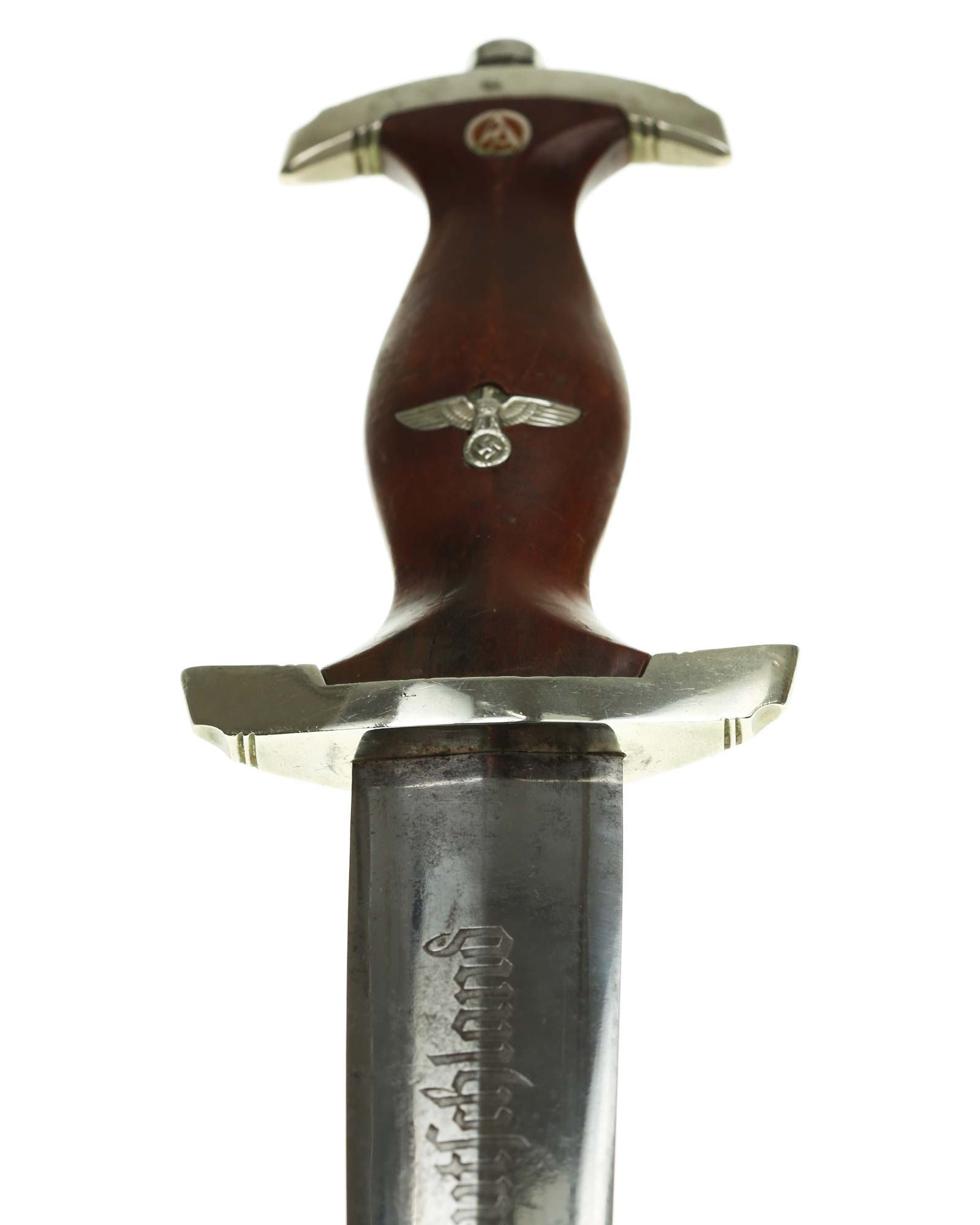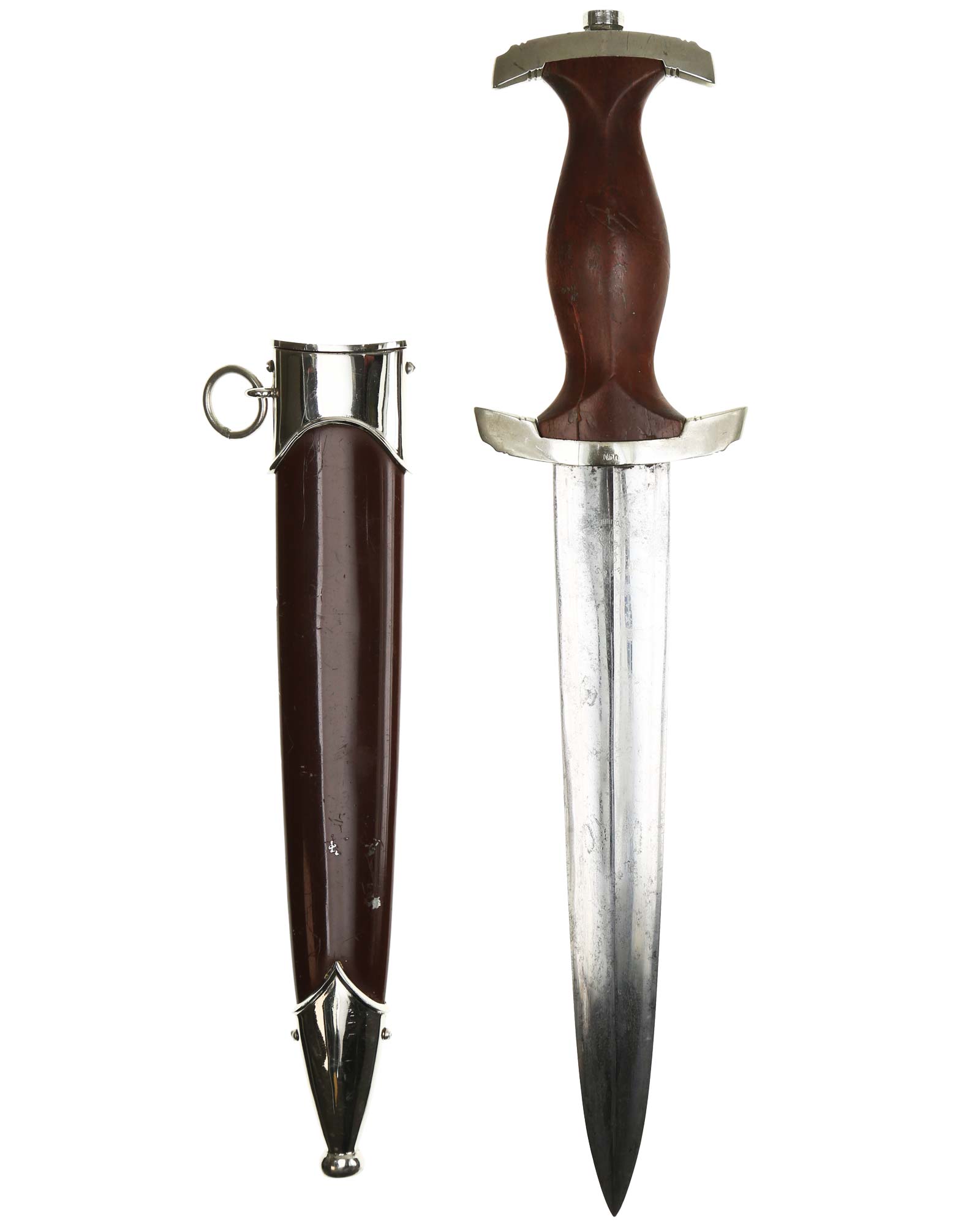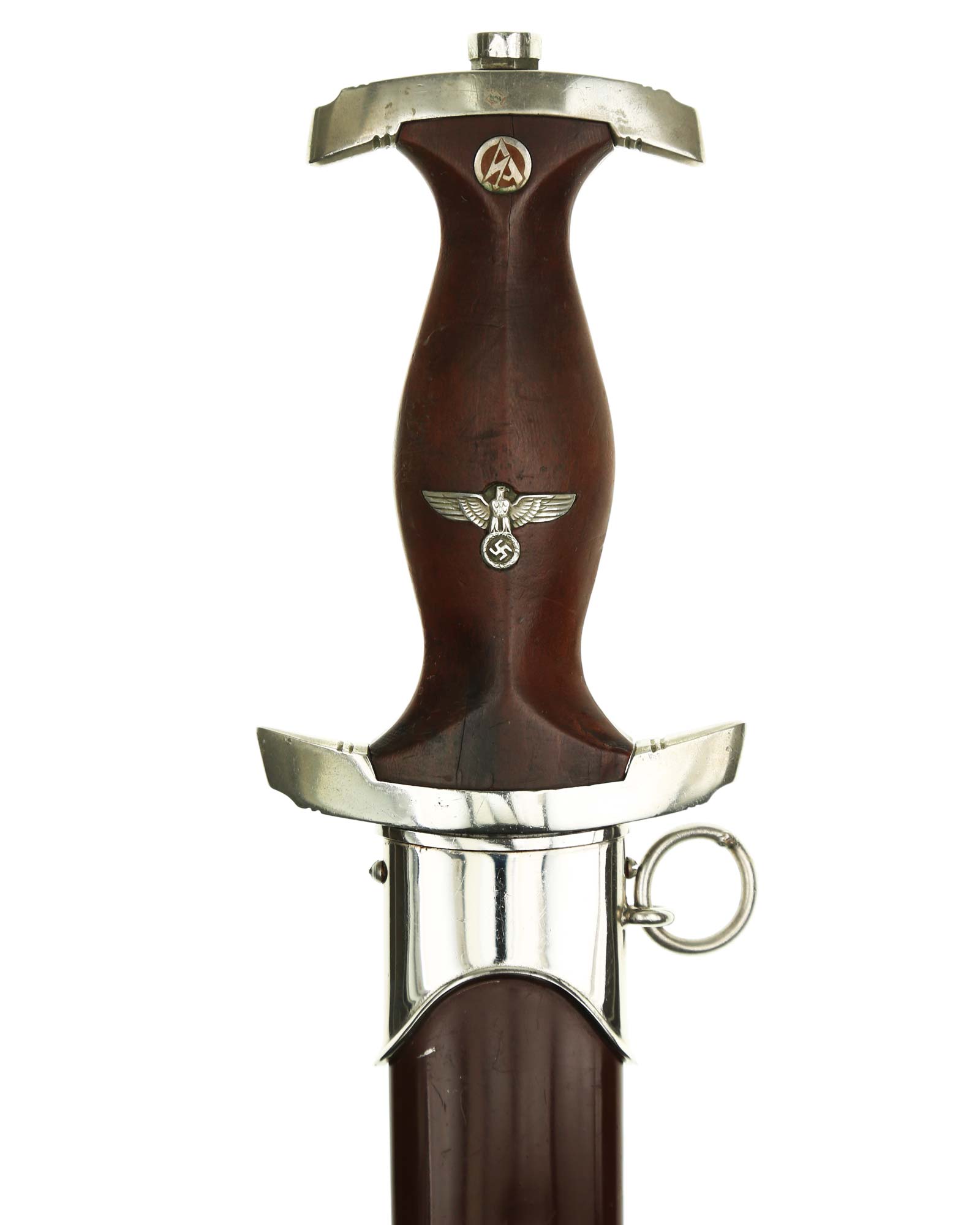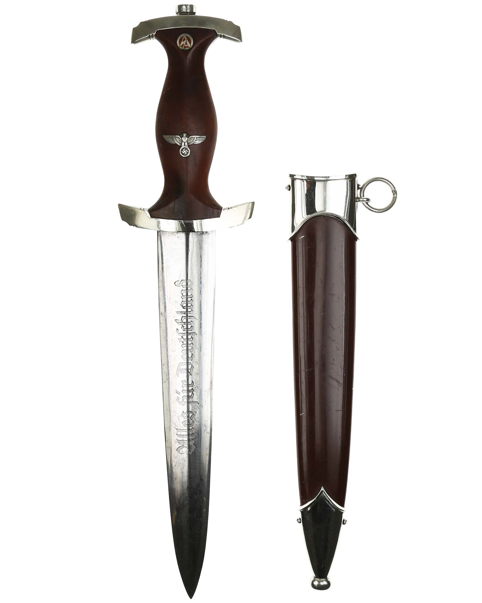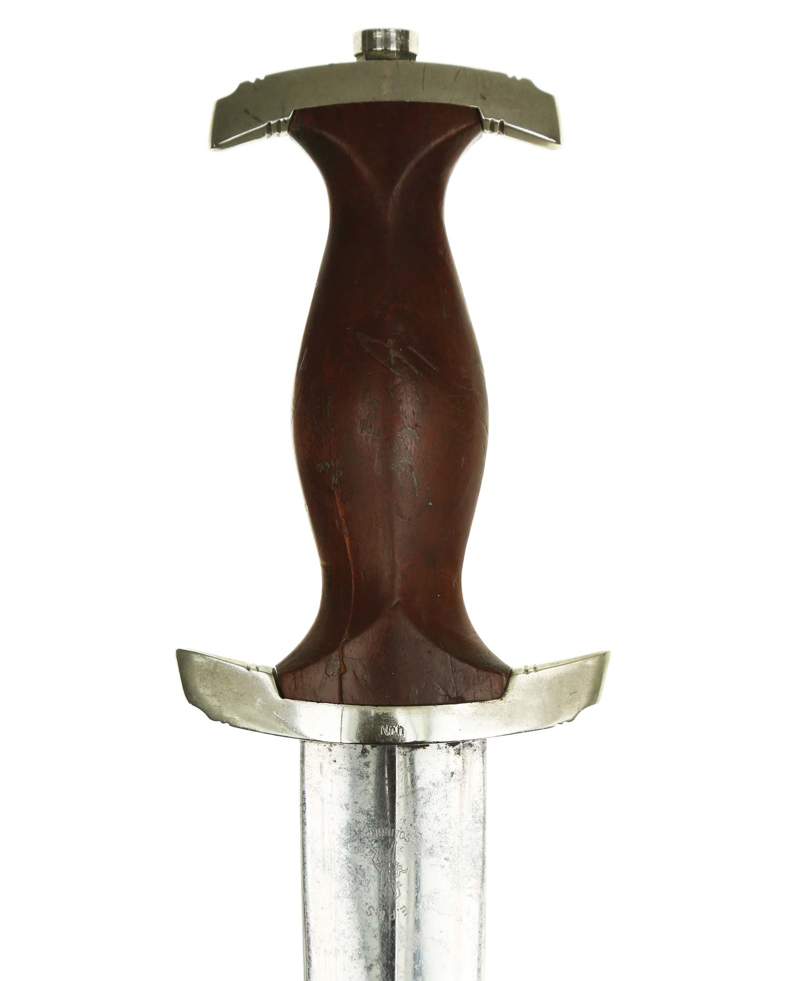 This early SA [Sturmabteilung] Dagger is in EXC+ condition. Model 1933. The total length is 37,0 cm. The Dagger has the maker mark on the blade: Ernst Pack & Söhne Solingen with Gau Nrh.