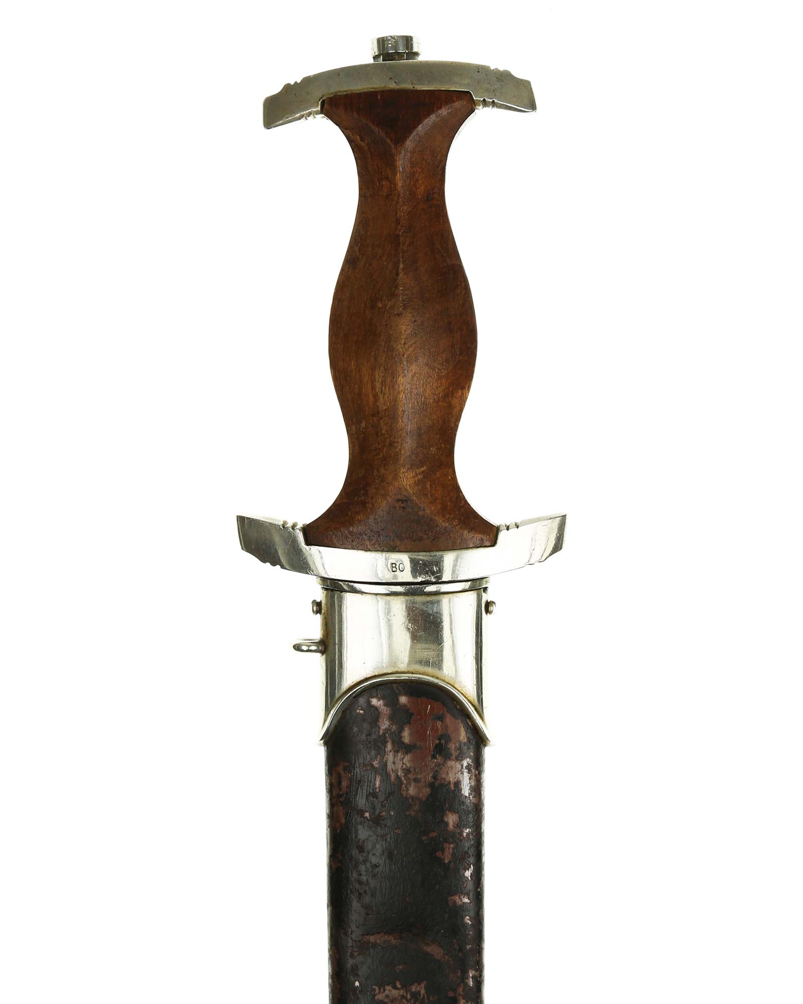 This SA [Sturmabteilung] Dagger in EXC+ condition. Model 1933. The total length is 37.2 cm. Early Nickel fittings, lower guard with "BO" stamp. The Dagger has the maker mark on the blade: Gottfried Müller Herges Vogtei.