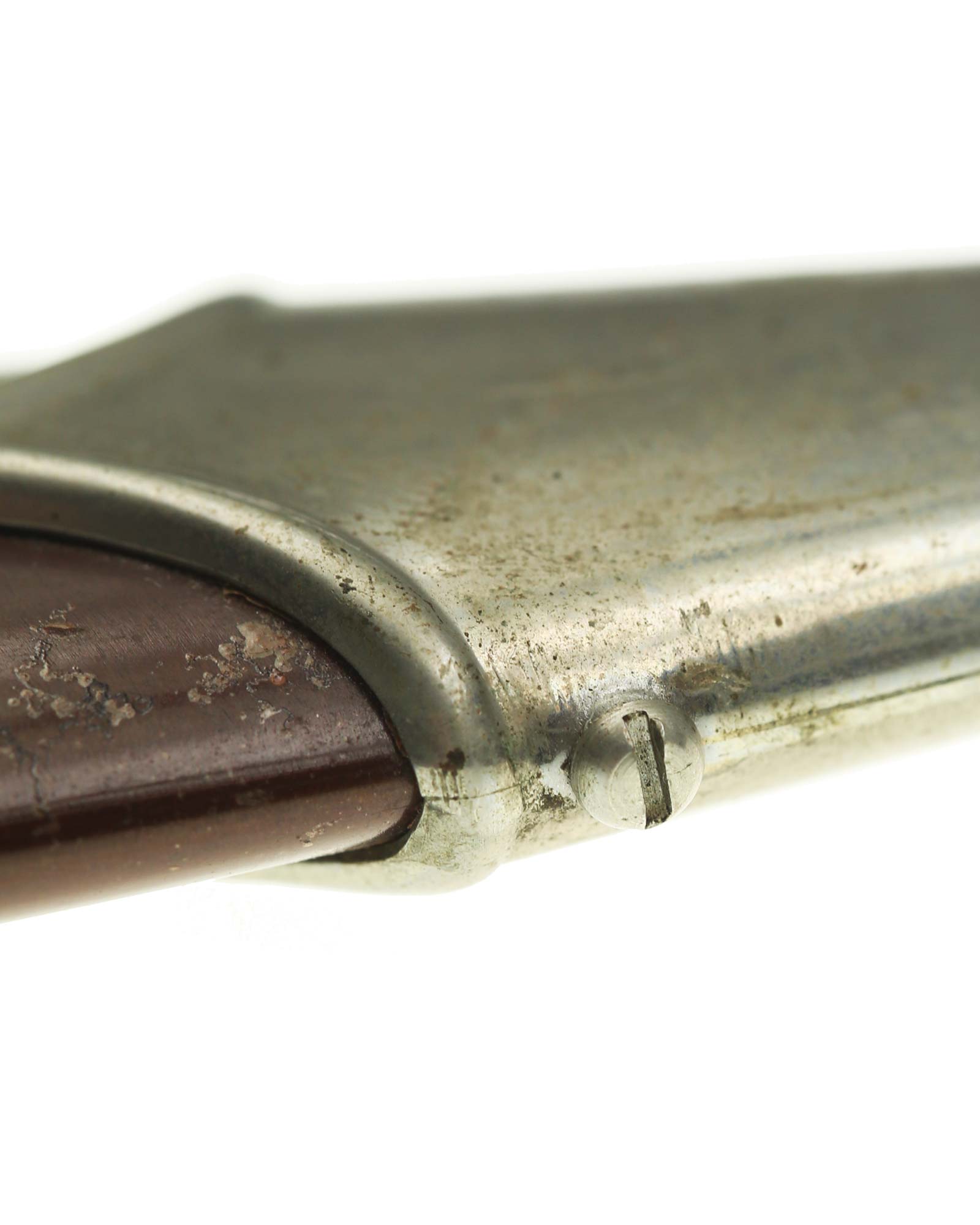 Scabbard: The scabbard shell is a fine example, having just about all of the original anodized surface. There is also some original lacquer scattered around the scabbard. A few minor age spots are visible in the finish, but overall it is a pretty nice example. The scabbard mounts are of solid matching nickel, in good condition with just a minor ding to the bottom of the lower ball.