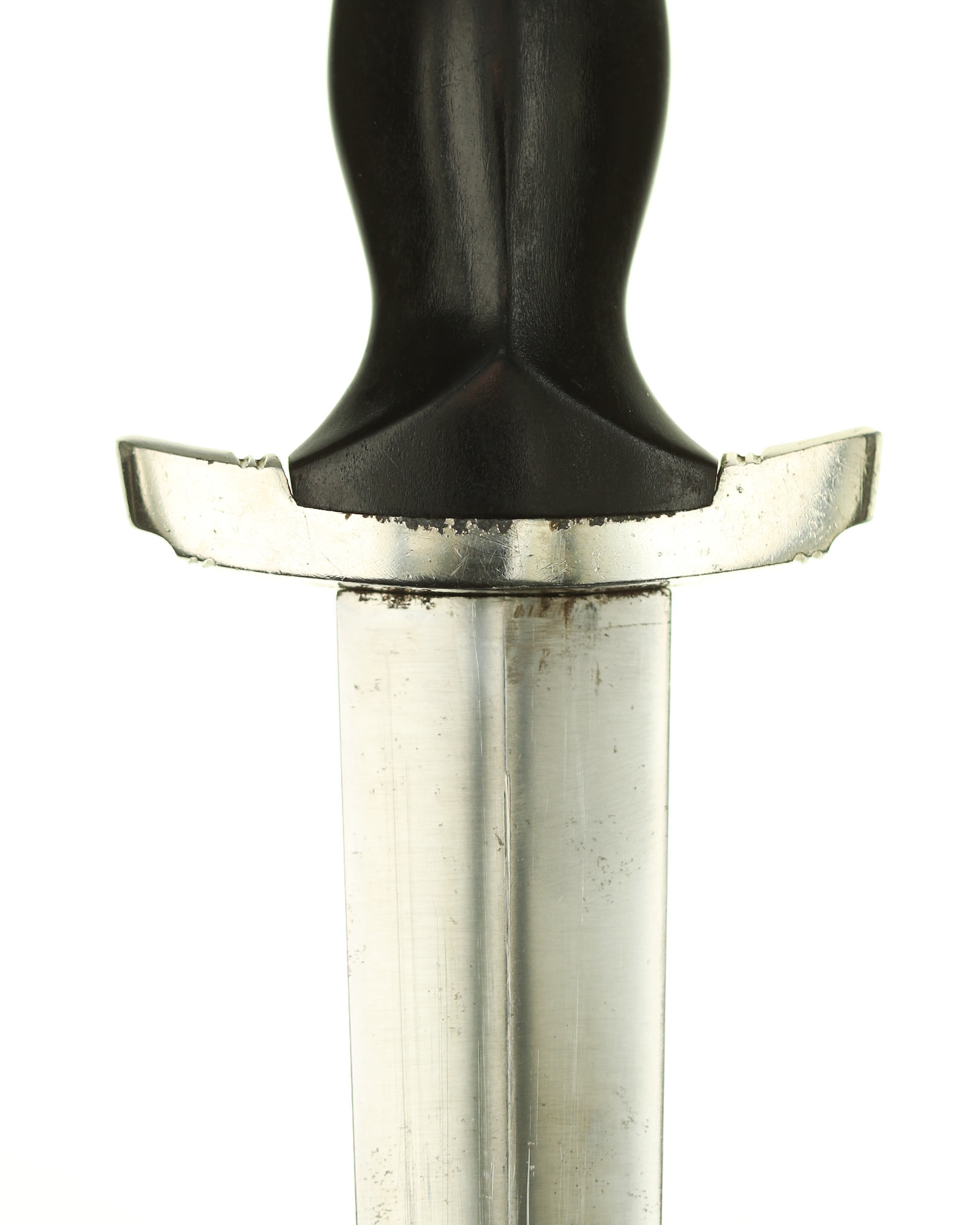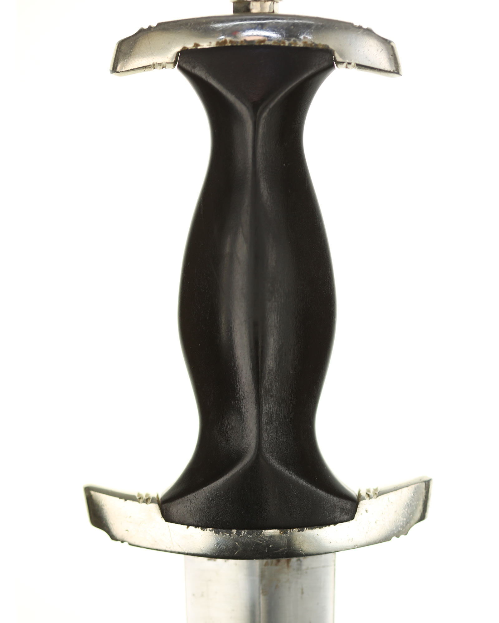 Grip: The crossguards and pommel nut are solid nickel. The black hardwood grip is in good condition. The eagle is detailed, has an excellent fit. The SS roundel has a perfect fit.