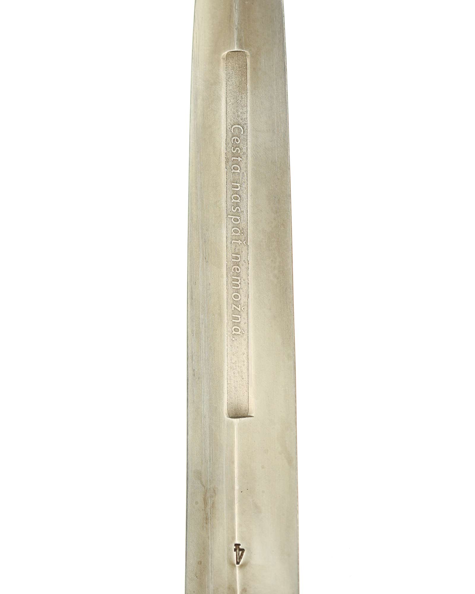 Blade: This blade is double-edged and in fine condition. Blade marked with "4" and inscription: „Cesta naspät nemozna“ (The way back is impossible).