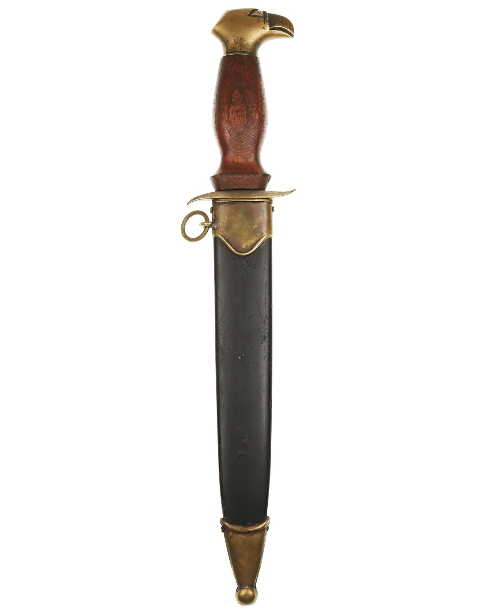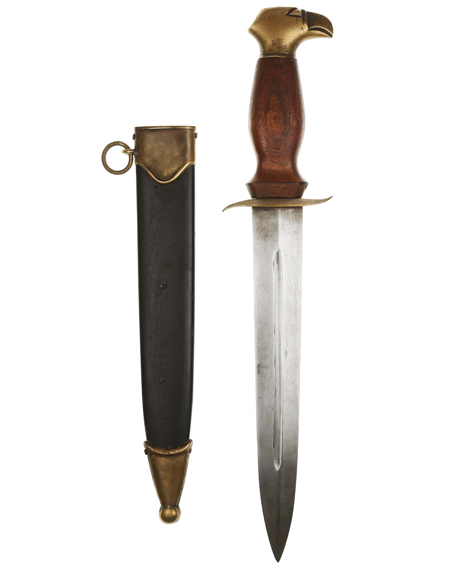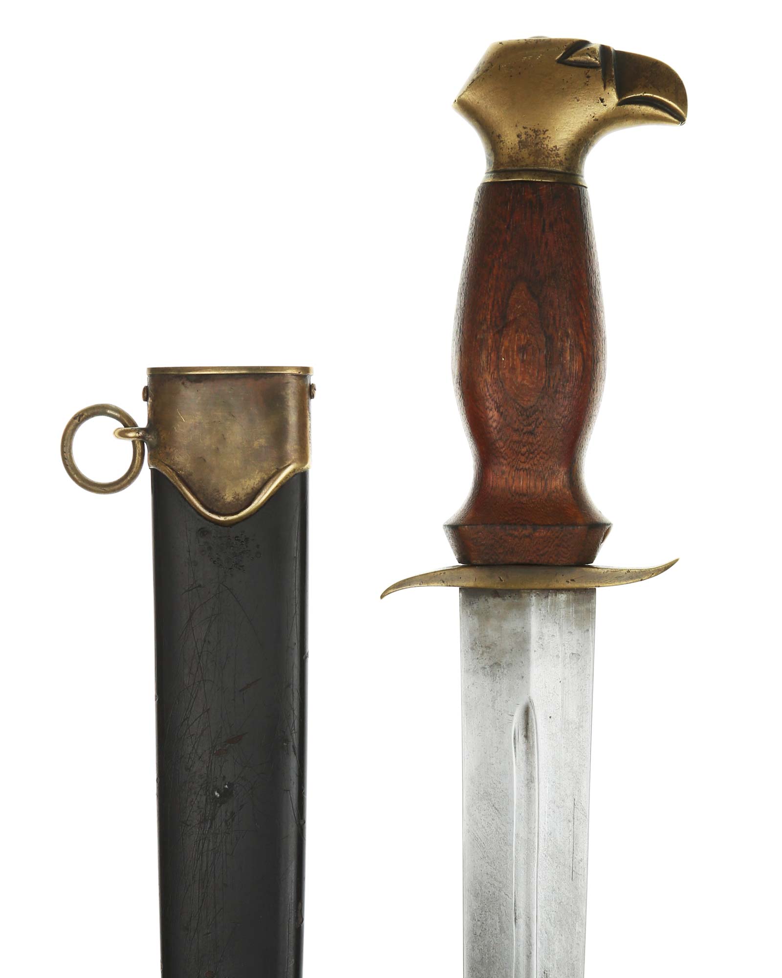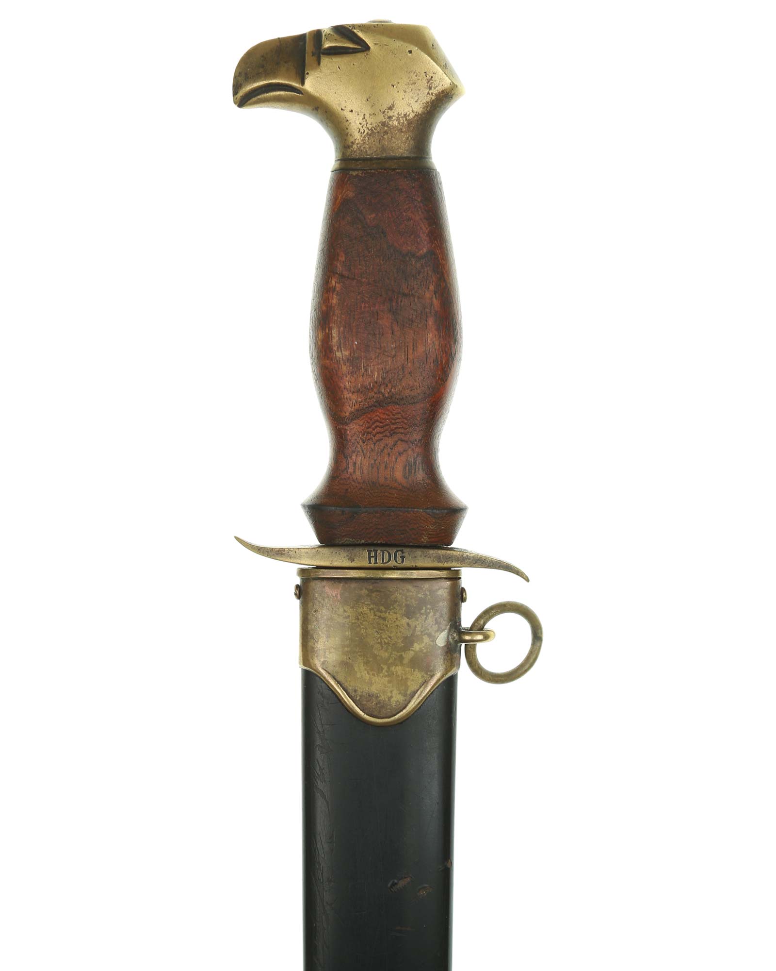 This Hlinka Guard [HG] Dagger is in EXC+ condition. Model 1939. The total length is 37.3 cm. Lower guard with "HG" stamp. The Dagger is stamped with 2 on the blade.