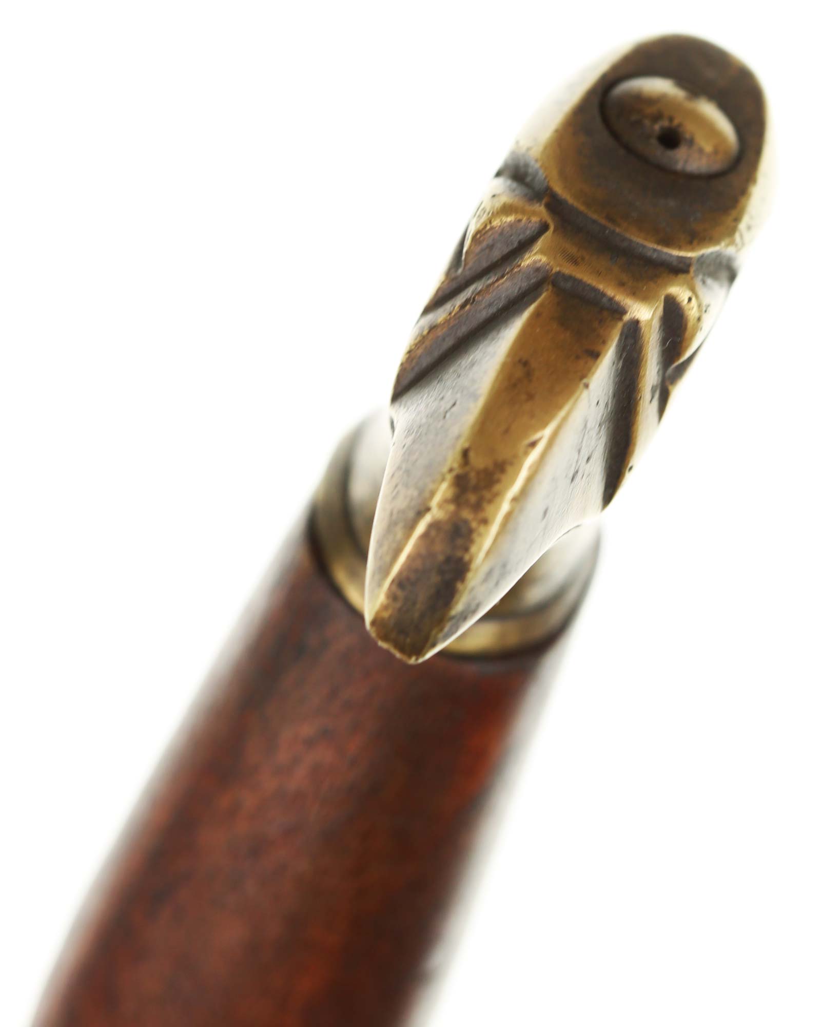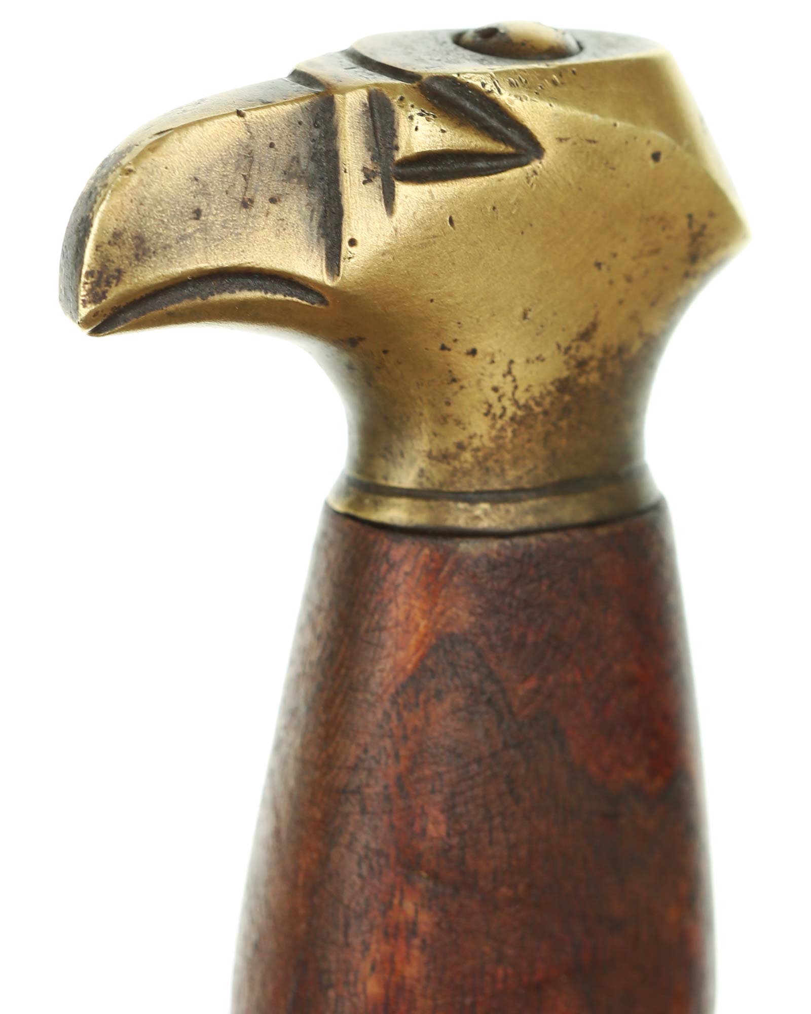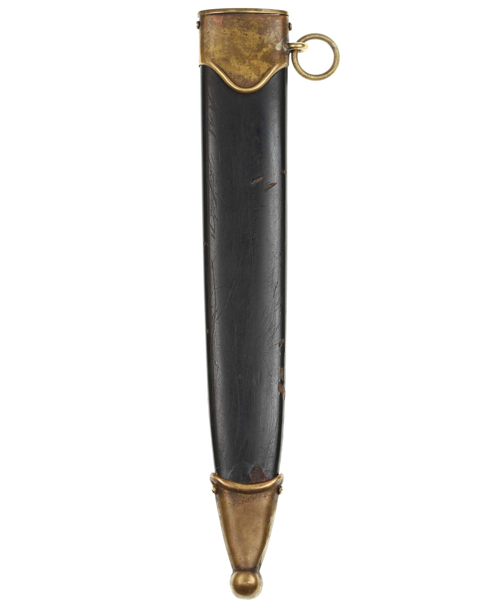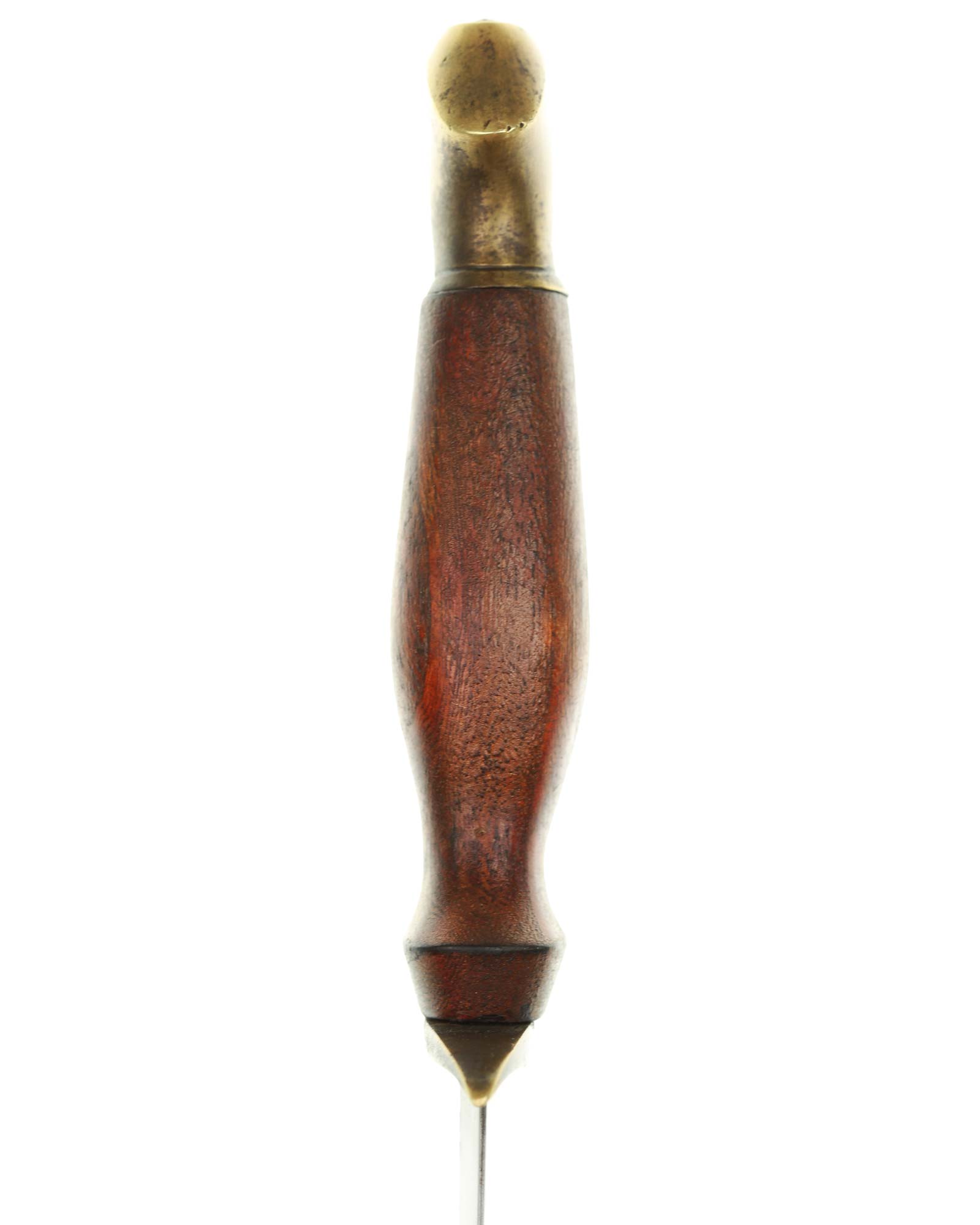 Grip: Hilt fittings in fine condition, lower crossguard marked, “HG”. Medium brown, wooden grip shows light surface wear with no hairline cracks, chips or damage.