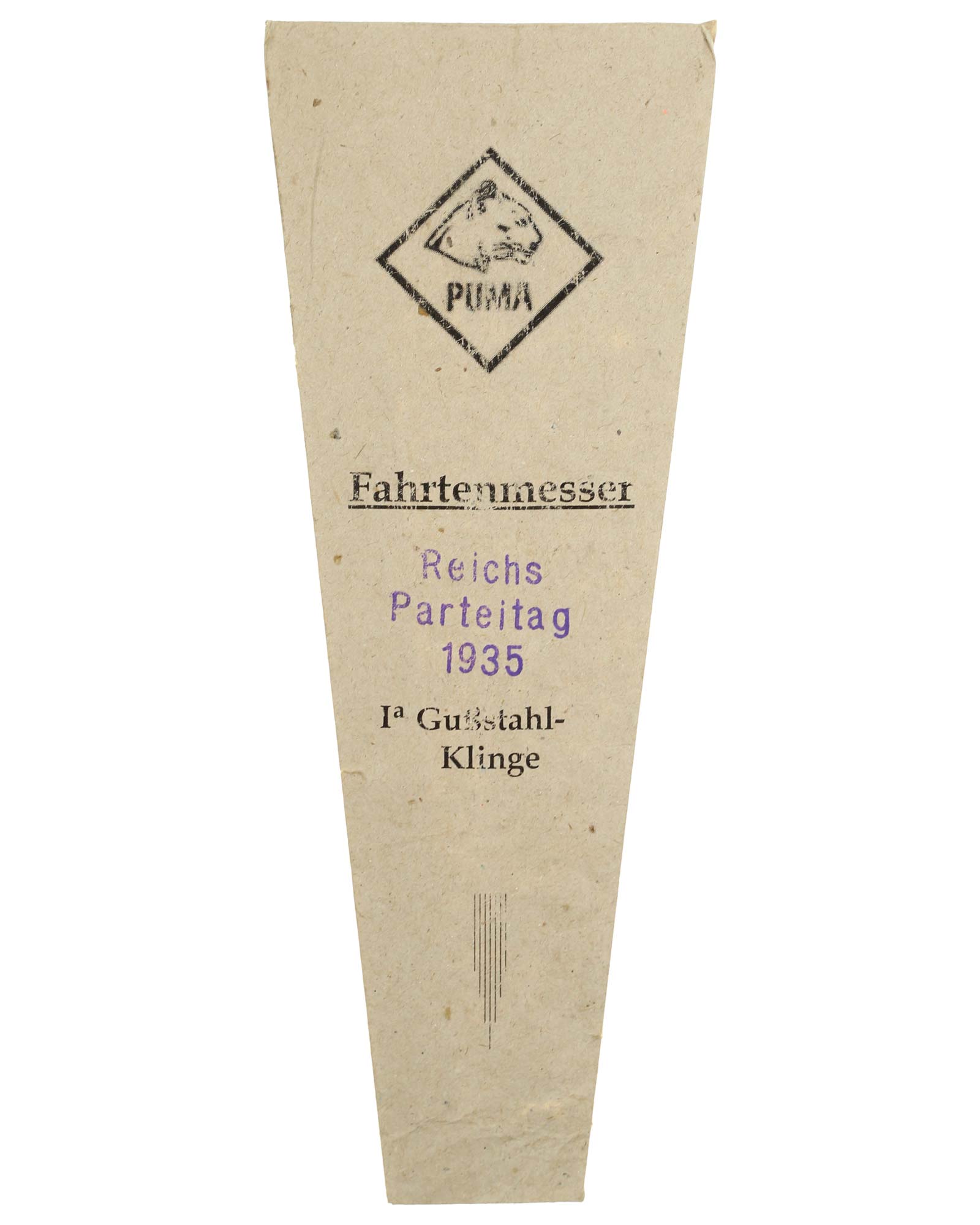 Souvenir Knife «Reichsparteitag Nürnberg 1935» with Original Paper Sack by Puma Solingen