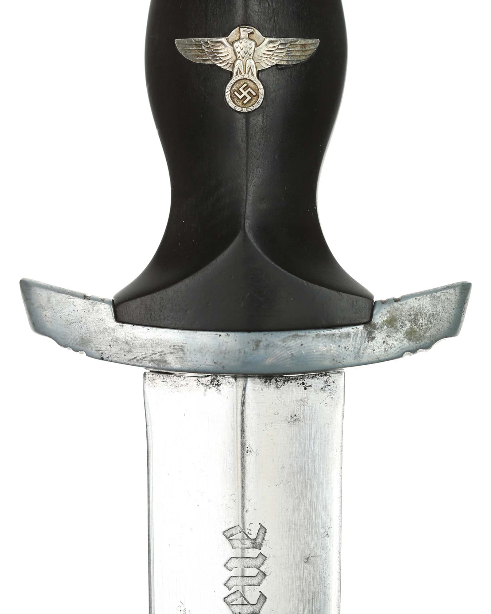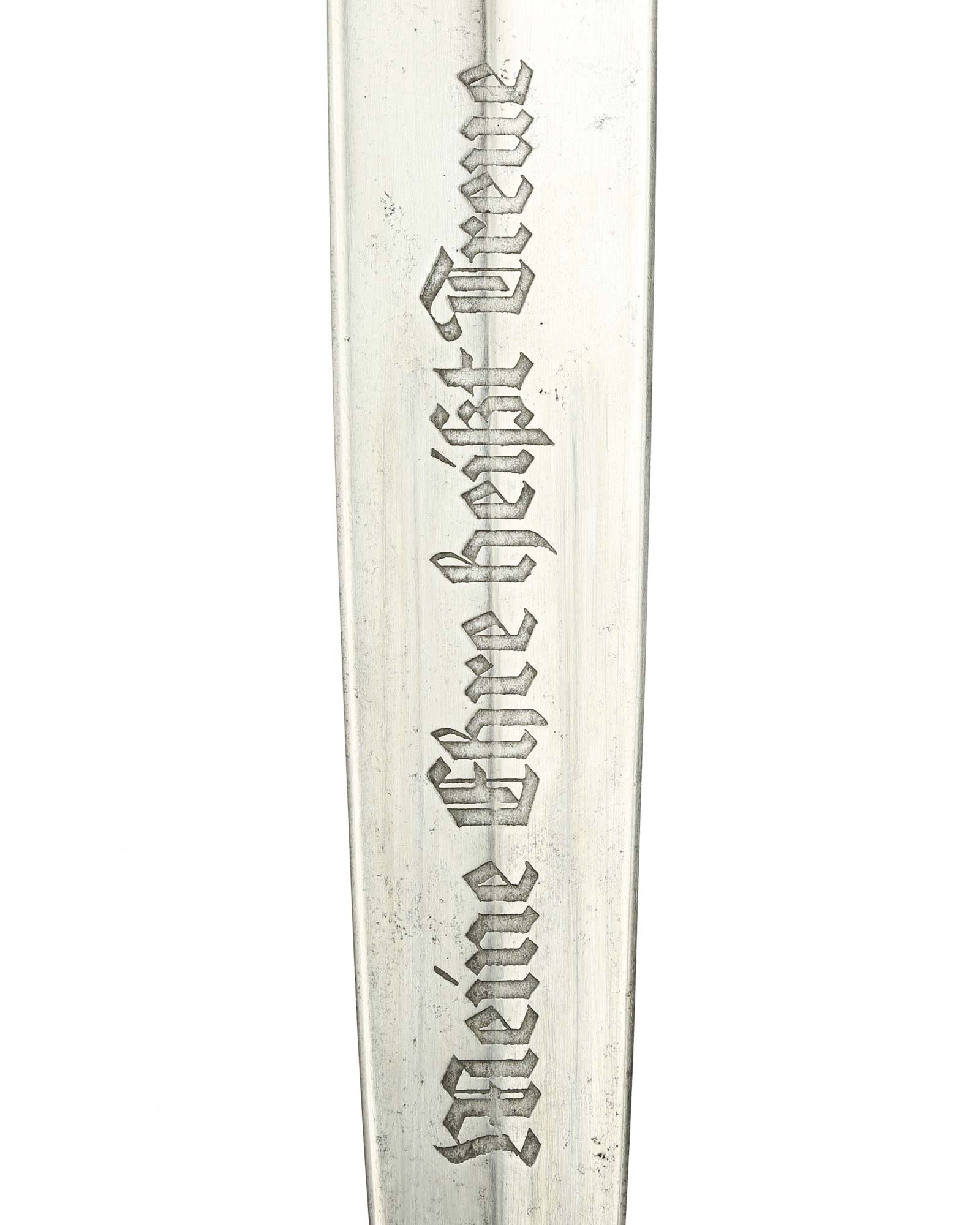 Blade: The blade of this example is in EXC condition. The motto Meine Ehre heißt Treue «My honor is loyalty» is deep. The reverse ricasso is marked with the Gottlieb Hammesfahr Solingen logo.
