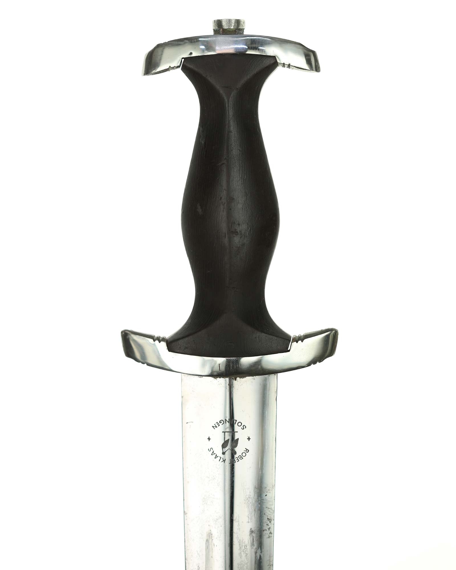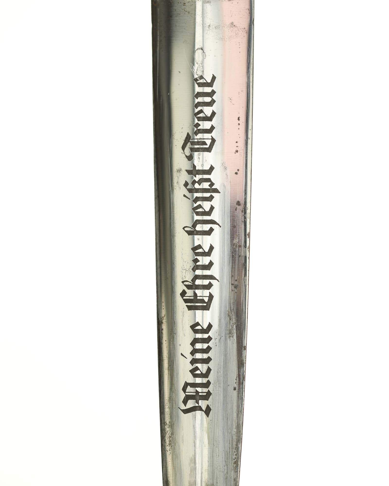 Blade: The blade of this example is still in MINT condition. The motto Meine Ehre heißt Treue «My honor is loyalty» is crisp and deep. The reverse ricasso of the blade is matching-etched formed by the firm's name and location, “Robert Klaas Solingen”. The blade shoulders perfectly meet the lower crossguard contour.