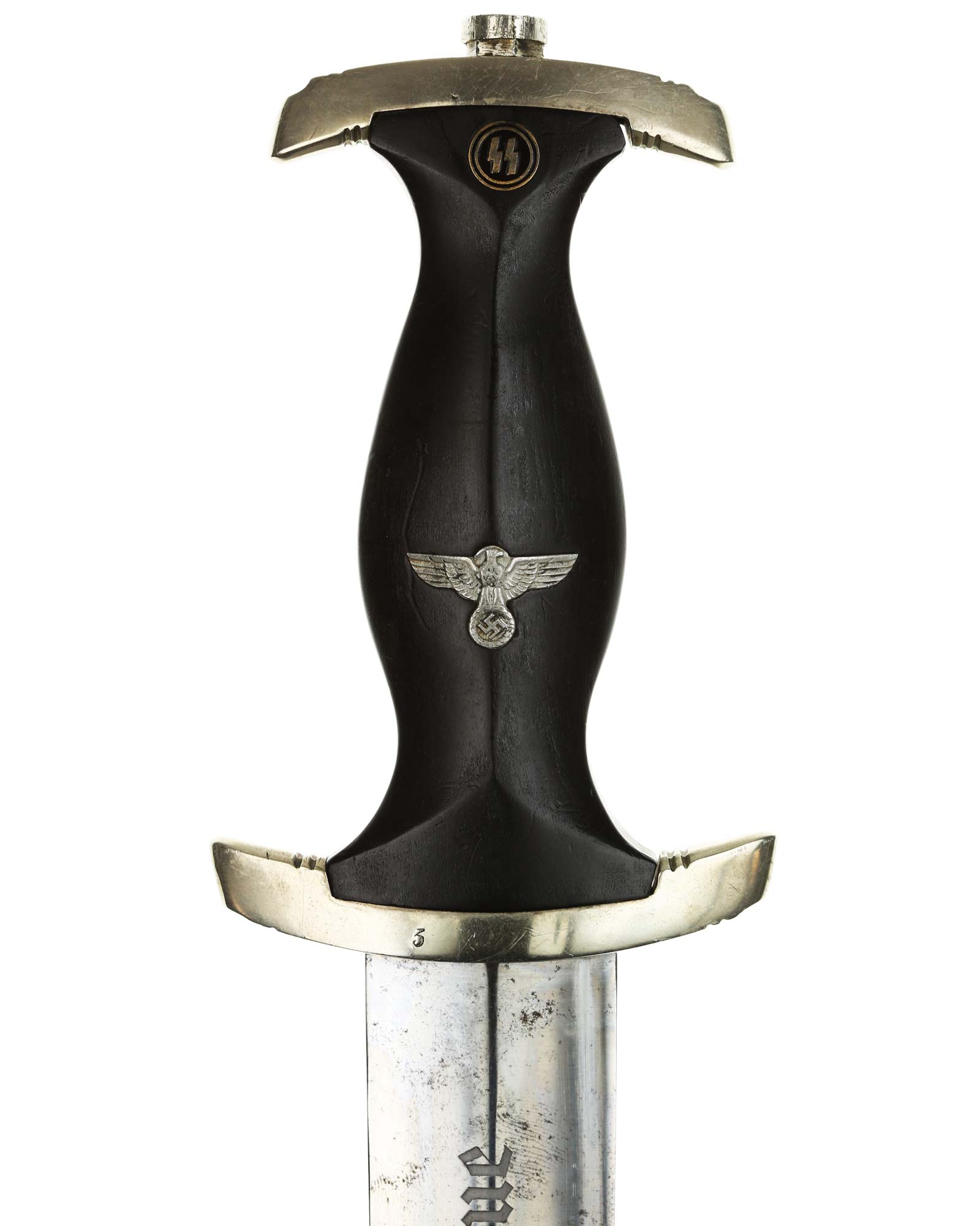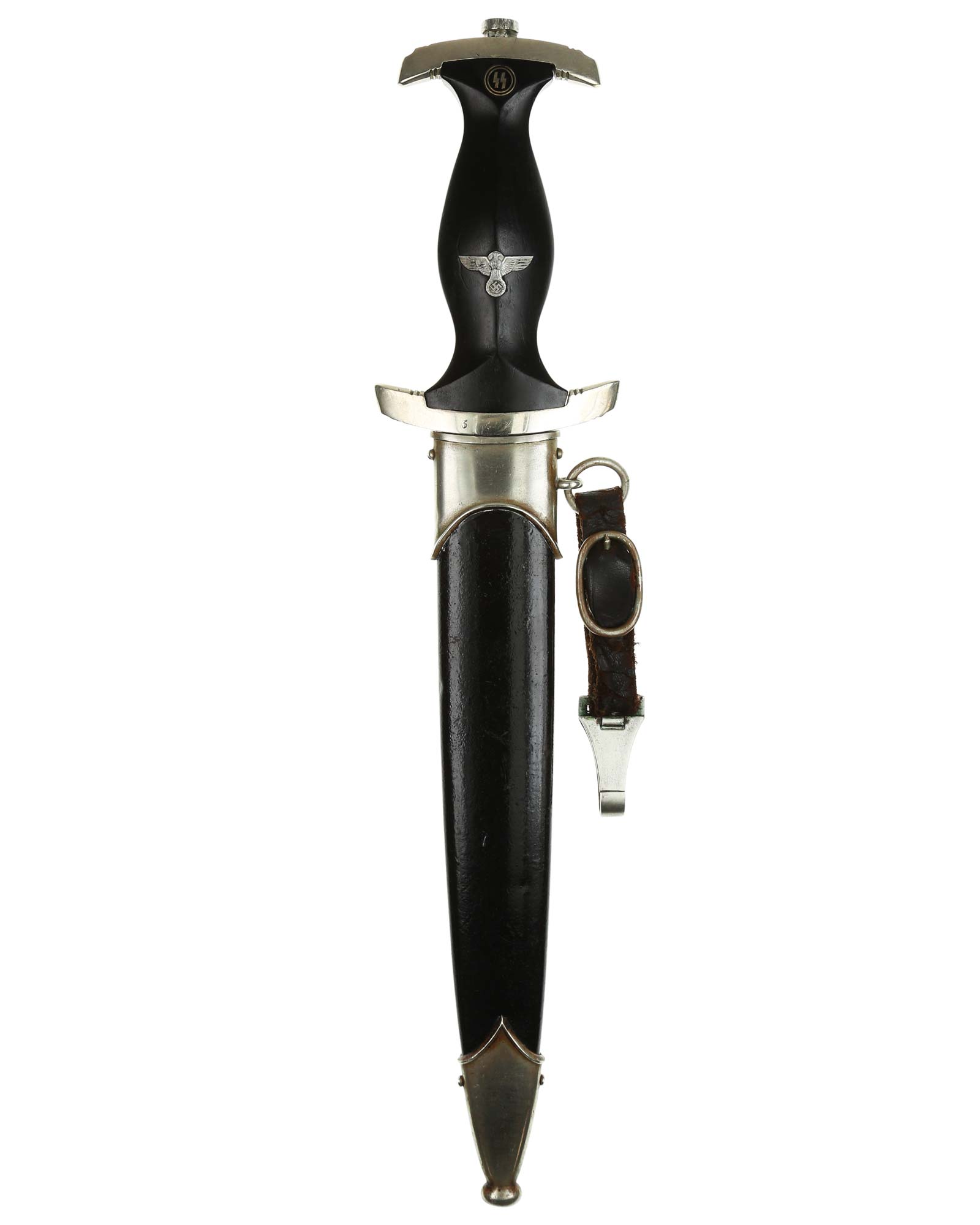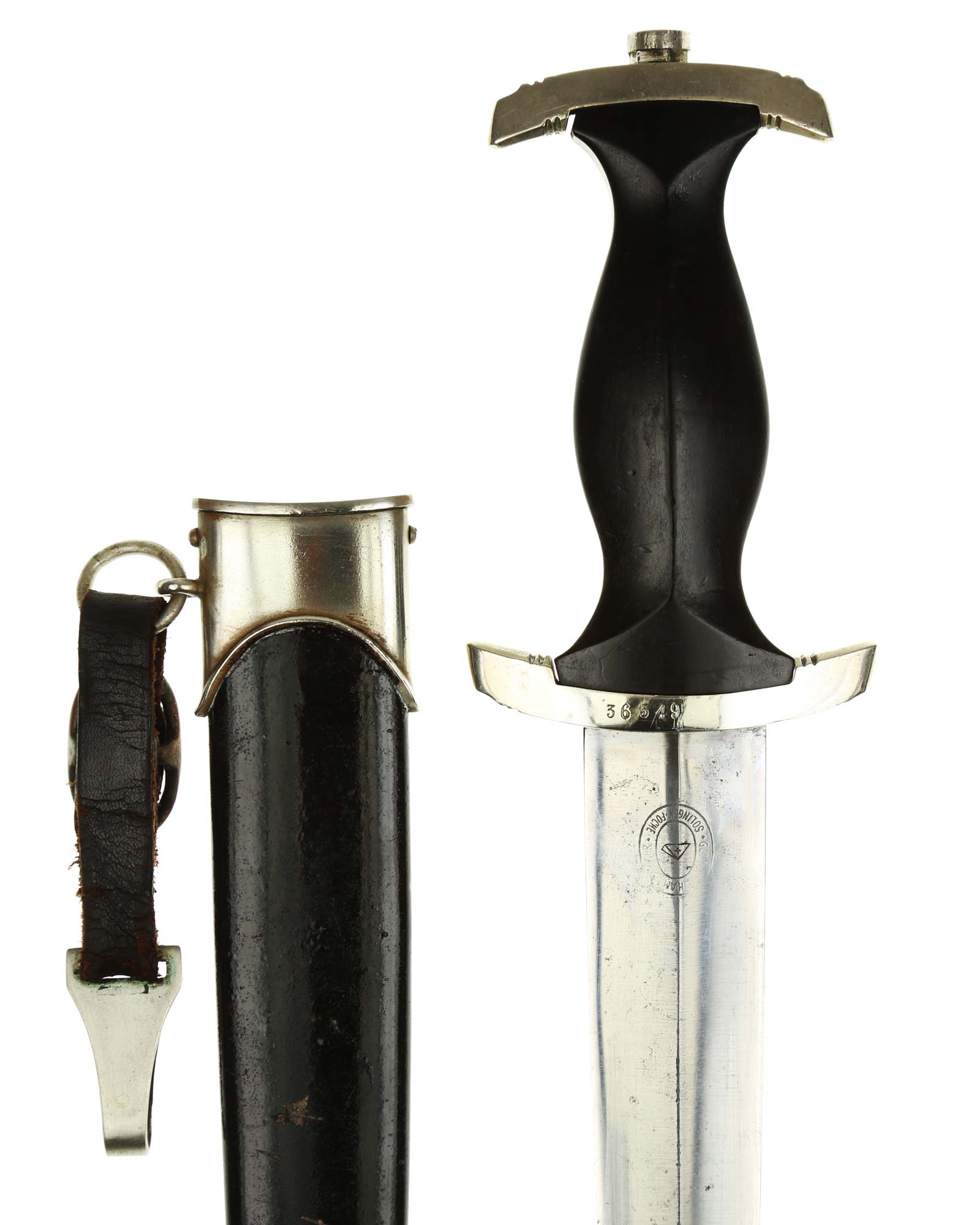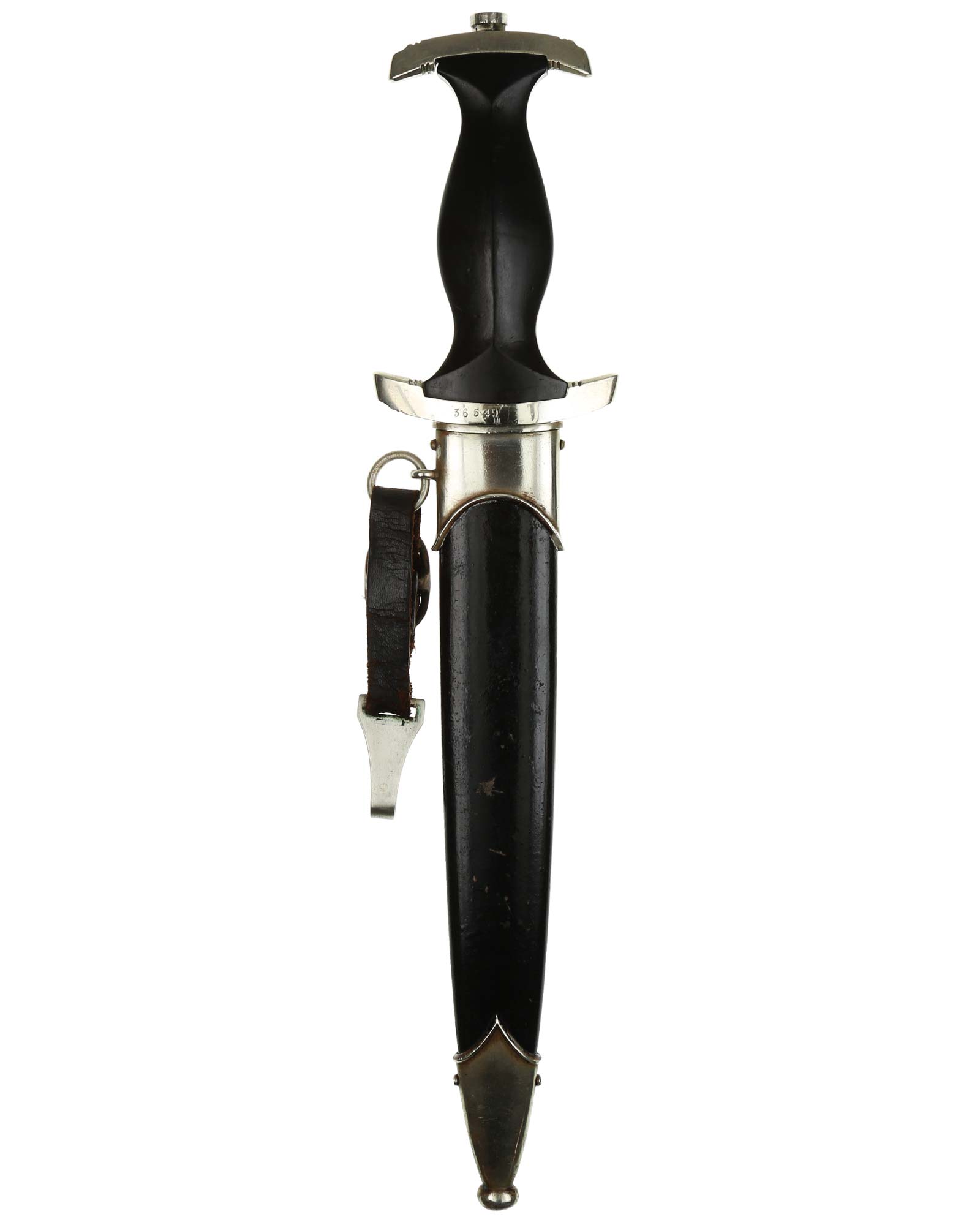 SS [Schutzstaffel] Dagger in early Version. Modell 1933. The dagger is in EXC++ condition throughout. This early SS Dagger is with the Maker Gottlieb Hammesfahr Solingen-Foche. A very nice factory ground Rohm SS dagger here, with SS mann serial number.