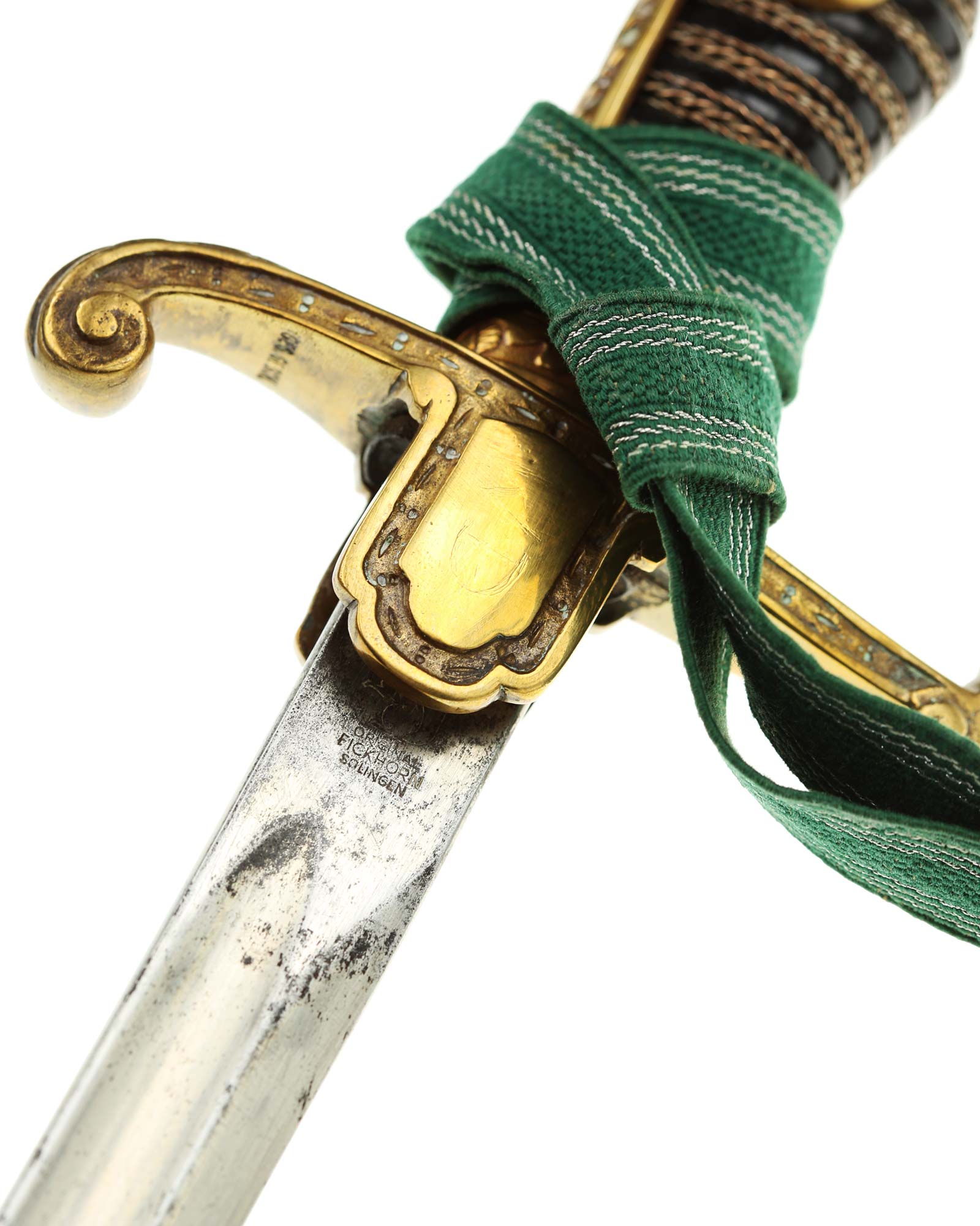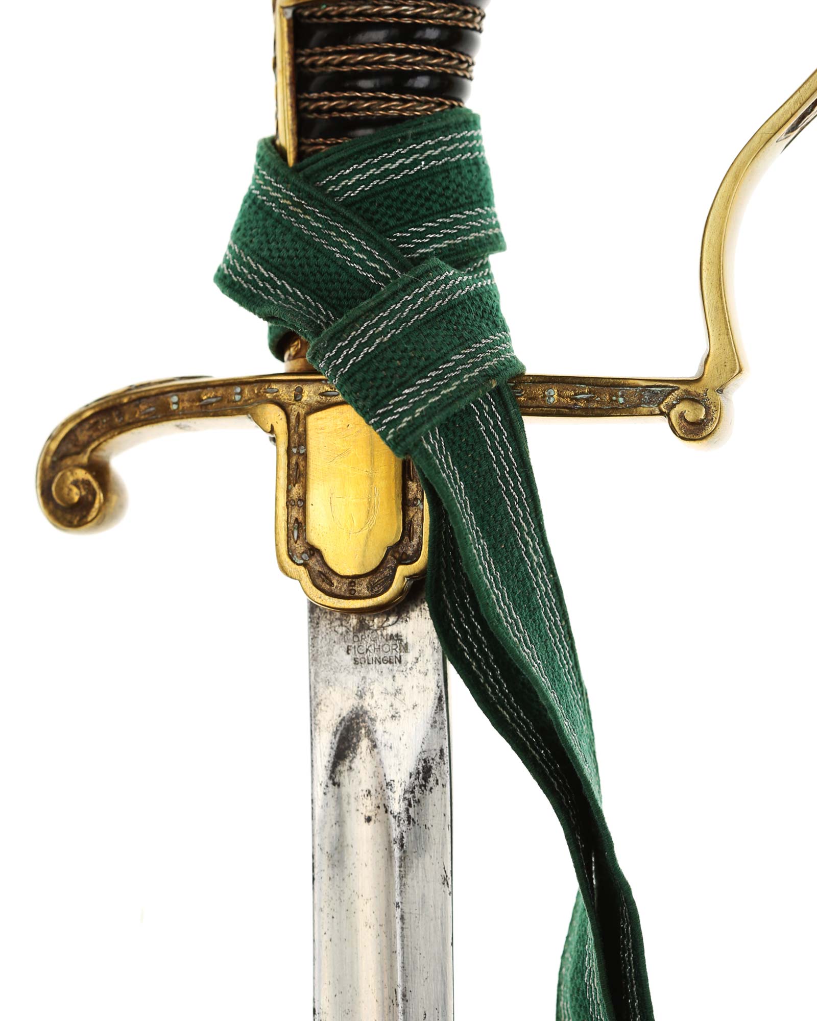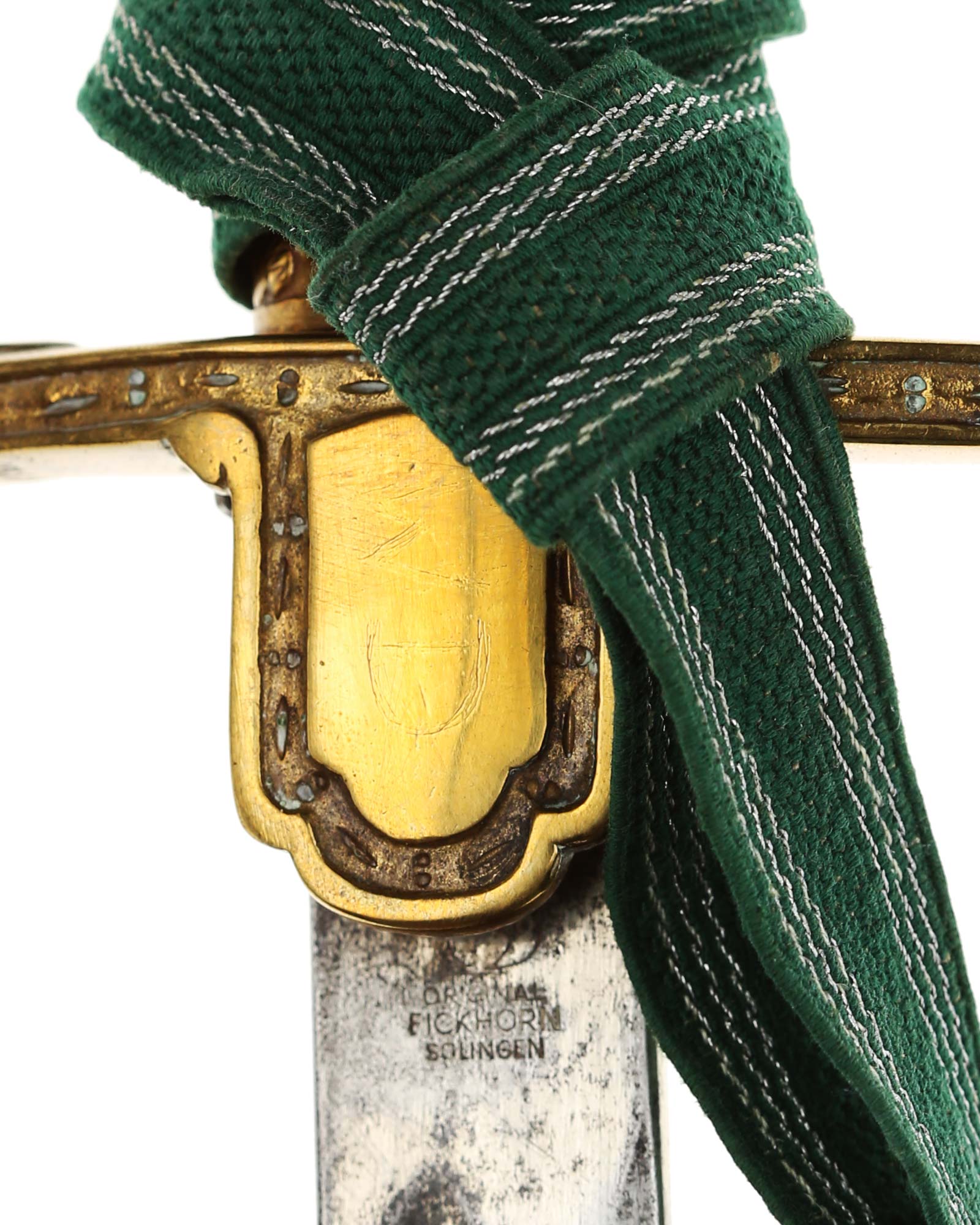 Blade: The long blade is a high quality example, measuring 82,8 cm in length. This blade shows only the most modest of age signs but still grades in EXC condition, the reverse features the "Carl Eickhorn" maker mark with the firm’s name and the location, “Solingen”. The original brown leather washer is in place.