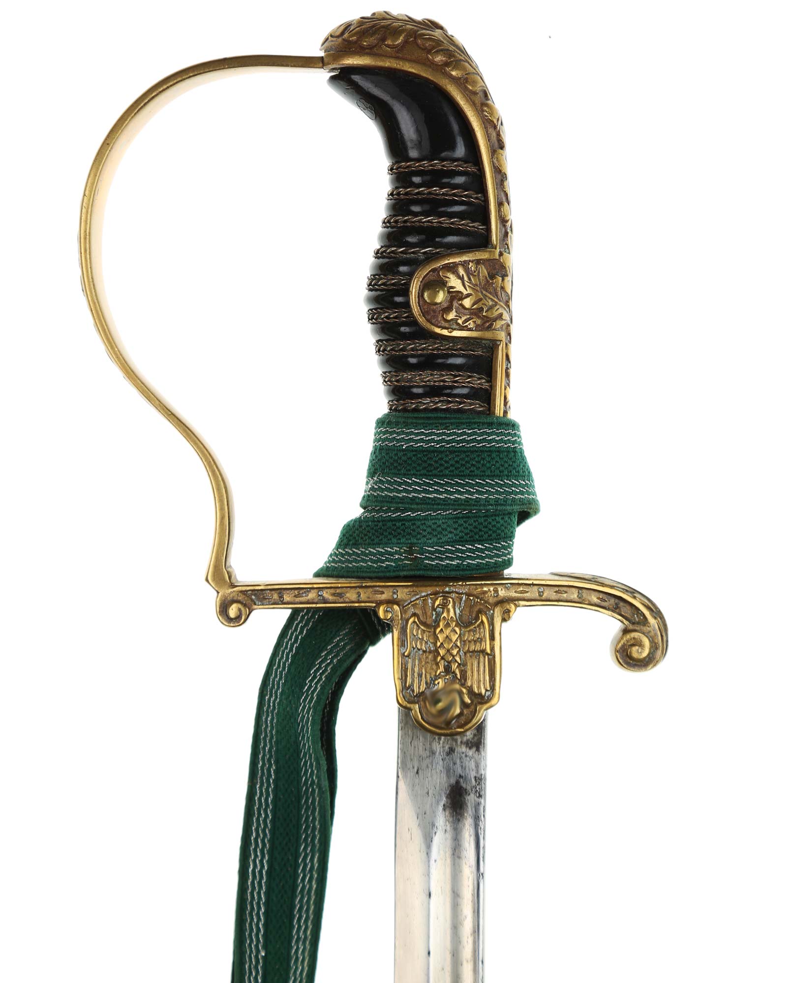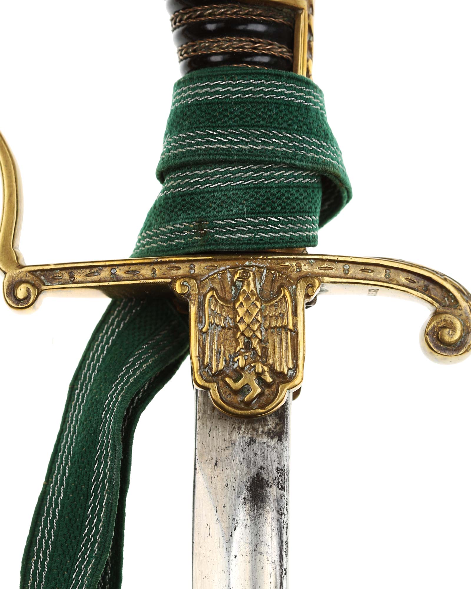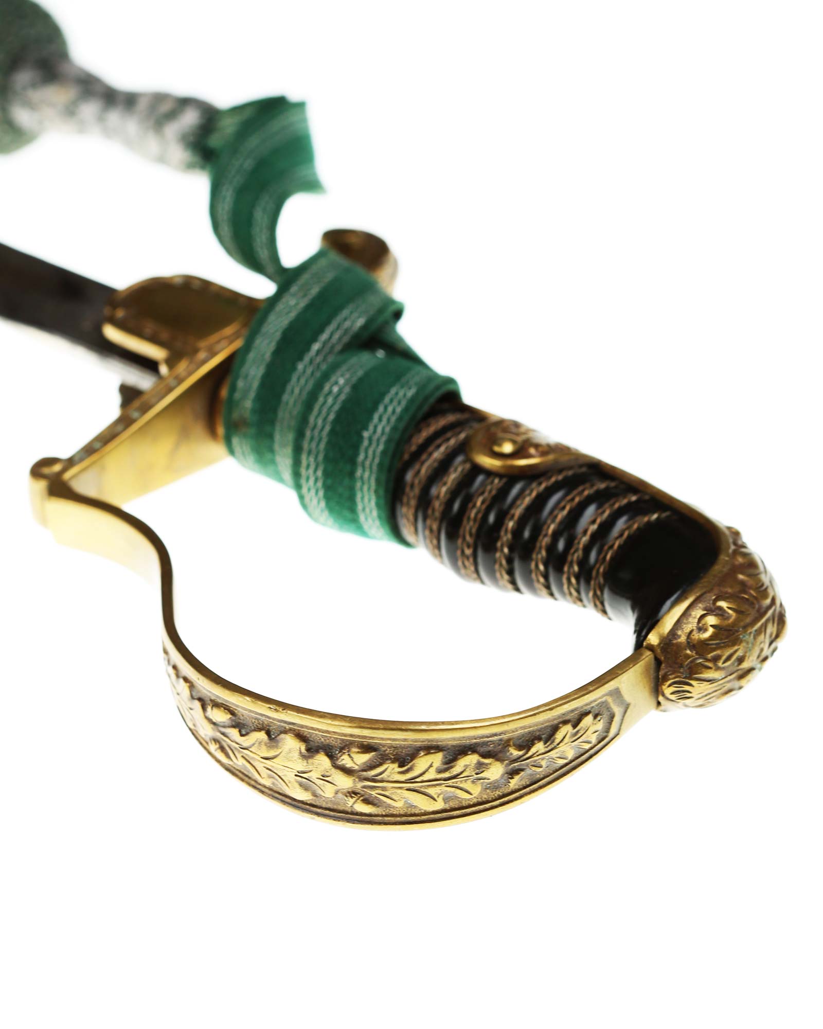Blade: The long blade is a high quality example, measuring 82,8 cm in length. This blade shows only the most modest of age signs but still grades in EXC condition, the reverse features the "Carl Eickhorn" maker mark with the firm’s name and the location, “Solingen”. The original brown leather washer is in place.