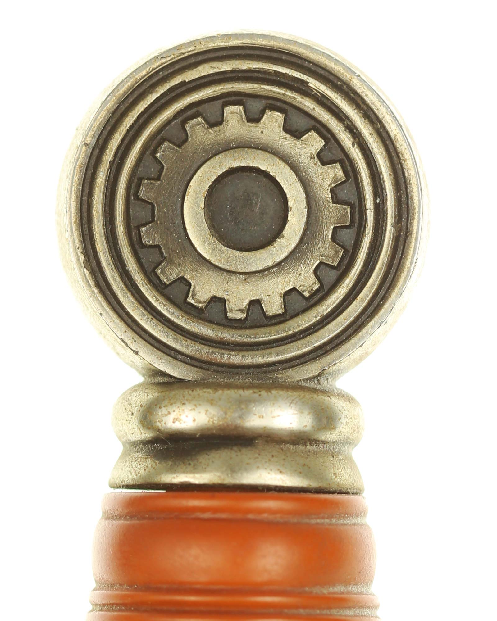 Grip: The grip is a most attractive, yellow color. This grip is in fine condition throughout. The pommel cap has all of the nickel plating intact throughout. This cap has good, crisp edges and features three circles on each side which surround the TeNo symbol of a cogwheel. Most of the factory blackening appears in the recesses. The crossguard, featuring the TeNo eagle, is in fairly nice condition, having a few lifts in the surfaces. The crossguard eagle still has fine detail throughout, and most of the factory darkening is in the backgrounds of the bird's head and feathering, as well as the serrations that appear on the four legs of the swastika. Superimposed over the swastika is the TeNo gearwheel logo, with a “T” shaped hammer and the letter “N” combined.