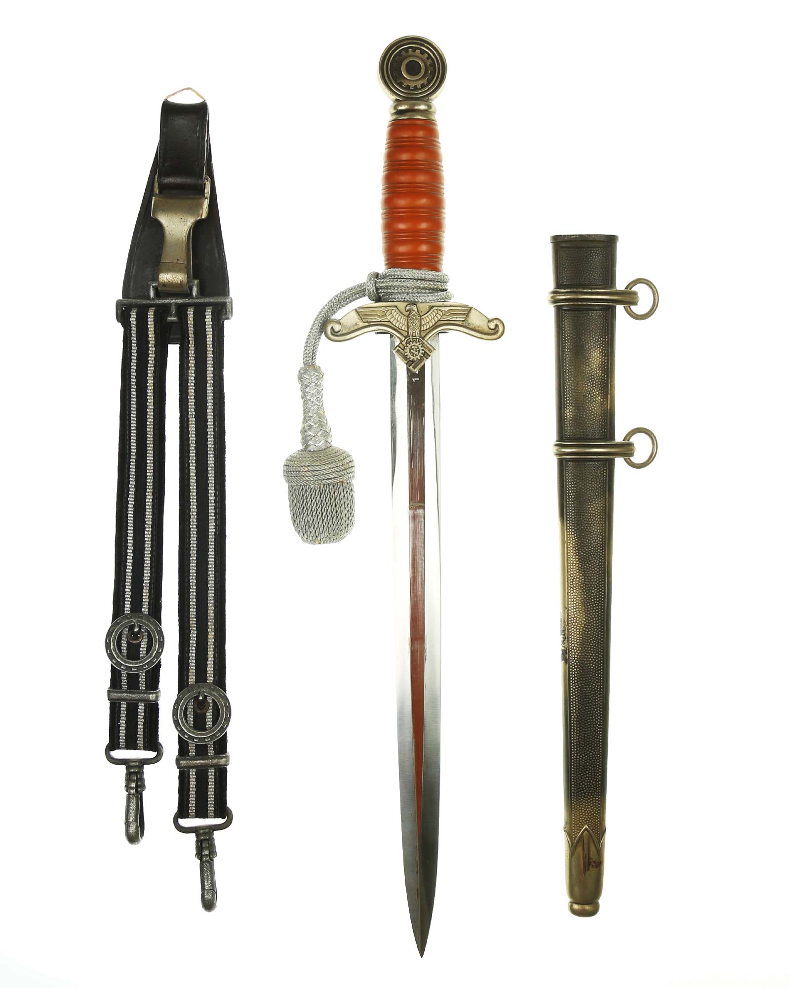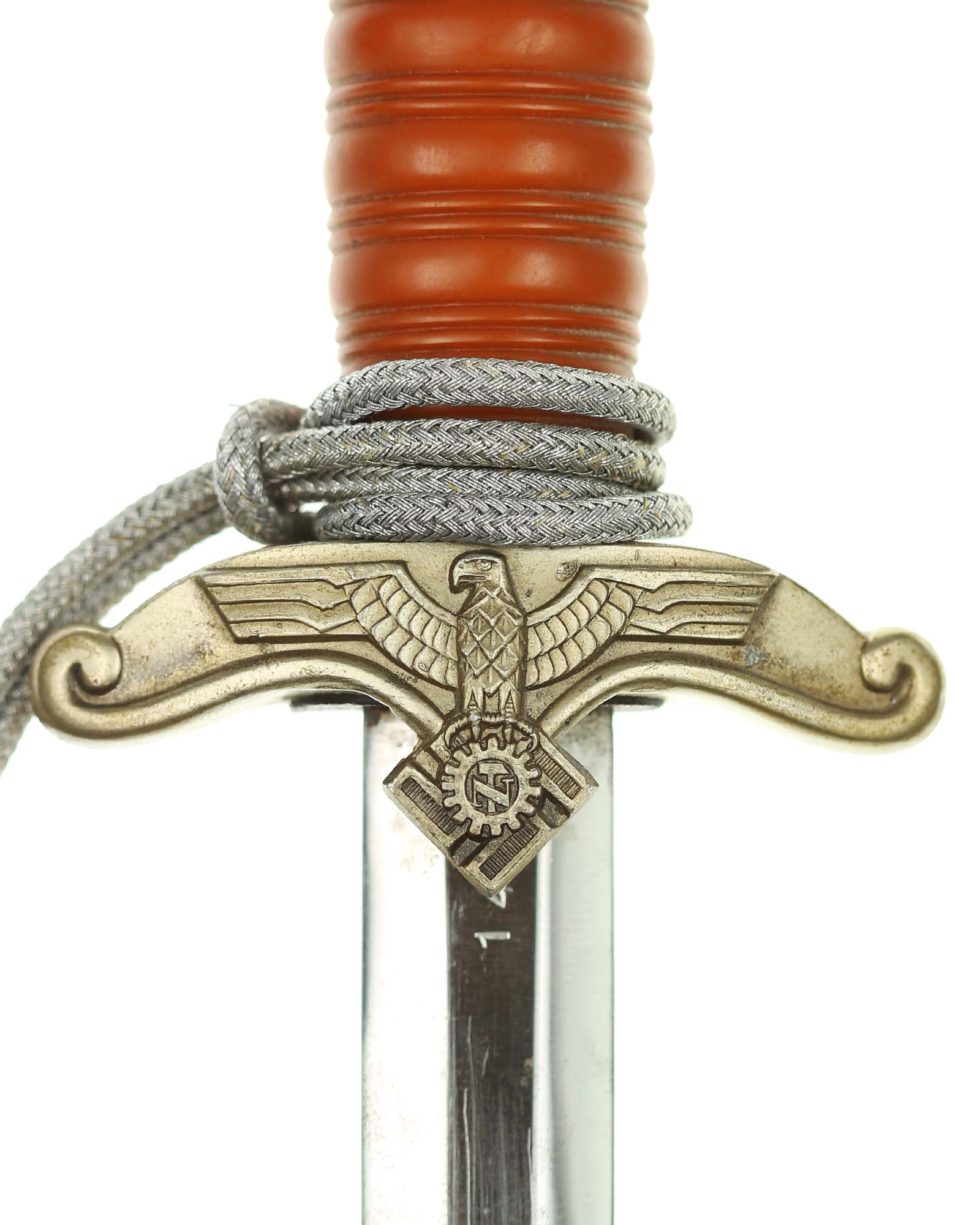 This TeNo [Technische Nothilfe] Officer's Dagger is in near mint condition throughout. Model 1938. The total length is 43.0 cm. The Teno Leader Dagger has the maker mark on the blade: Original Eickhorn in Solingen.