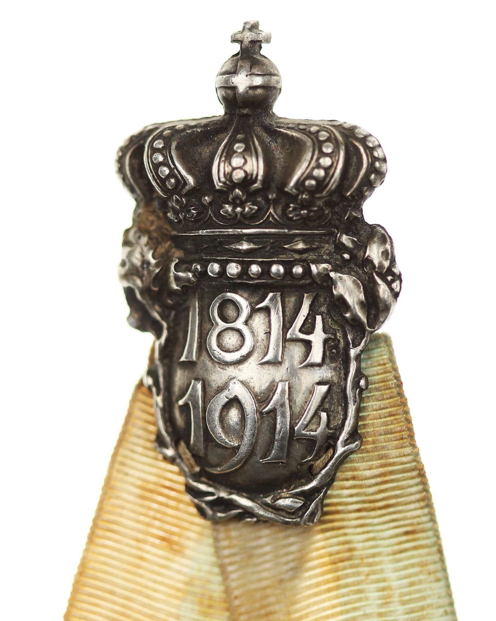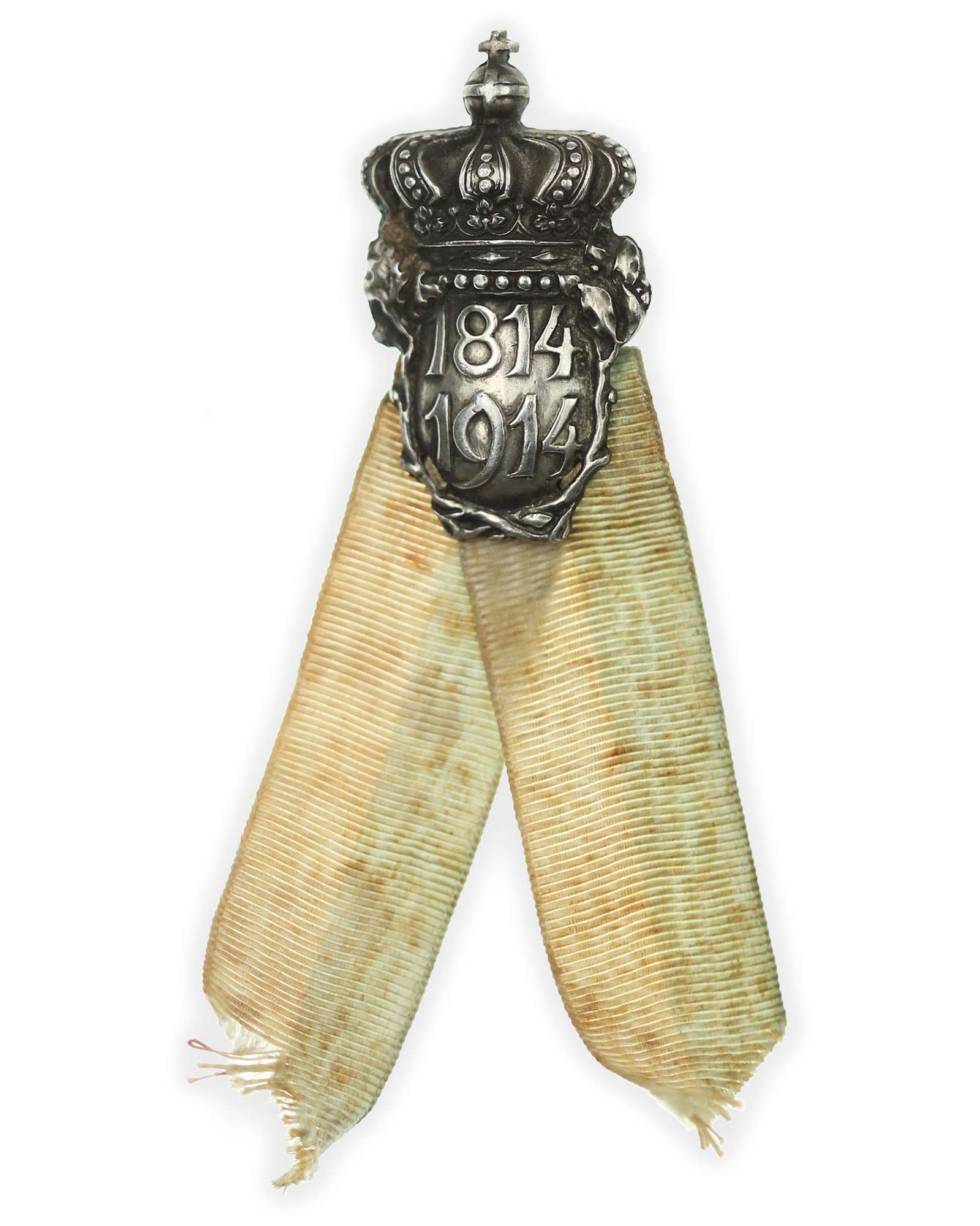 Badge with crown 1814-1914. Weight 16 g, dimensions 26.21 x 44.51 mm, condition 2.