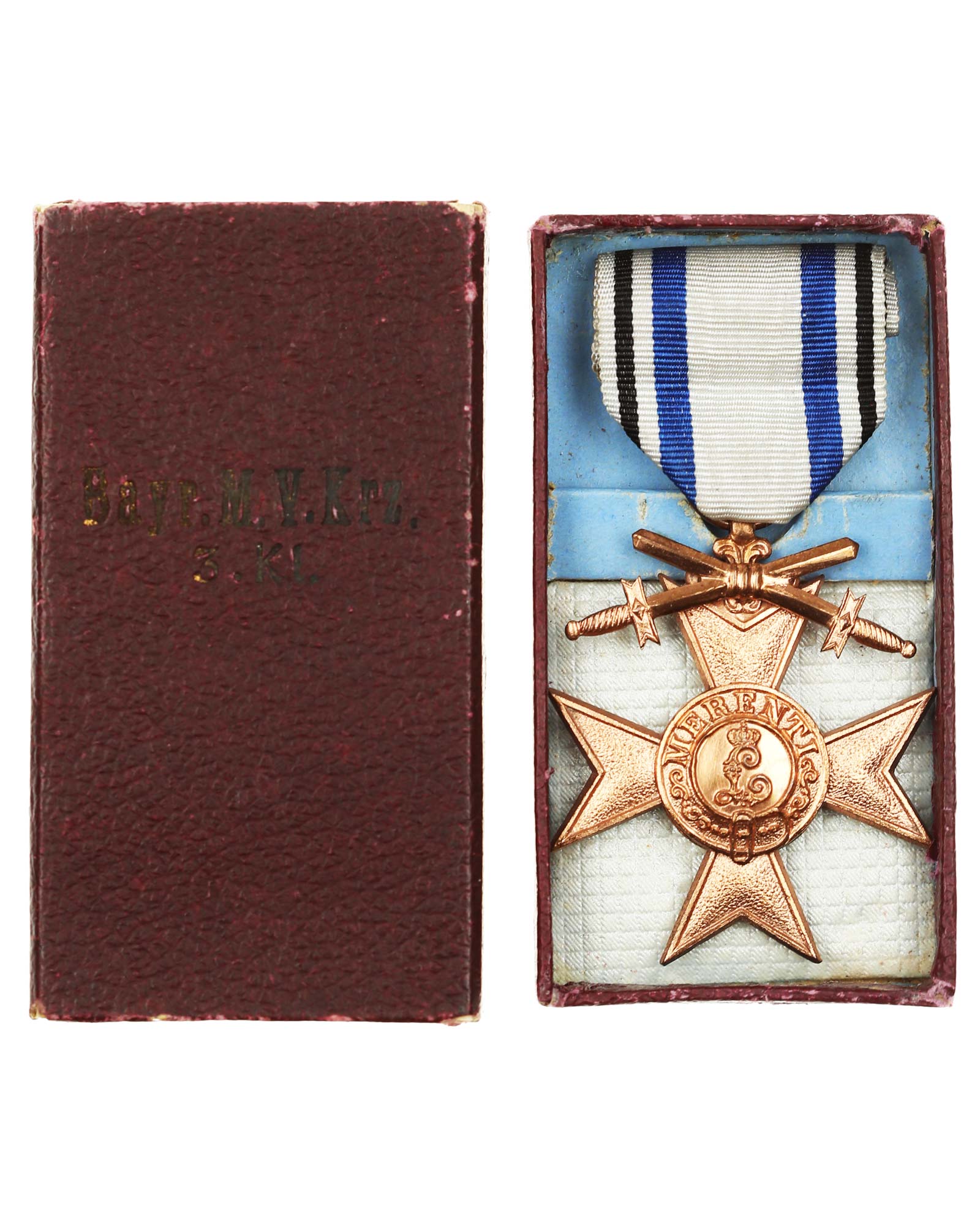 Bavarian Military Merit Cross 3rd Class with swords an crown in case
