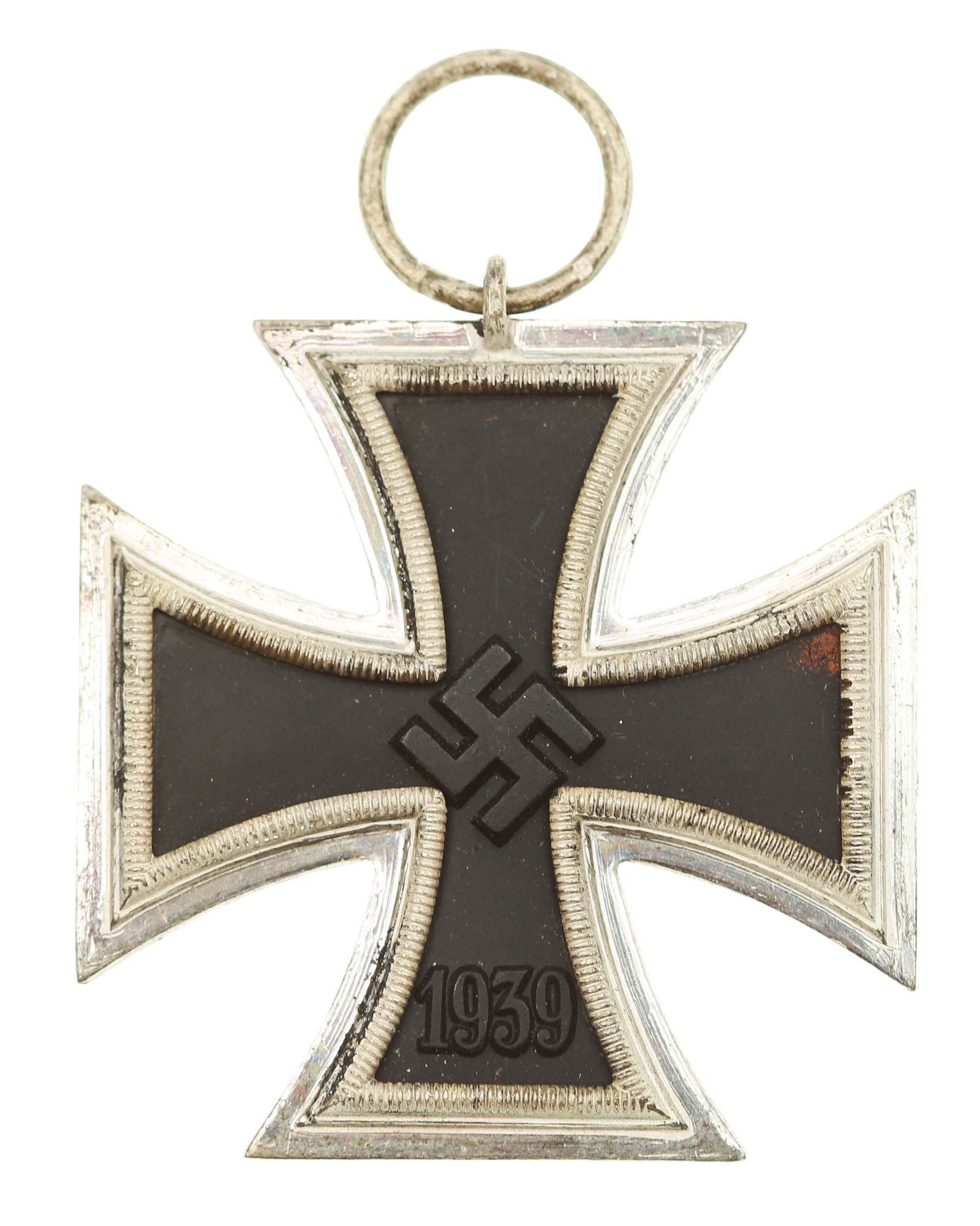1939 Iron Cross, Second Class. Iron Cross 2nd Class with a silver frame, iron core, magnetic, toned, in EXC+ condition. Maker mark: 4 (Steinhauer & Lück Lüdenscheid).