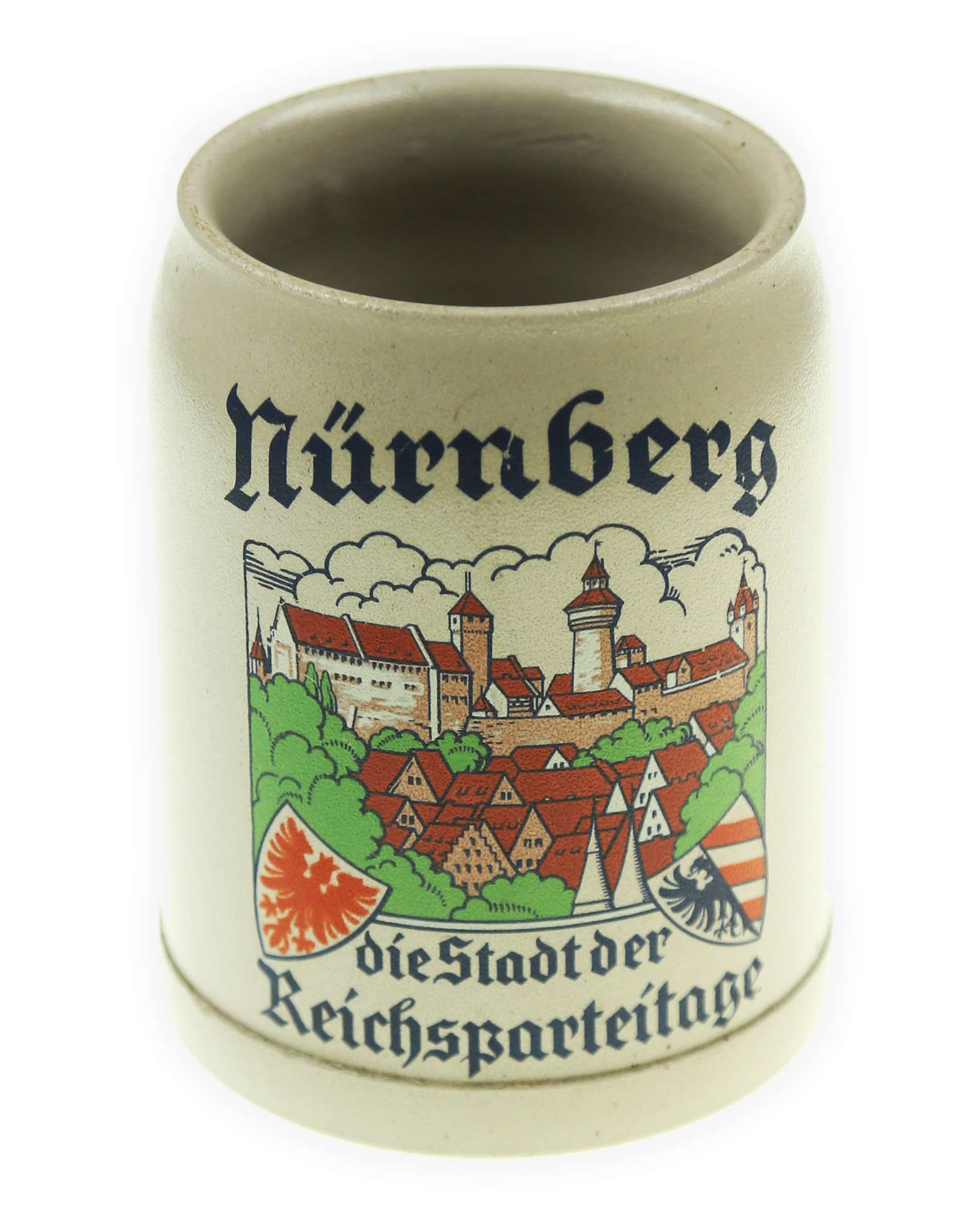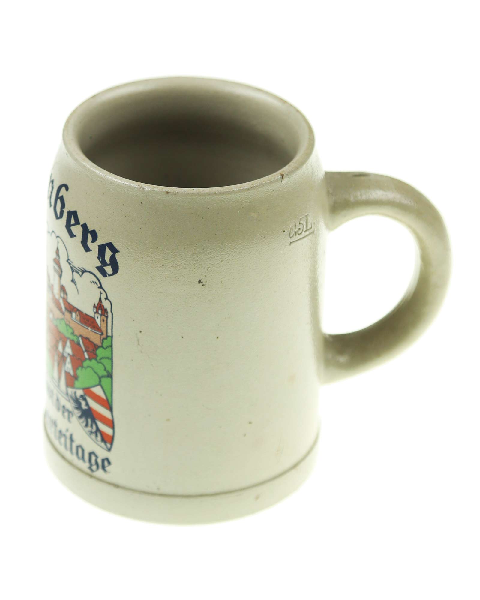 Stone jug 0.5 l with coloured print and inscription: Nuremberg the city of the Reichsparteitage. Condition EXC+.