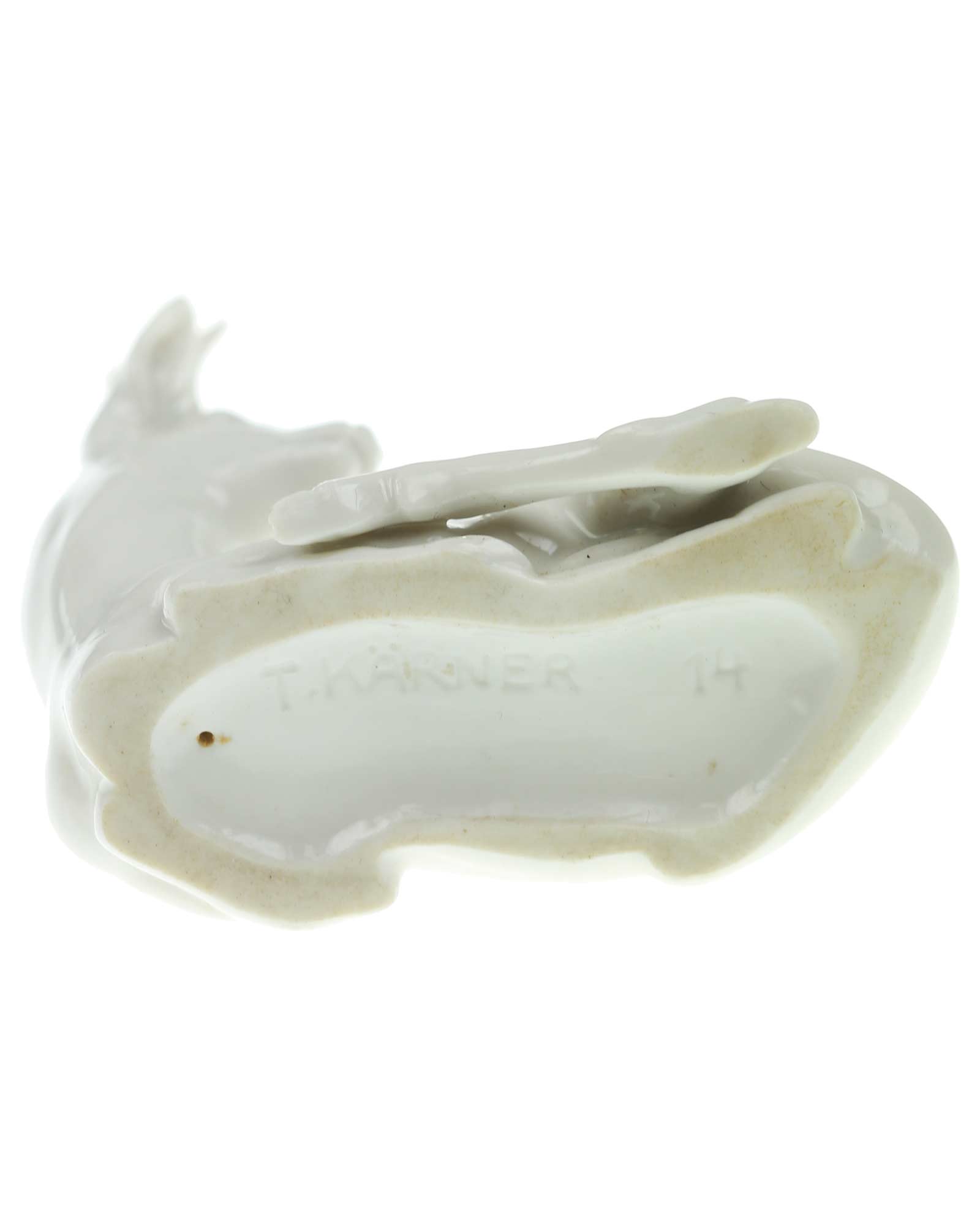 This magnificent Lying stag is in mint condition. No damage or repairs. The Stag measures 7,5 cm height. It has the number 14 incised and also the artist's name, T. Kärner (Prof. Theodor Kärner).