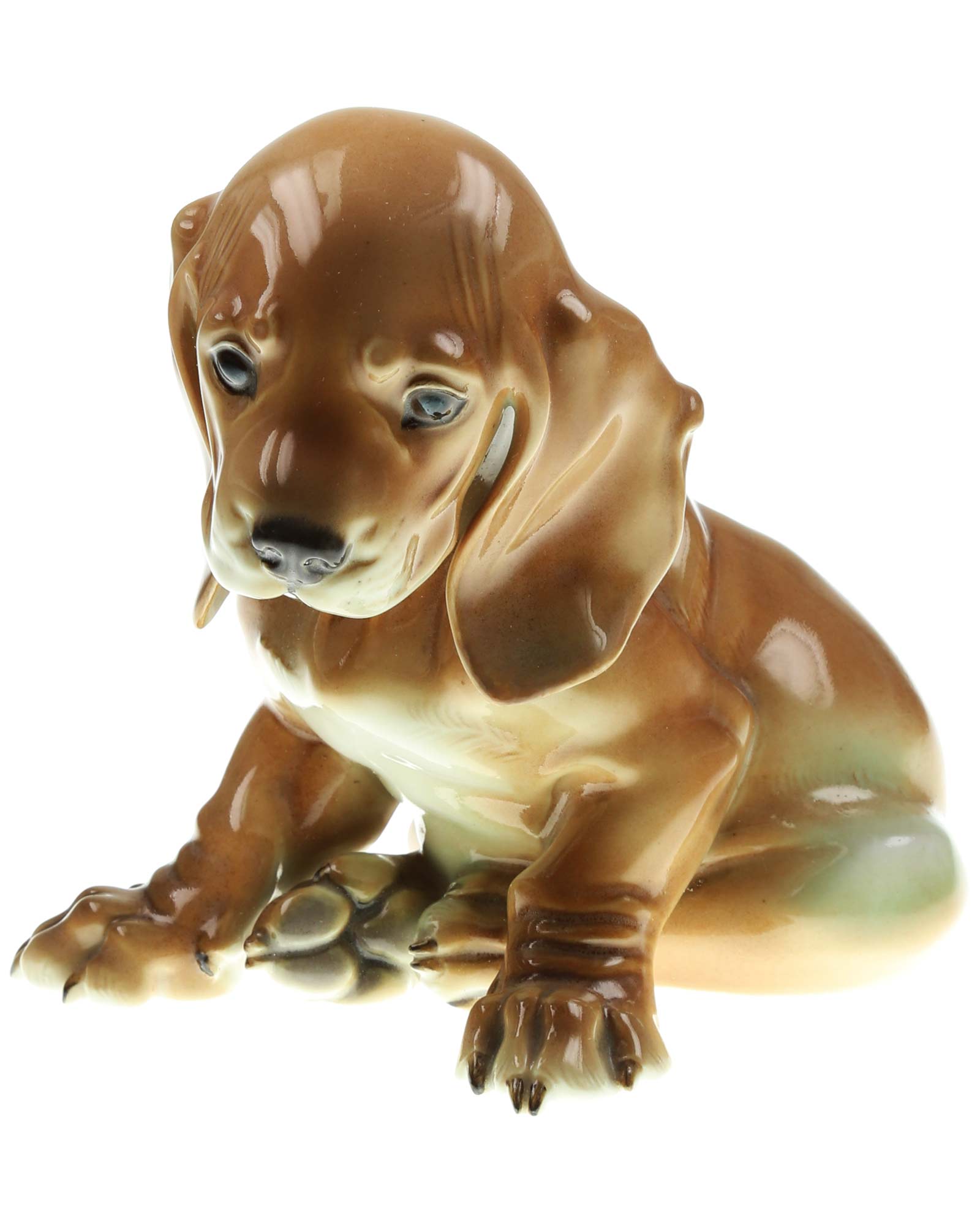 Sitting Young Dachshund Painted Allach No. 2 – Theodor Kärner