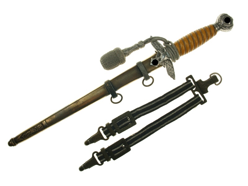 Офицерский кортик ВВС Люфтваффе (нем. Luftwaffen Offiziersdolch). Согласно Версальскому мирному договору, Германии было запрещено иметь собственные военно-воздушные силы. Однако в марте 1933 года была учреждена Немецкая Авиационная Спортивная Лига, объединившая все гражданские летные клубы в одну организацию. Под спортивной вывеской втайне готовились будущие военные летчики. Вскоре после избрания Гитлера канцлером Германии военно-воздушные силы (Люфтваффе) получили официальный статус и получили официальный образец кортика для ношения. Это был первый его тип образца 1934 года, который в 1937 году был заменен представленным здесь кортиком второго типа. Он был представлен для ношения офицерами, кандидатами в офицеры и чиновниками, имеющими эквивалентные воинские звания.