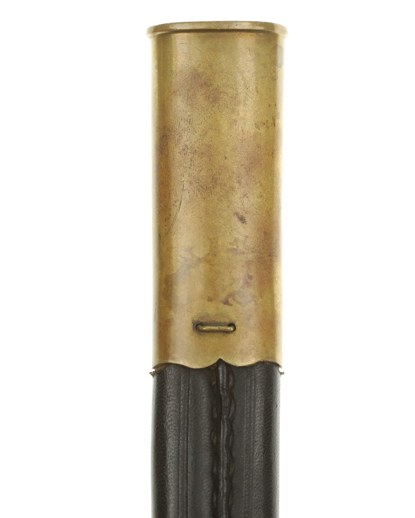 НОЖНЫ черные кожаные с двумя оковками, на устье - шпенек в форме желудя.
