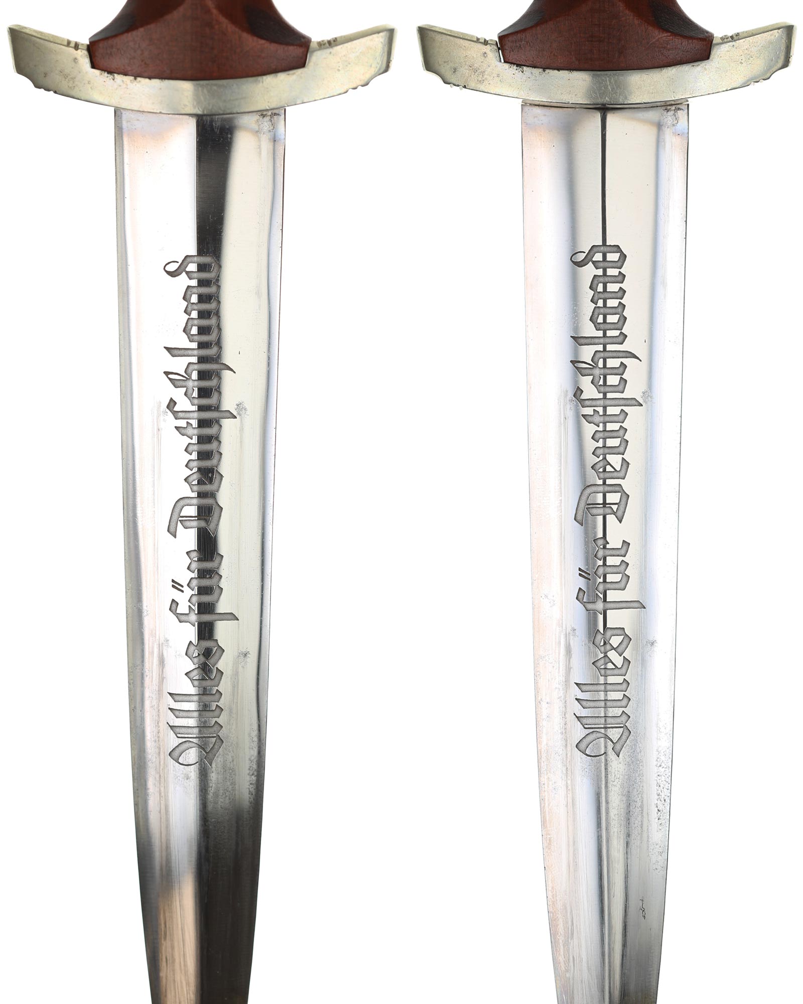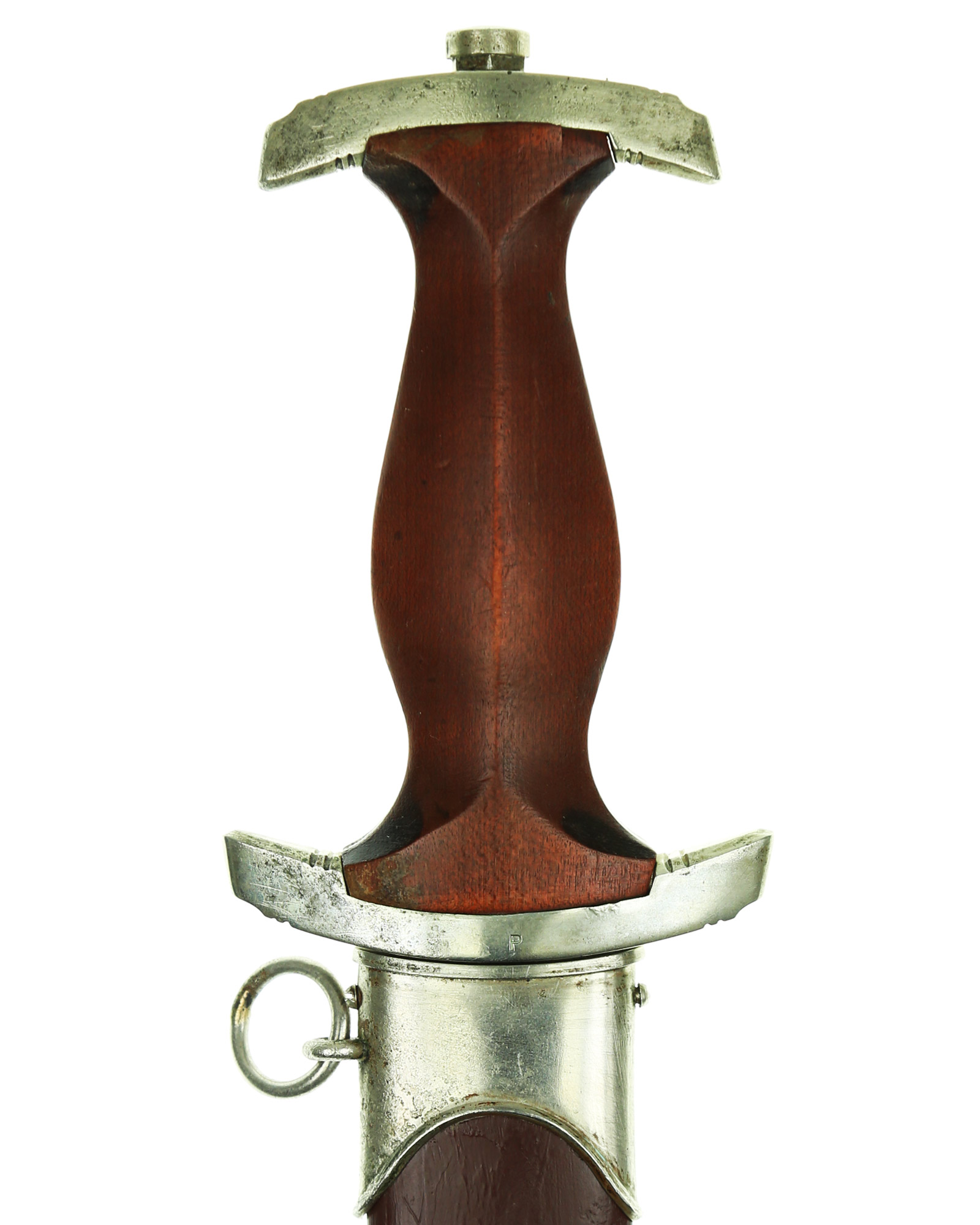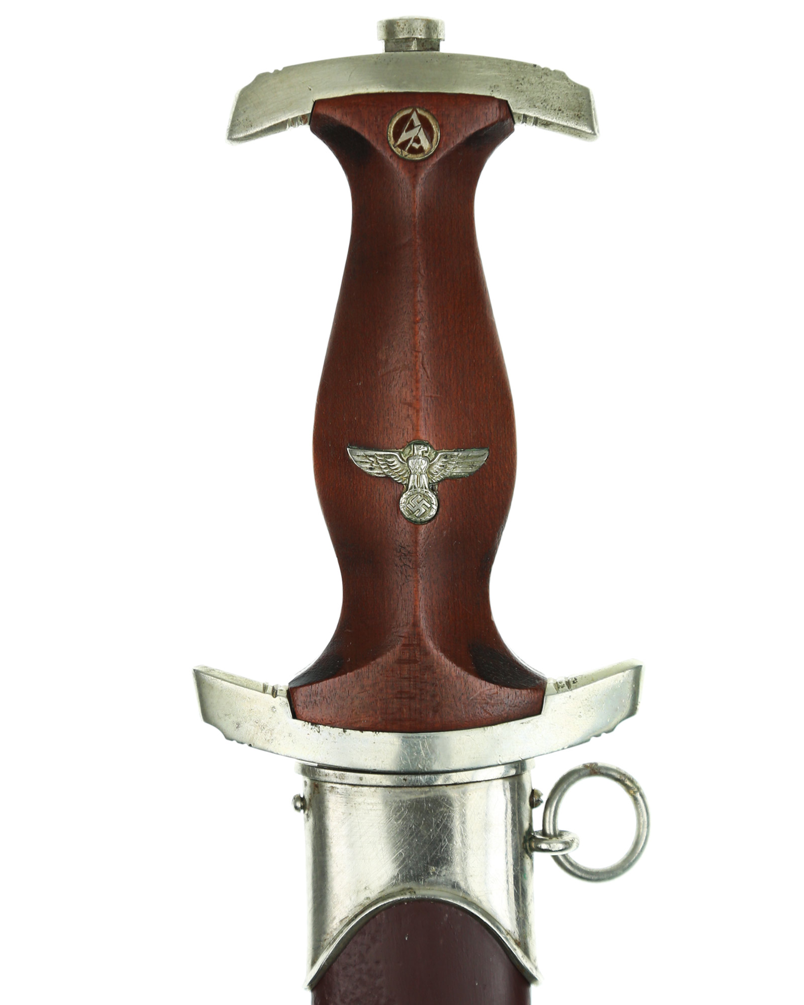 Клинок: Клинок кинжала прямой, стальной, двулезвийный, кинжального типа, с выраженным центральным ребром. На одной стороне клинка методом травления нанесен девиз СА «Всё для Германии» (Alles für Deutchland). Клинок на оборотной стороне у основания стоит клеймо производителя Эрнст Рёттген Золинген (Ernst Röttgen Solingen).