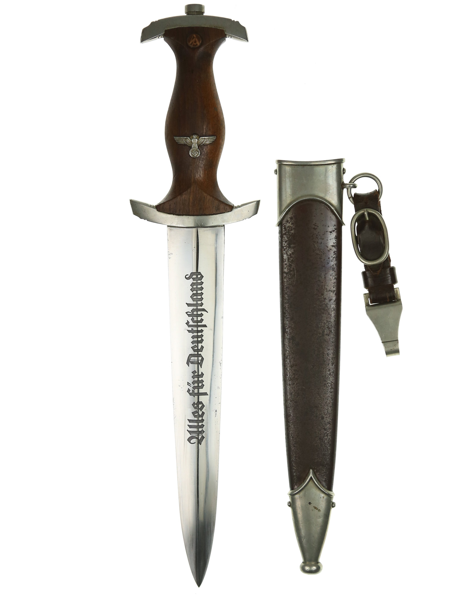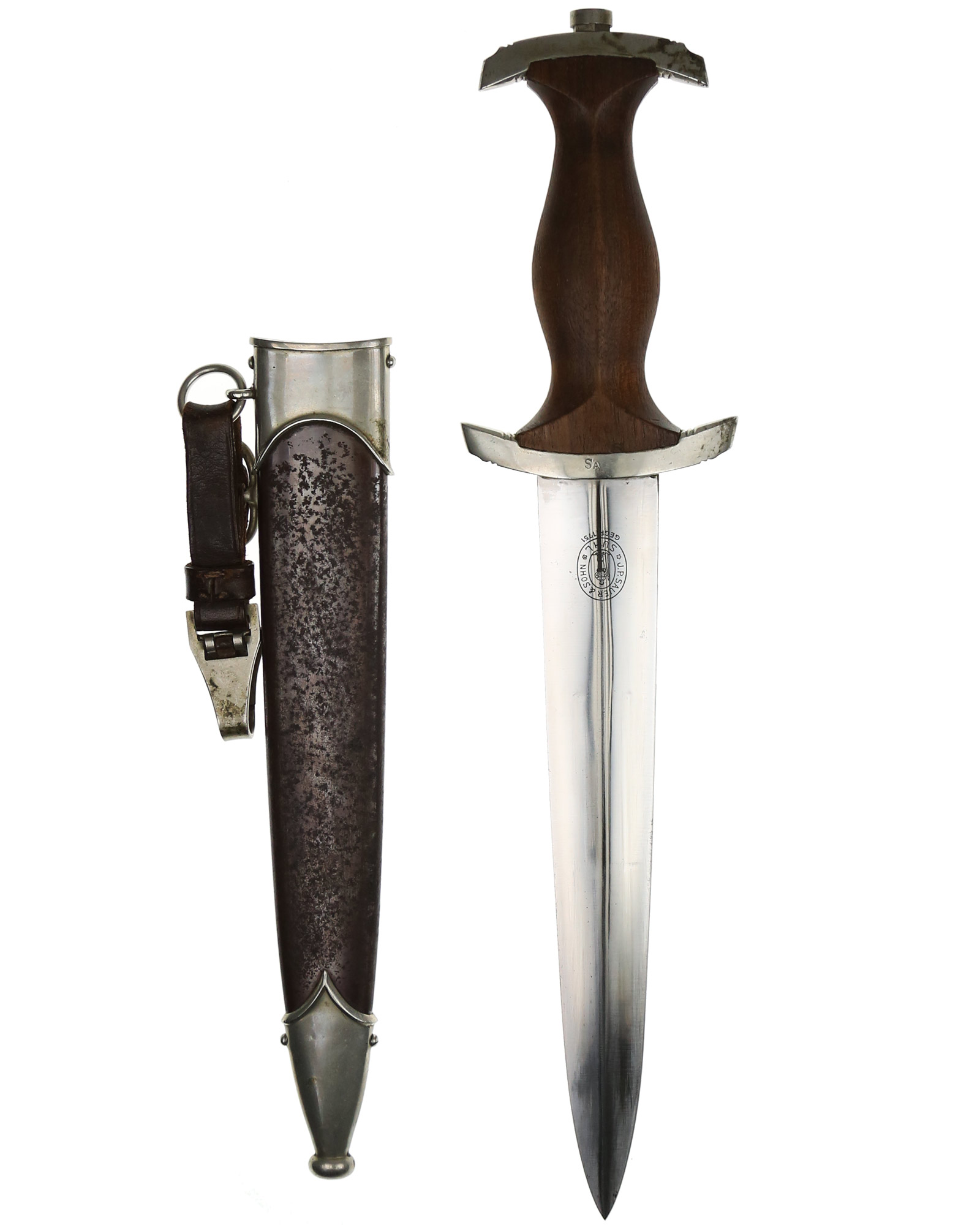 Ранний кинжал штурмовых отрядов СА образца 1933 года. Ранний период производства, Производитель фирма J.P. Sauer & Sohn, Suhl (Зауэр & сын 1751 г., Зуль). Длина в ножнах 37,3 см.