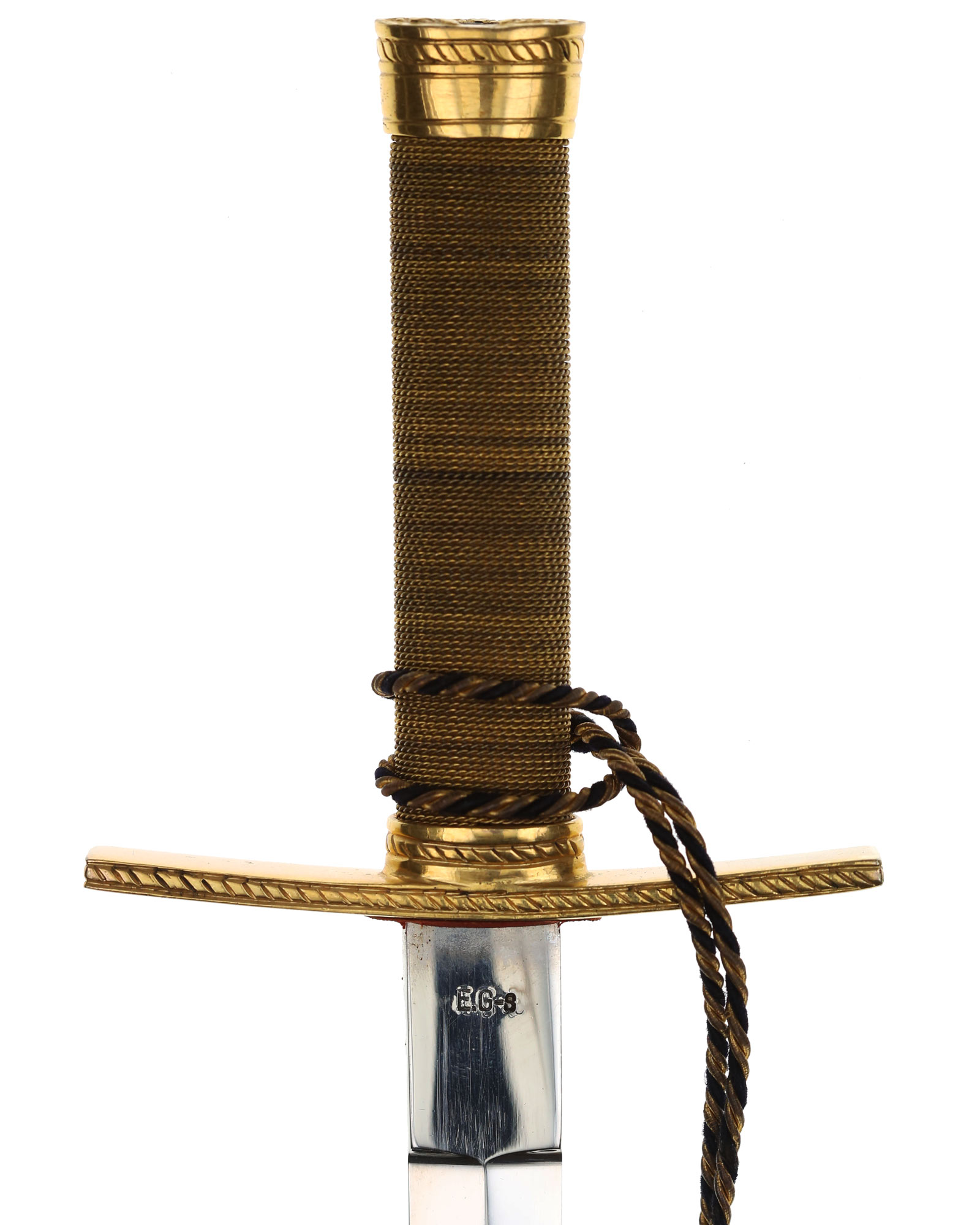 Клинок: Клинок стальной, прямой, плоский, ромбического сечения, обоюдоострый, никелированный. На пяте клеймо производителя «E.G-S» — клеймо фирмы производителя «Eric Gumaelius of Stockholm».