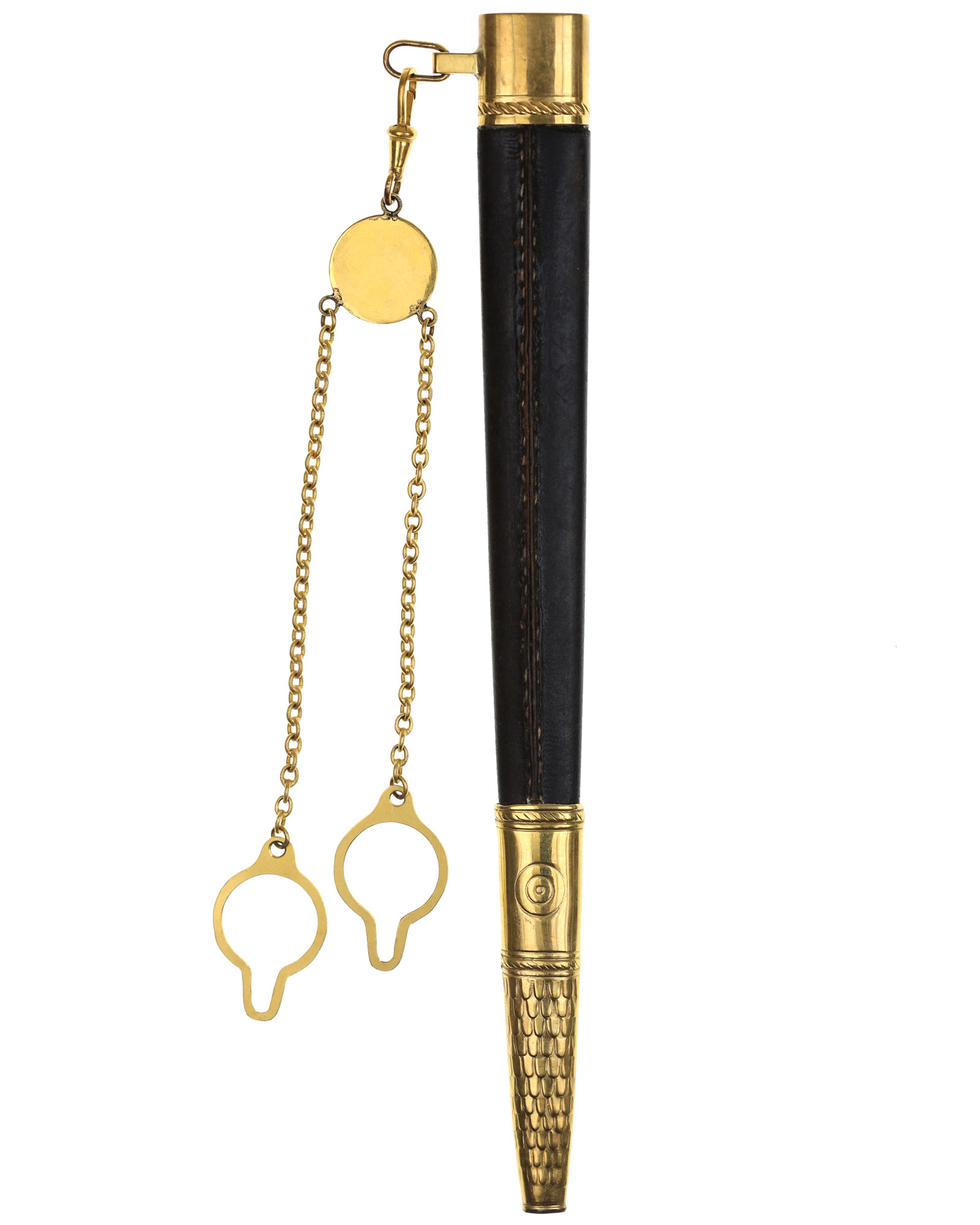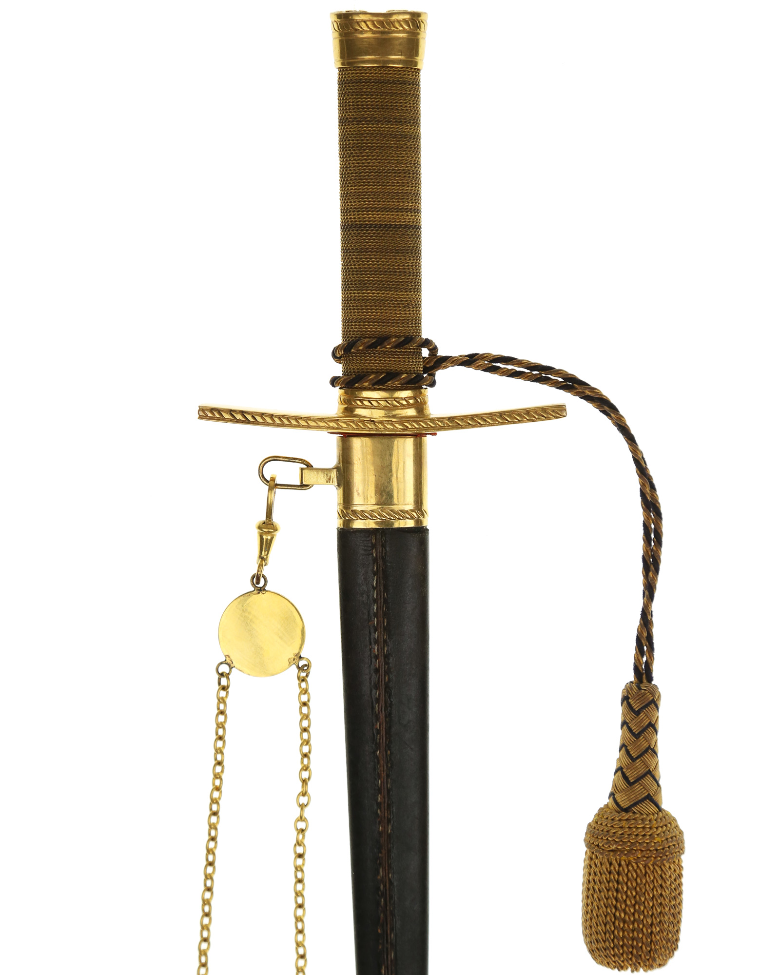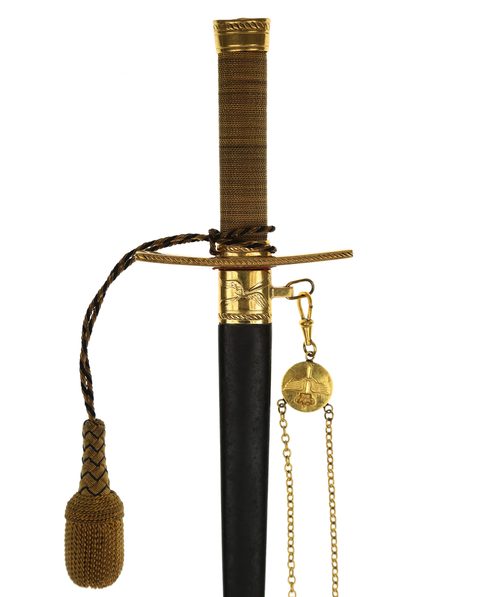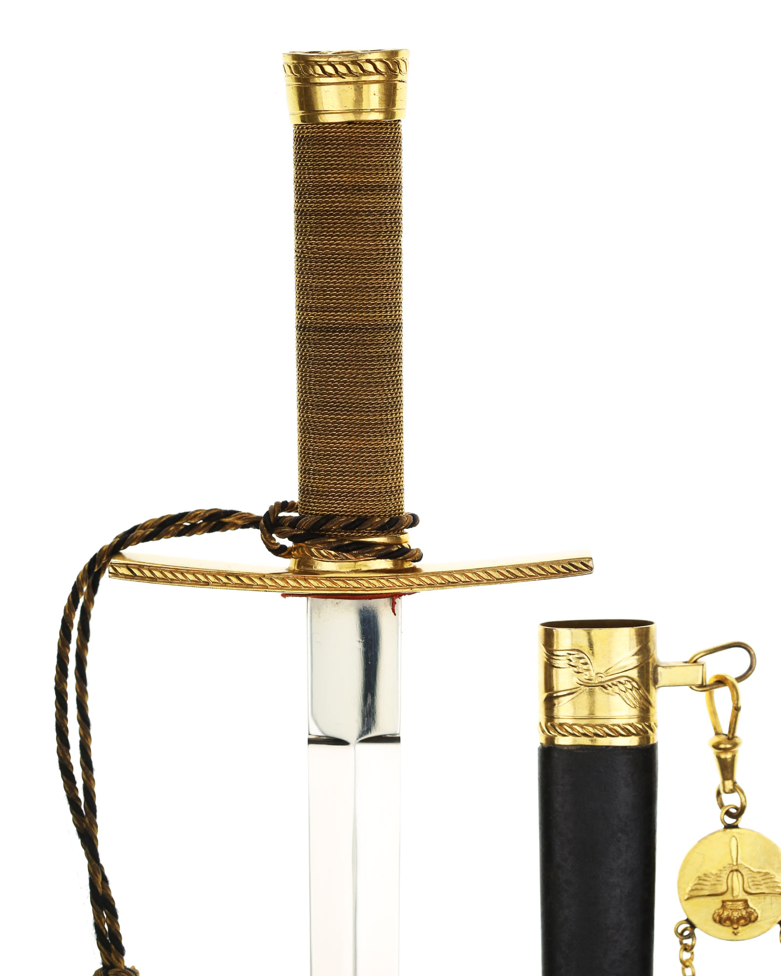 Ножны: Ножны деревянные, обтянутые черной кожей. Прибор ножен латунный, позолоченный, состоит из устья и наконечника. На устье помещено изображение перекрещенных пропеллера и крыльев. Наконечник украшен рельефным геометрическим орнаментом, а его нижняя часть декорирована «чешуей». На устье, в прямоугольном приливе, закреплено овальное колечко для крепления ремешка портупеи.