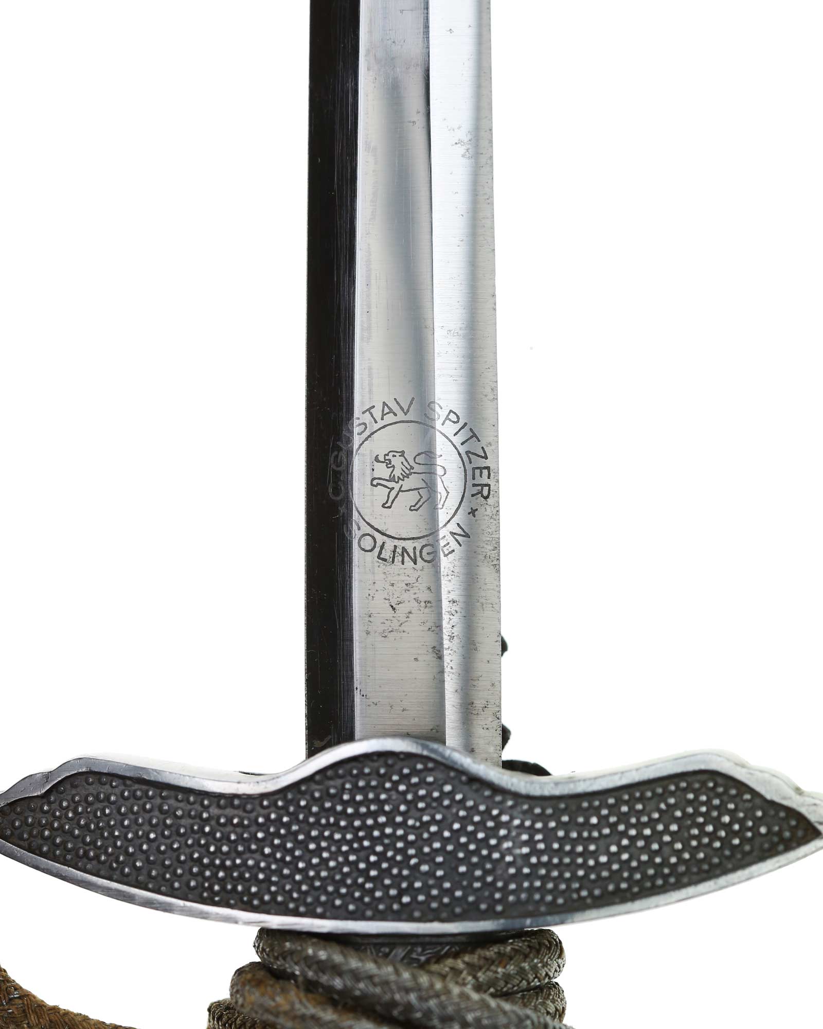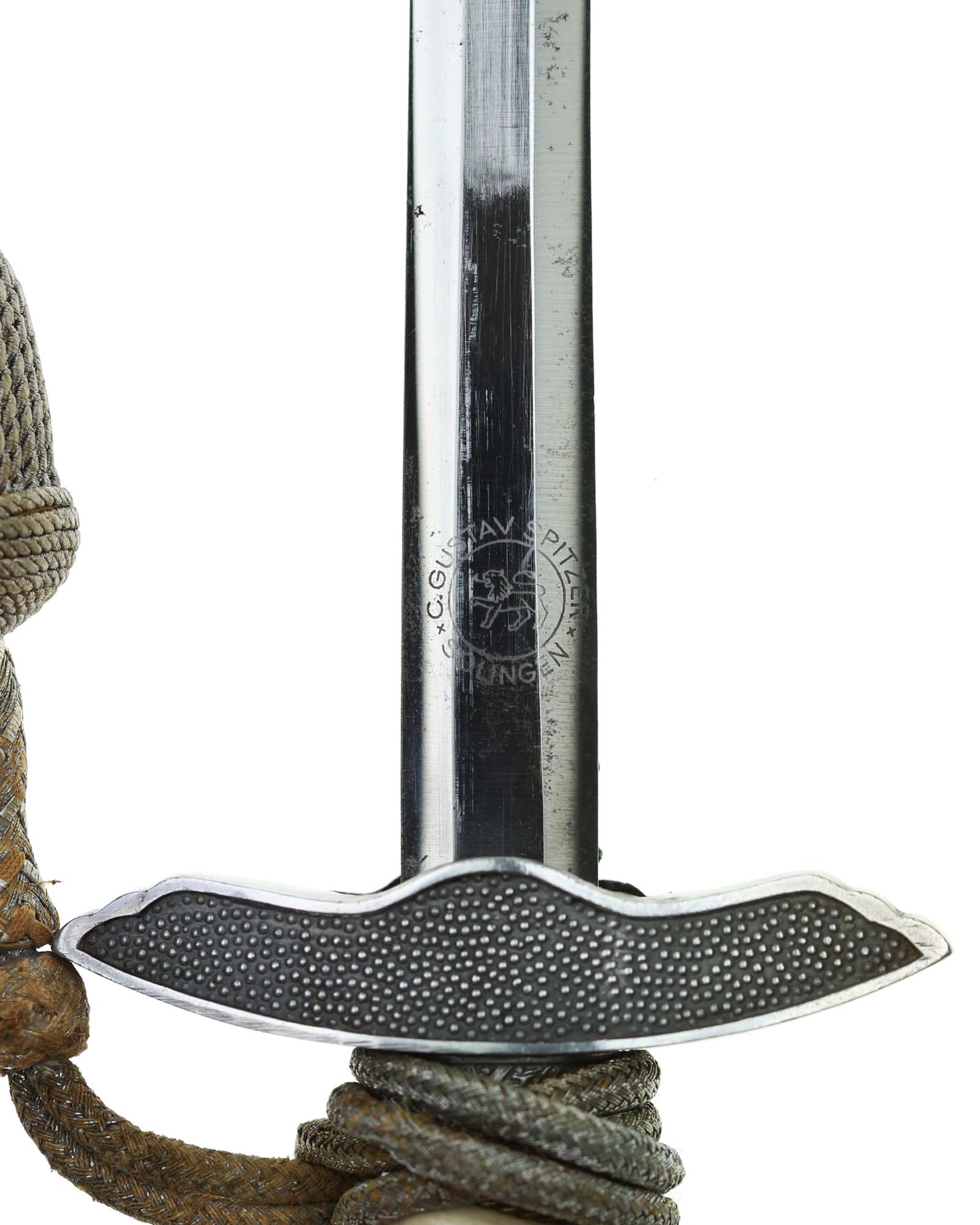 Клинок: Клинок прямой, двулезвийный, в сечении – шестигранный; боевой конец – ромбического сечения. На пяте клинка нанесено клеймо немецкой фирмы производителя «К. Густав Шпитцер, Золинген» (Gustav Spitzer, Solingen).