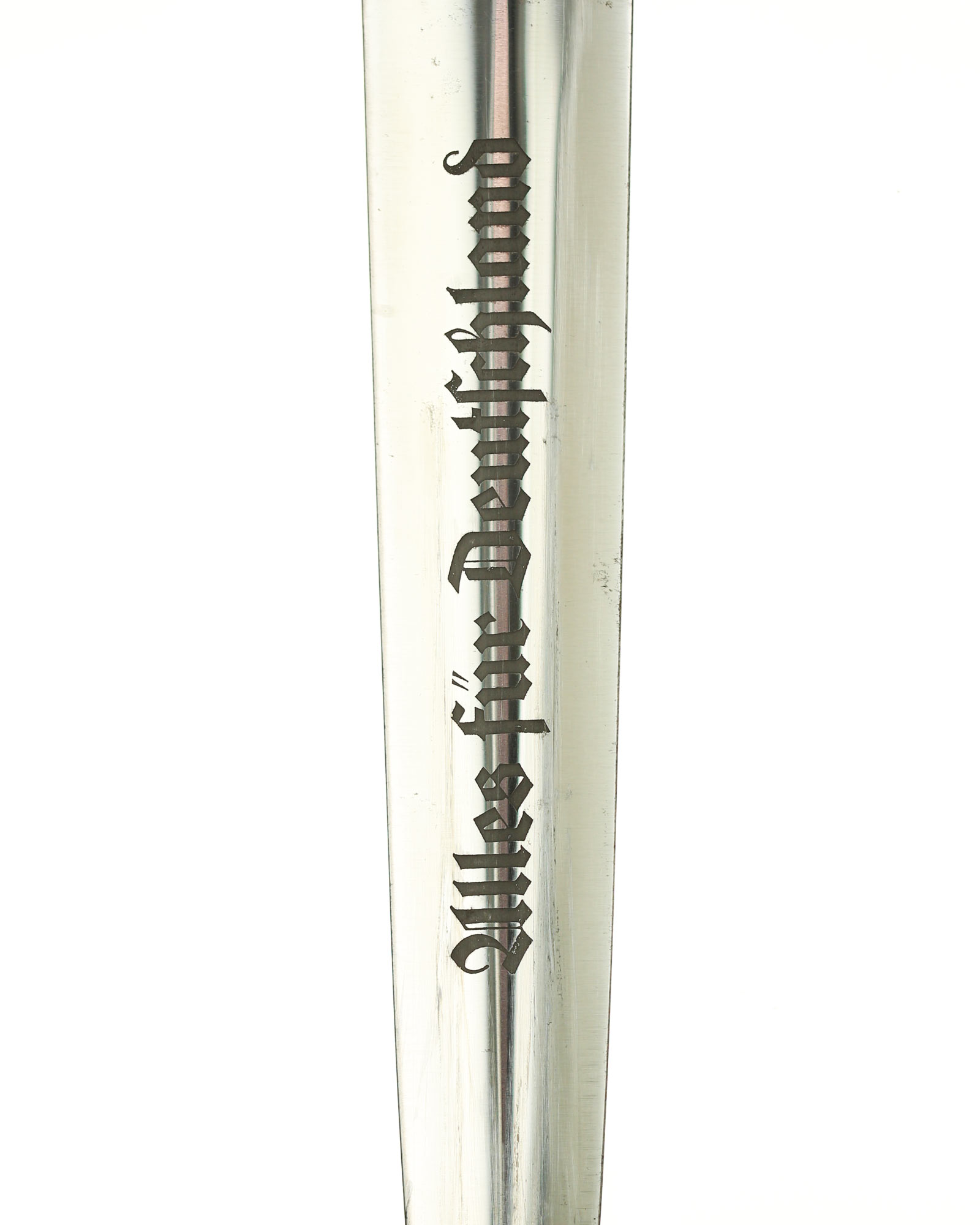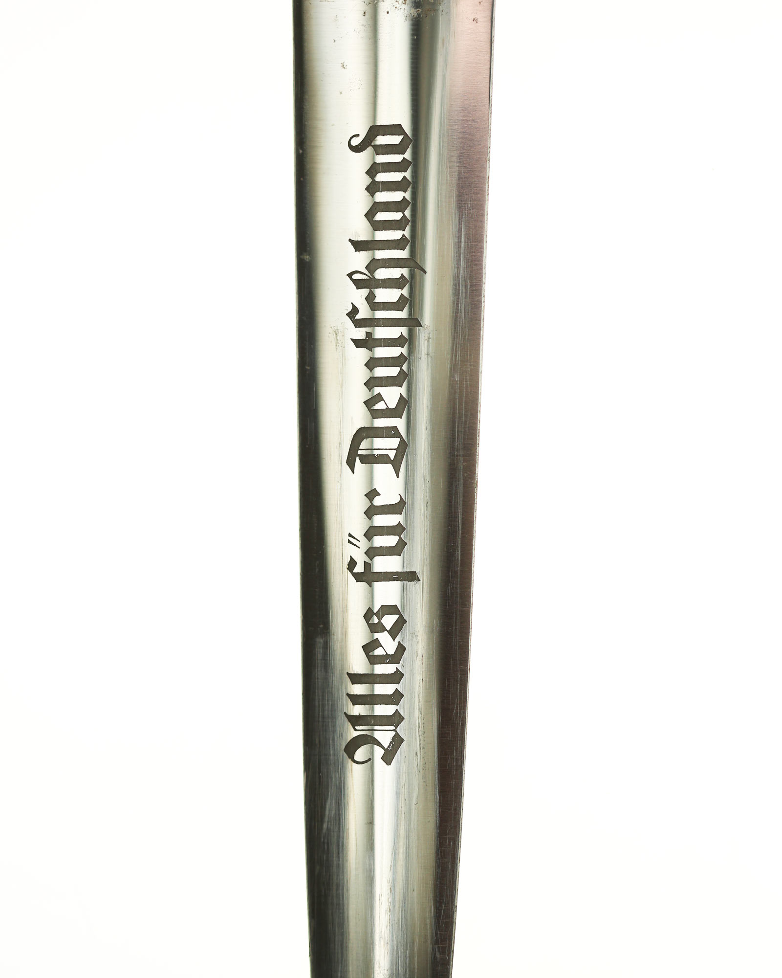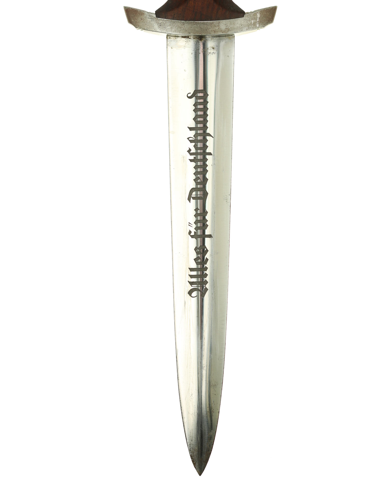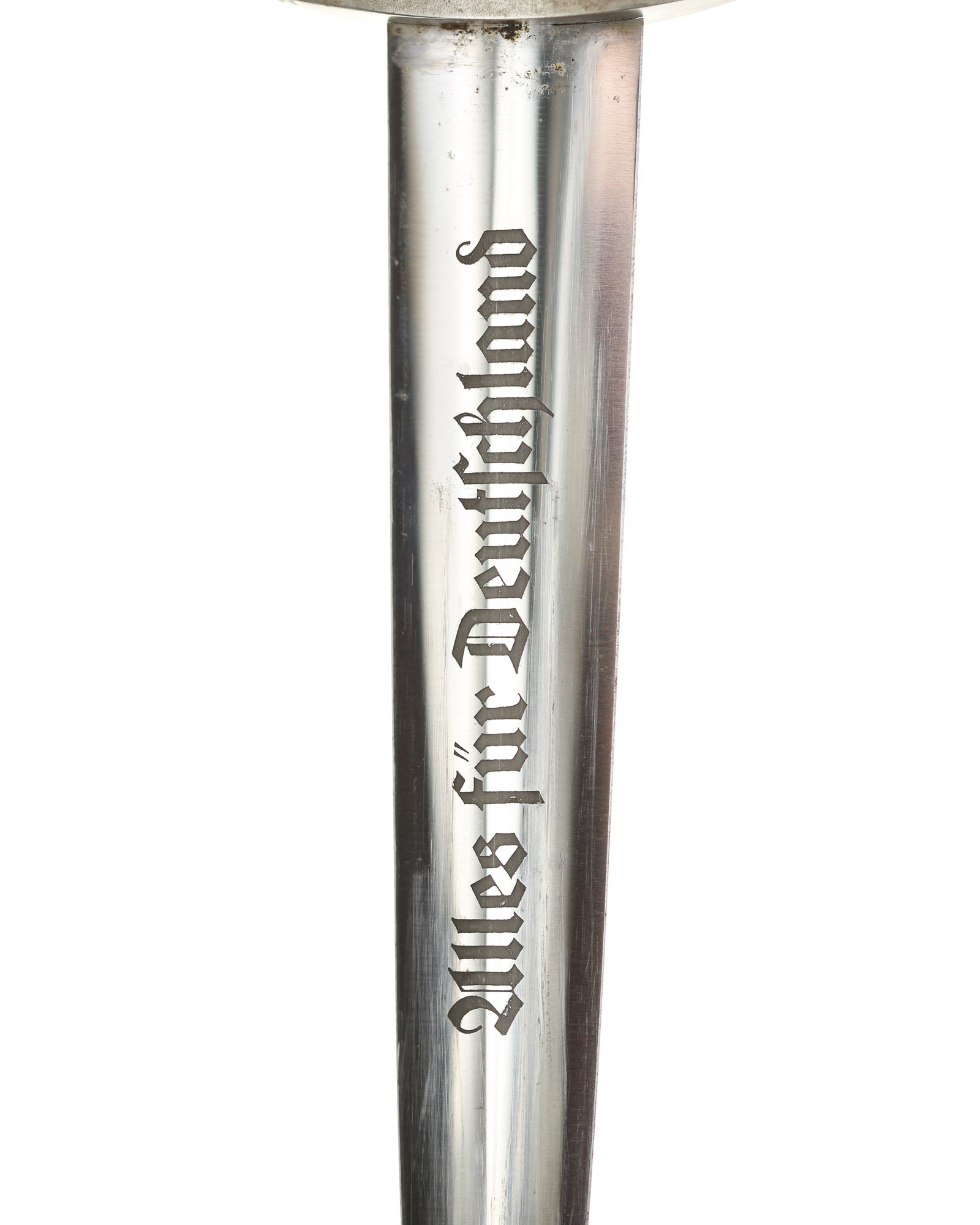 Клинок: Клинок кинжала прямой, стальной, двулезвийный, кинжального типа, с выраженным центральным ребром. На одной стороне клинка методом травления нанесен девиз СА «Всё для Германии» (Alles für Deutchland). Клинок на оборотной стороне у основания стоит клеймо производителя Вильгельм Кобер и Ко., Зуль (Willh. Kober & Co., Suhl Gegr.1874).