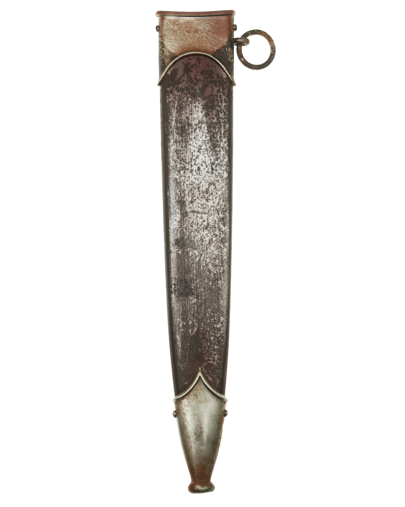 Ножны: Ножны стальные, окрашенные в коричневый цвет, с накладными наконечником и устьем с кольцом. Наконечник и устье ножен крепятся при помощи двух винтов. Прибор ножен изготовлен из белого металла и состоит из устья с гайкой и кольцом для подвешивания га ремень и устья с шариком.