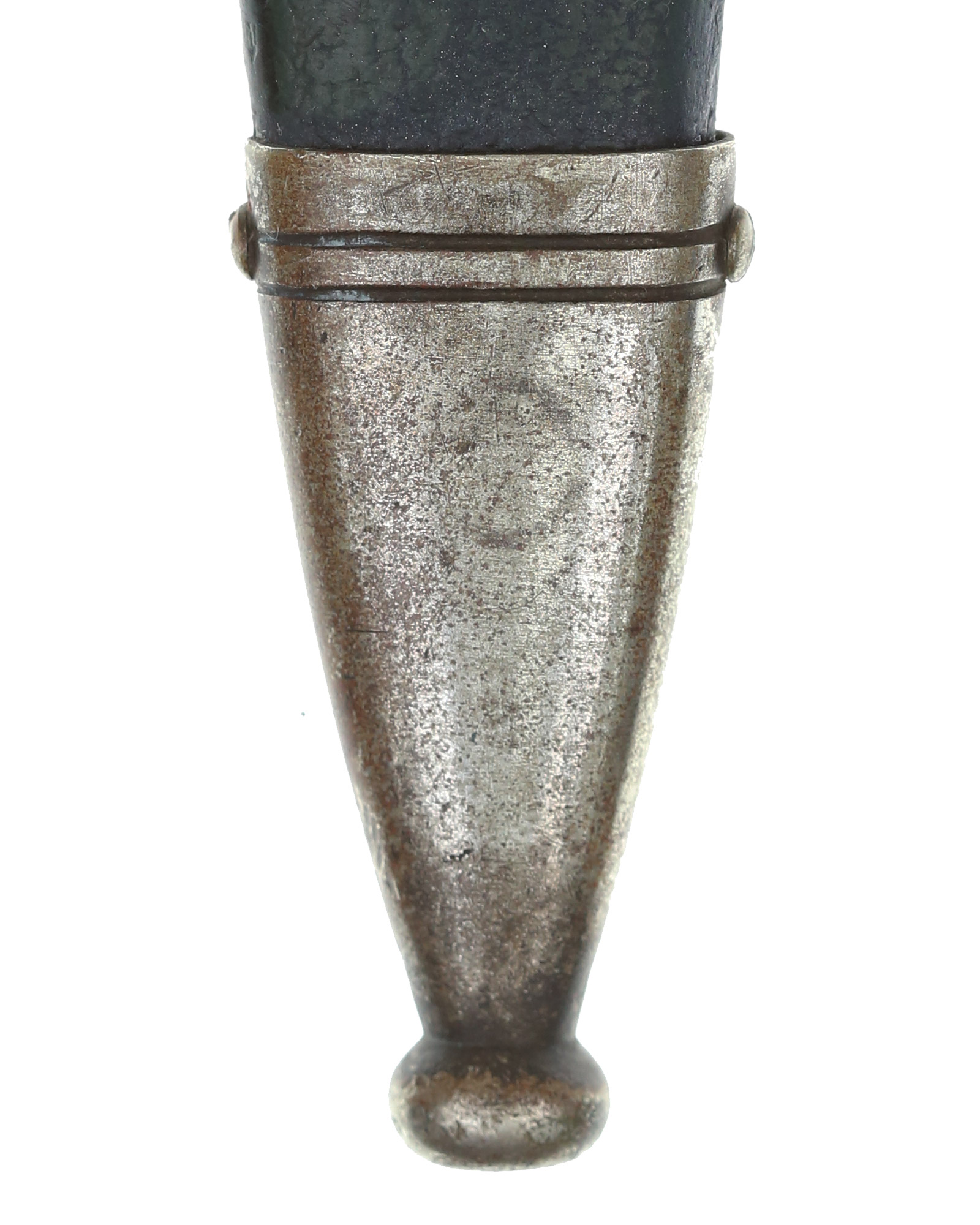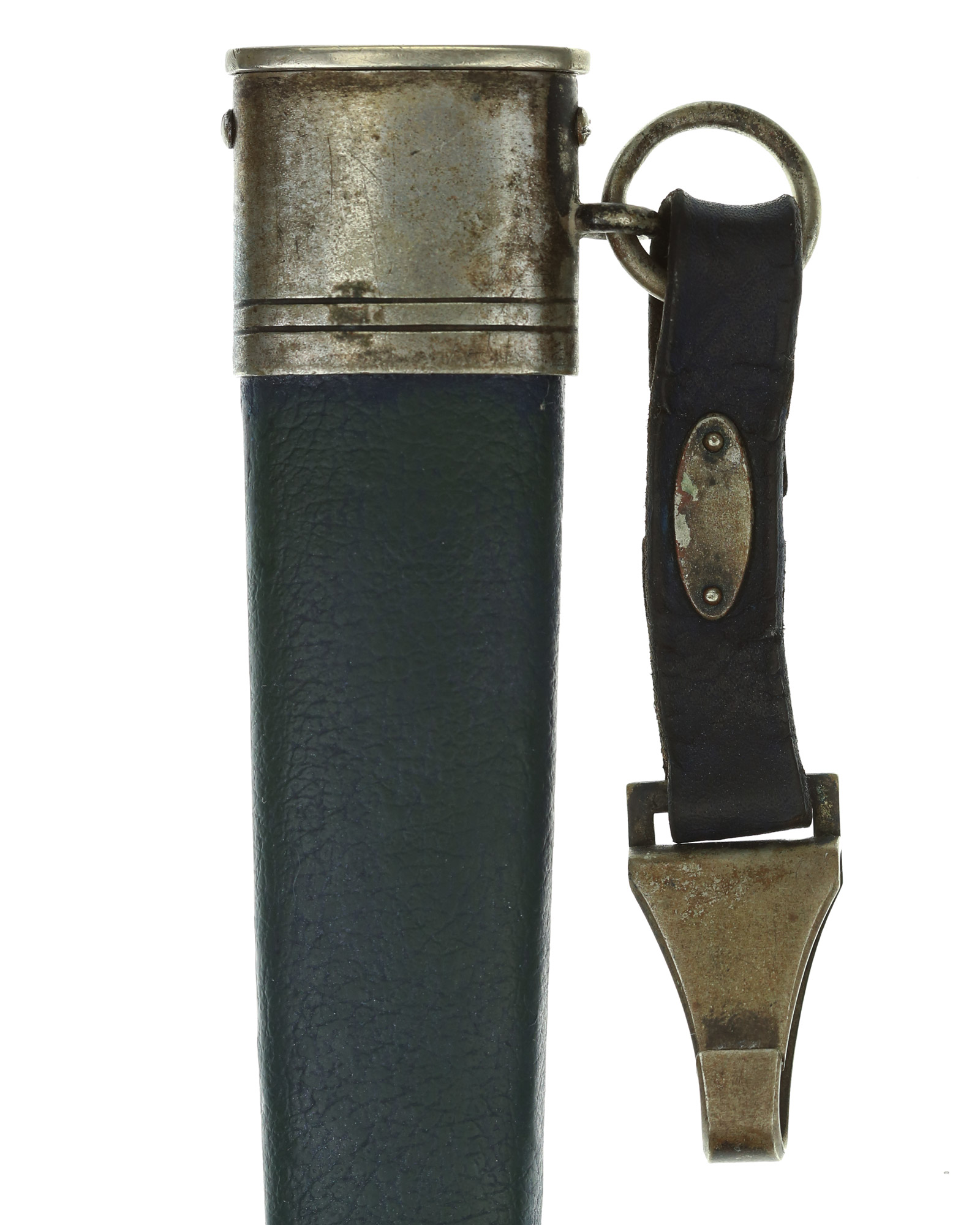 Ножны: Ножны металлические, обтянутые кожей. Прибор ножен из белого металла, состоит из широкого устья и наконечника, завершающегося овальной пуговкой. Устье и наконечник украшены двумя поперечными бороздками и крепятся к ножнам двумя винтами. Устье ножен: клеймо армейской приёмки DLV. На устье имеется подвижное колечко для ремешка.