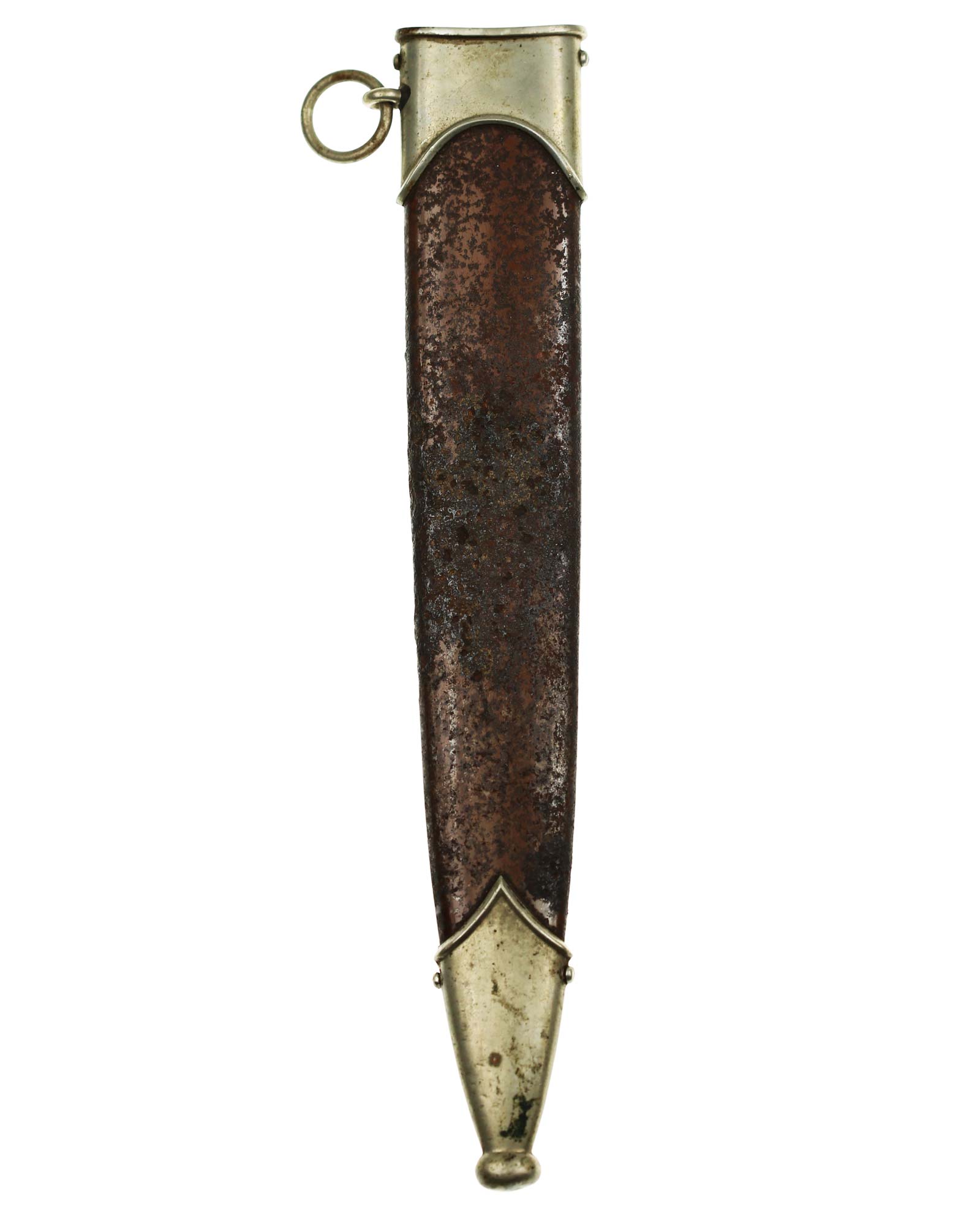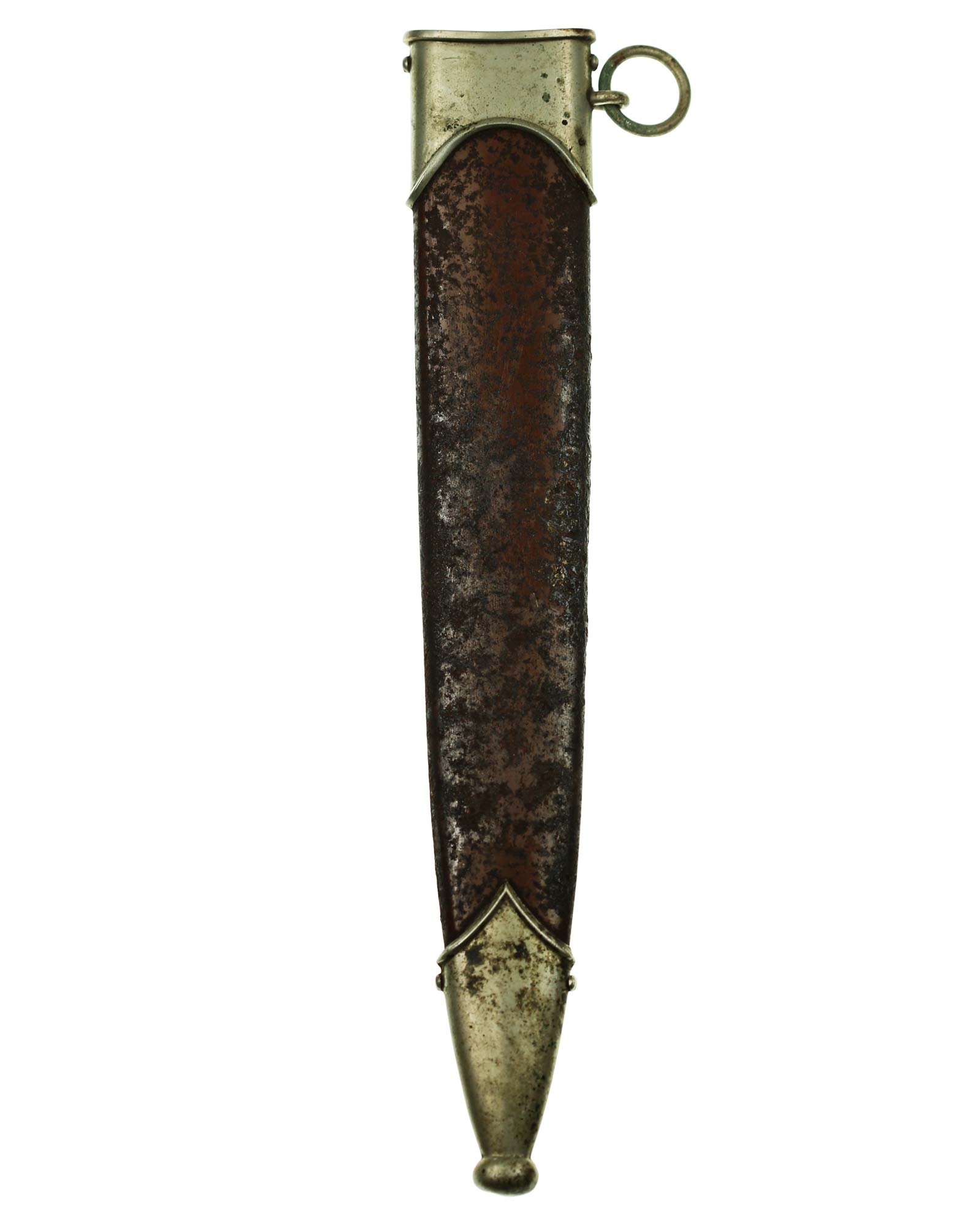Ножны: Ножны металлические в оригинальном коричневом оксидировании, с накладными наконечником и устьем с кольцом. Наконечник и устье ножен крепятся при помощи двух винтов.
