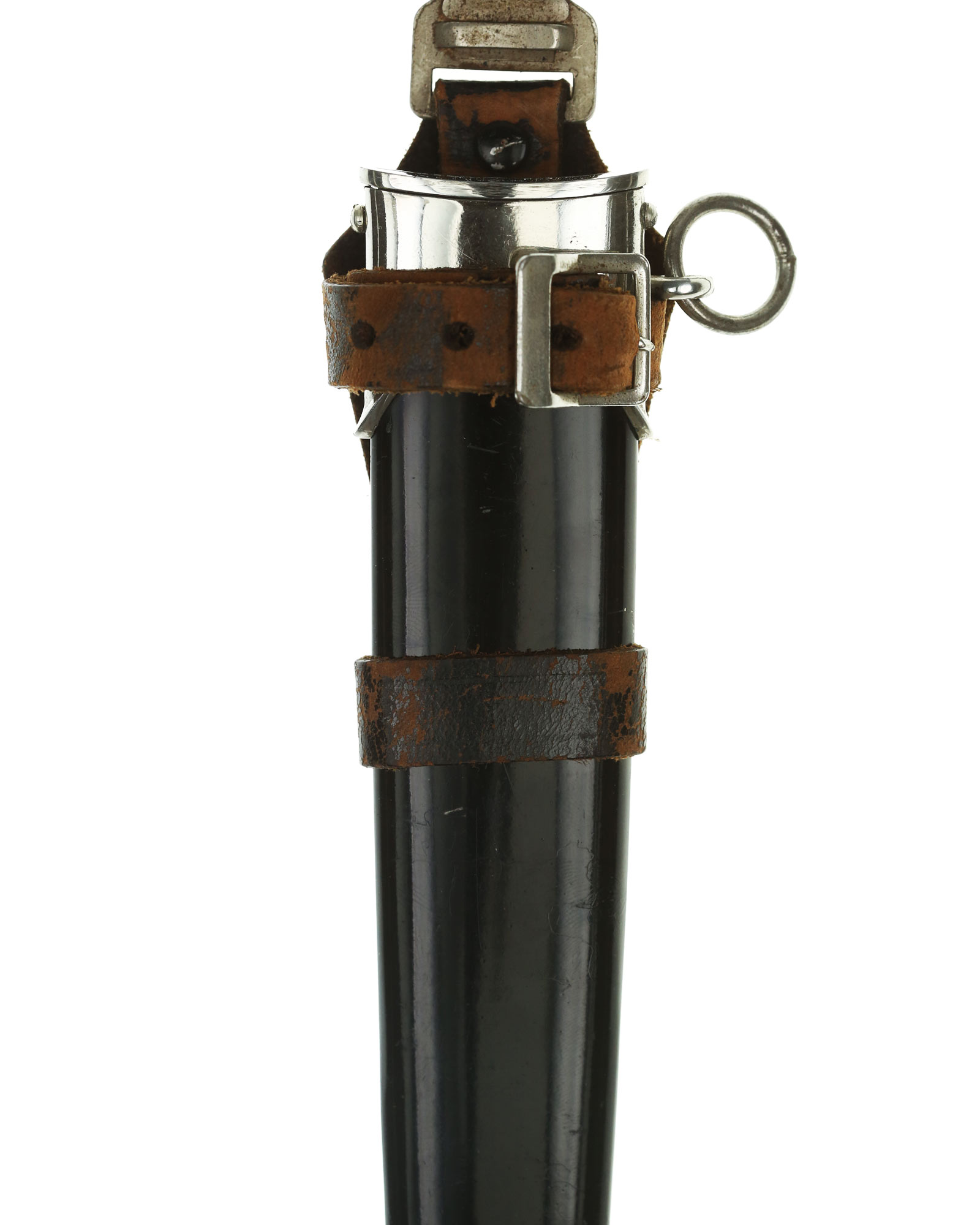 Ножны: Ножны металлические. Черные вороненные ножны с посеребренным прибором и одним подвижным кольцом для крепления к подвесу.