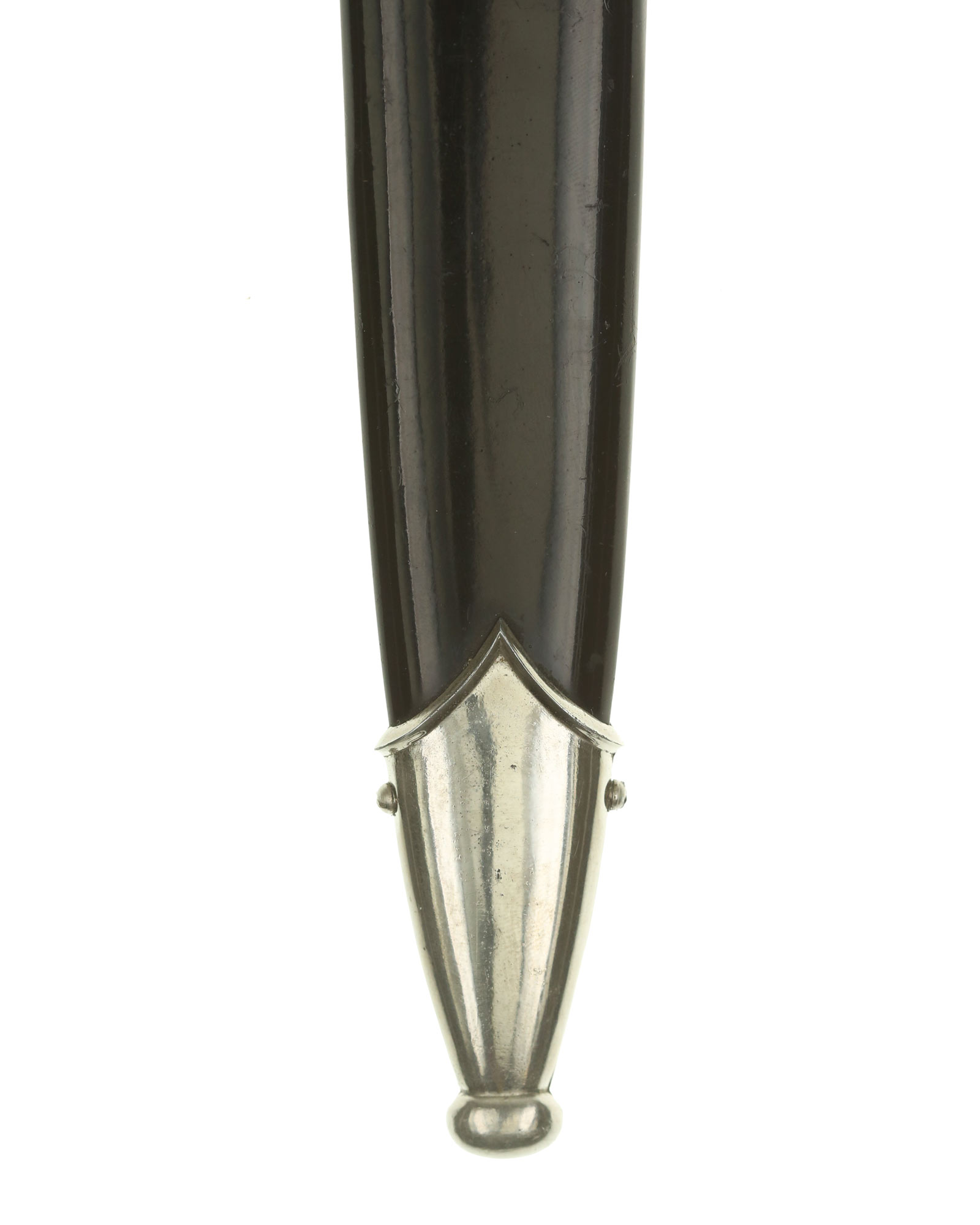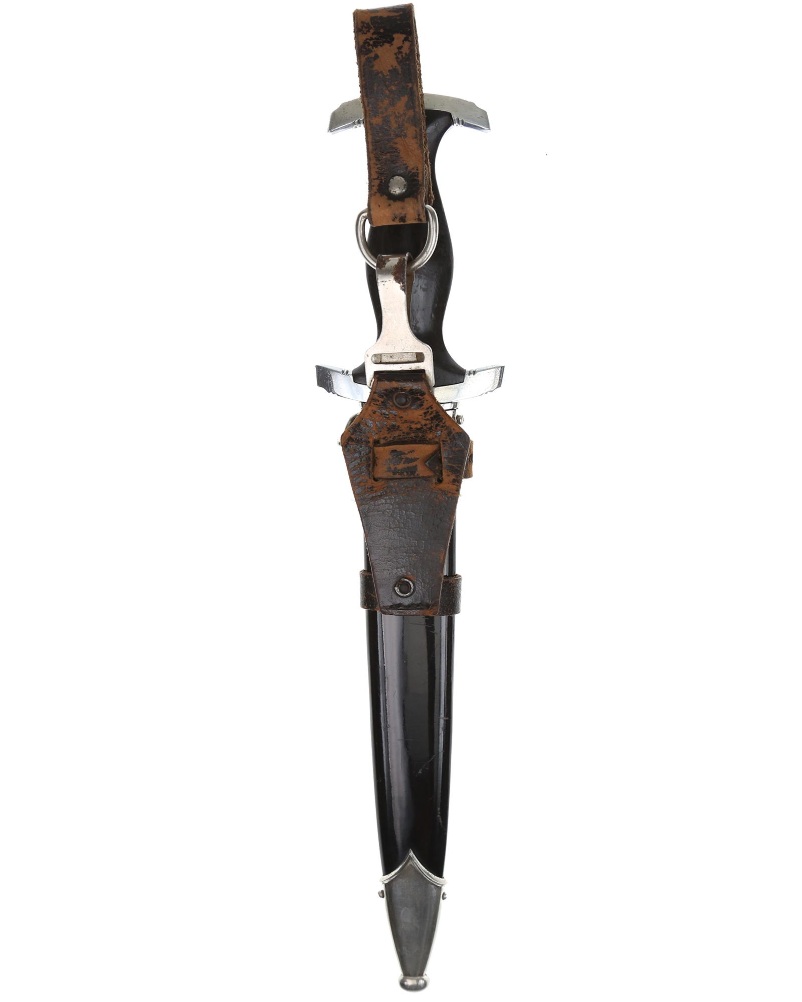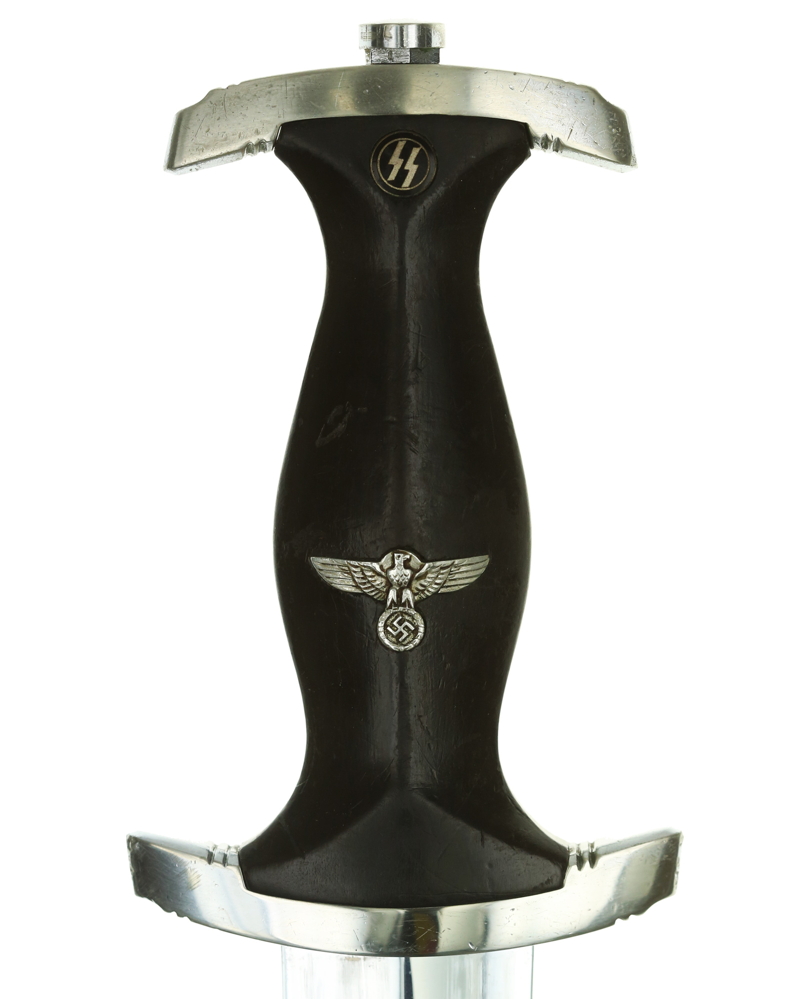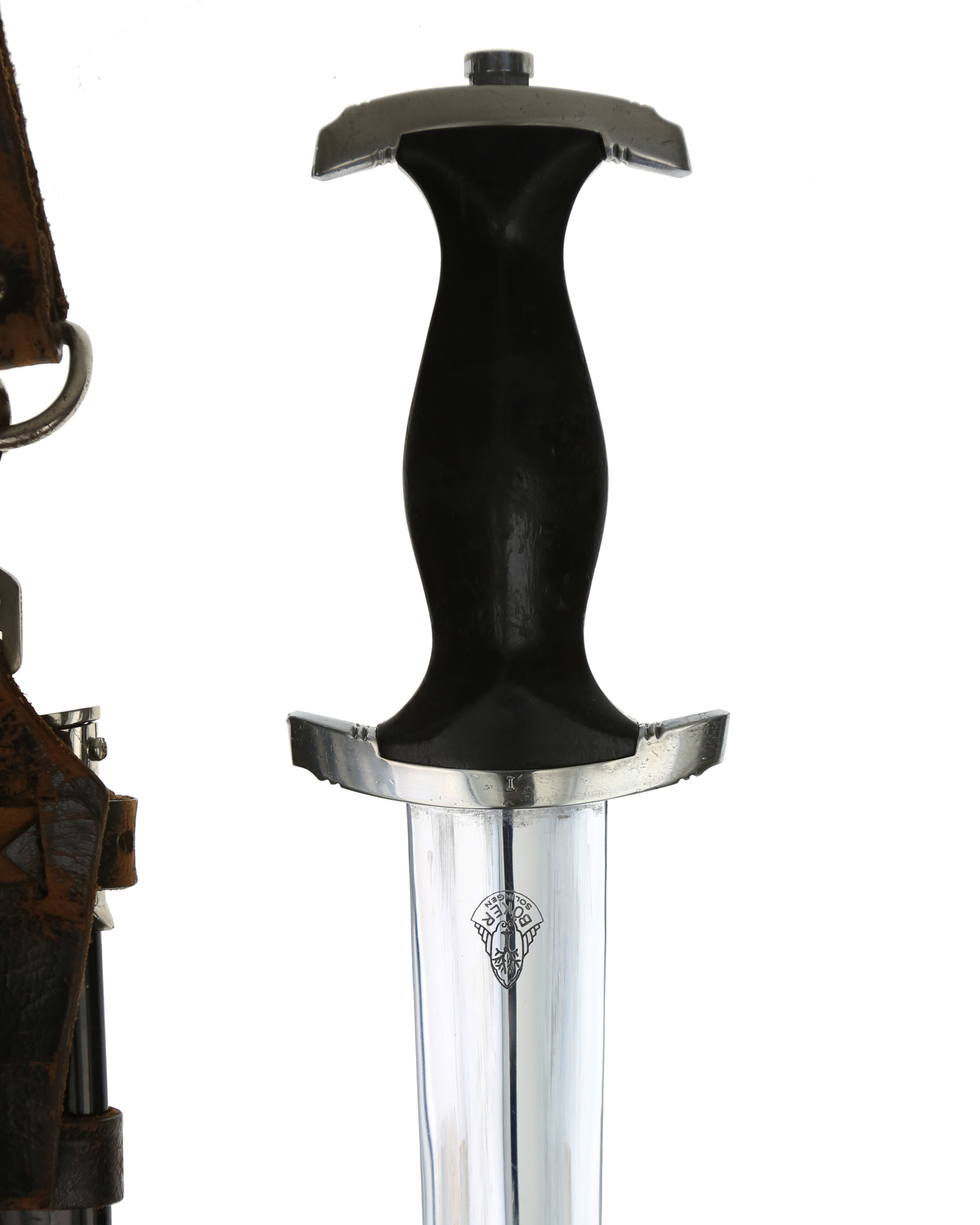 Ранний парадный кинжал СС [SS Schutzstaffel] образца 1933 года. Ранний период производства, 1933-1935 годы. Производитель фирма Хайнрих Беккер, Золинген (Heinrich Böker, Solingen). Длина в ножнах 37,3 см.