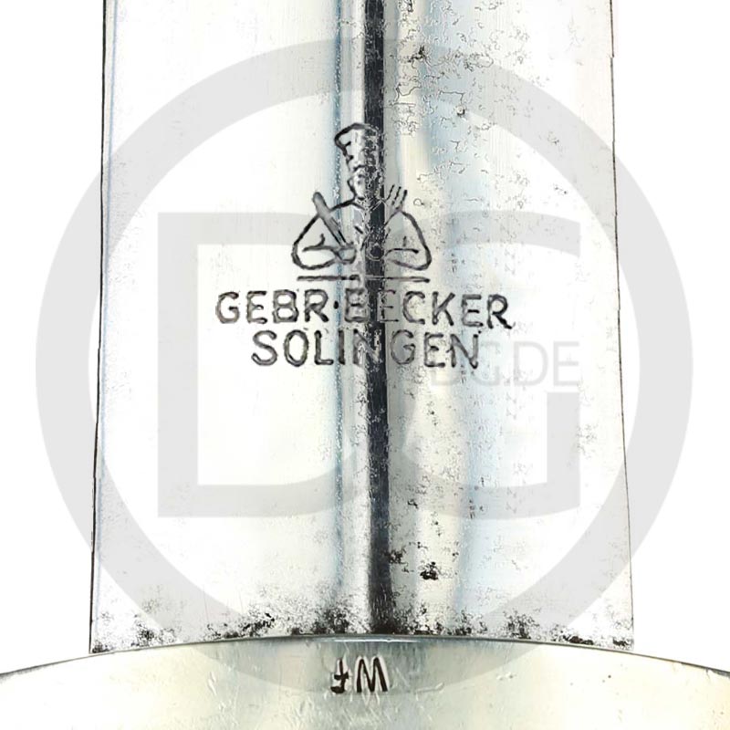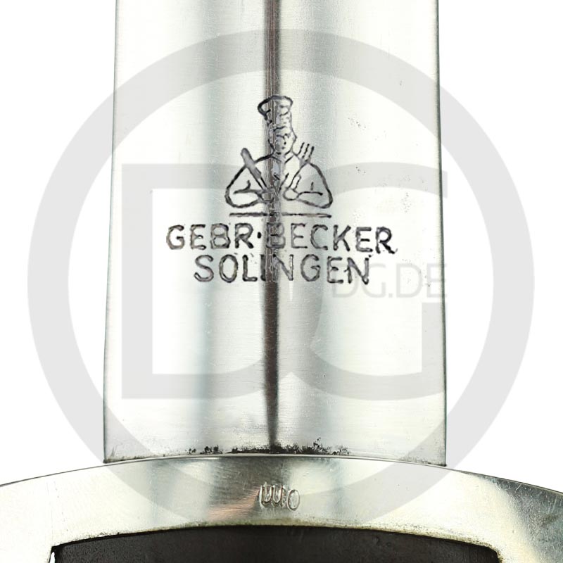 Клеймо «Братья Беккер» изображает повара в высокой шапке, держащего скрещённые нож и вилку. Этот необычный знак отсылает к первоначальной специализации фирмы — кухонным и хозяйственным изделиям. Тёмное круглое травление наносилось на обратную сторону клинков SA и считается одним из наиболее узнаваемых среди небольших производителей Золингена.