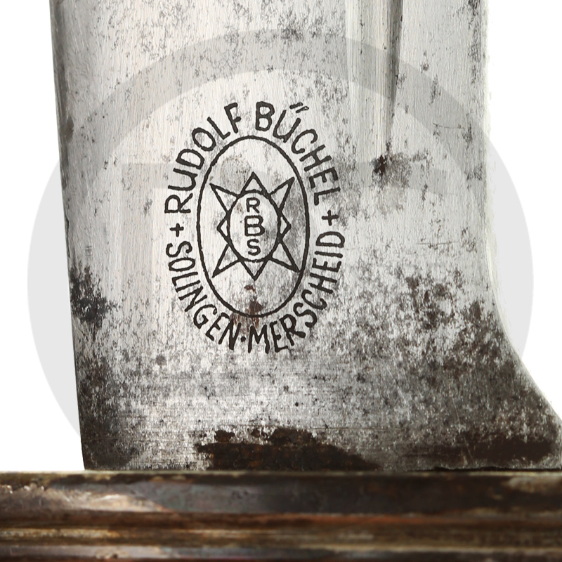 Компания Бюхель Рудольф (RBS), Stahlwarenfabrik, была основана в 1923 году в Золинген-Мершейд. Компания специализировалась на производстве стальных изделий и расширила ассортимент во времена нацистского режима за счёт холодного оружия, особенно кинжалов СА, Heer, Luftwaffe (2-я модель), штыков и сабель. Расположение в Золинген-Мершейд подчёркивает традиции региона как центра производства клинков в Германии. Reichsgau (SA): He, Ns.