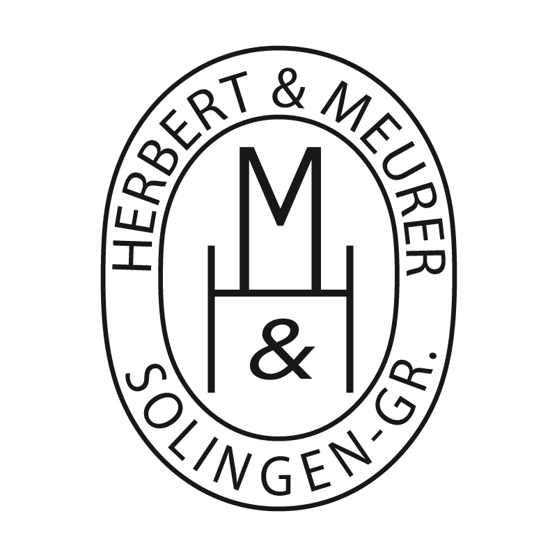 Логотип Хербертц & Мойрер представляет собой круговую эмблему в тёмно-сером цвете на прозрачном фоне. Текст "HERBERTZ & MEURER" размещён вдоль верхней дуги, а "SOLINGEN" вдоль нижней дуги. В центре - стилизованный монограмм "H M" с мечом снизу. Дизайн символизирует традицию и качество и обычно вытравливался на клинках.