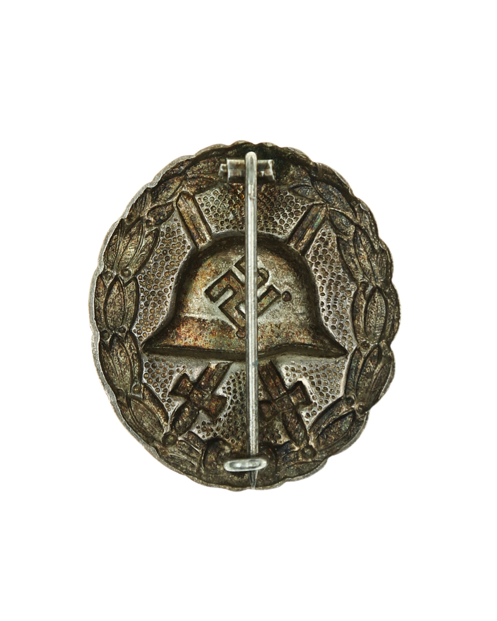 Знак «За ранение» в серебре, тип «Кондор». Учрежден 1 сентября 1939 г. Награждались военнослужащие немецкой армии, получившие ранения или искалеченные в боевых действиях. С 1943 года награждались также гражданские лица, раненные во время бомбежек.