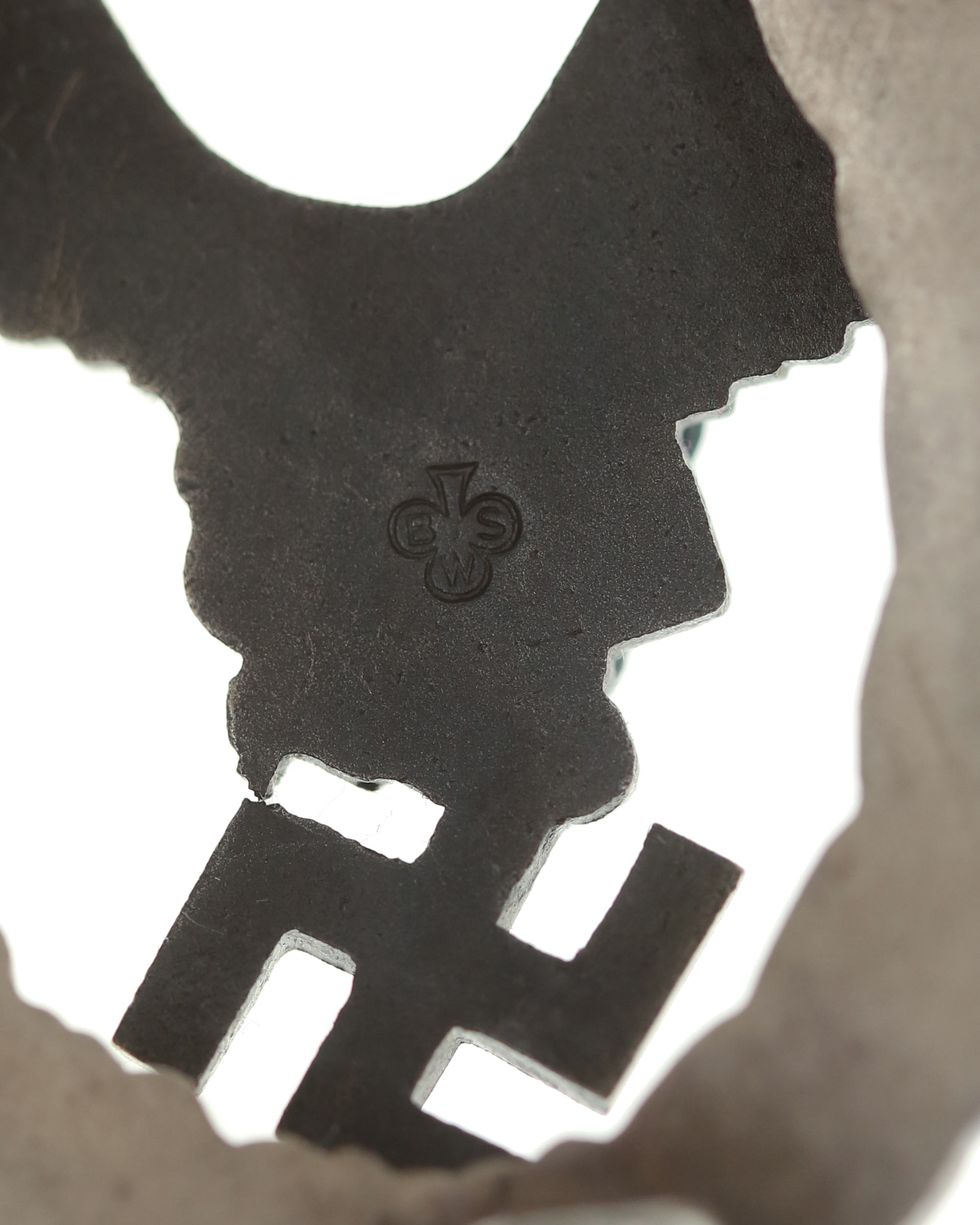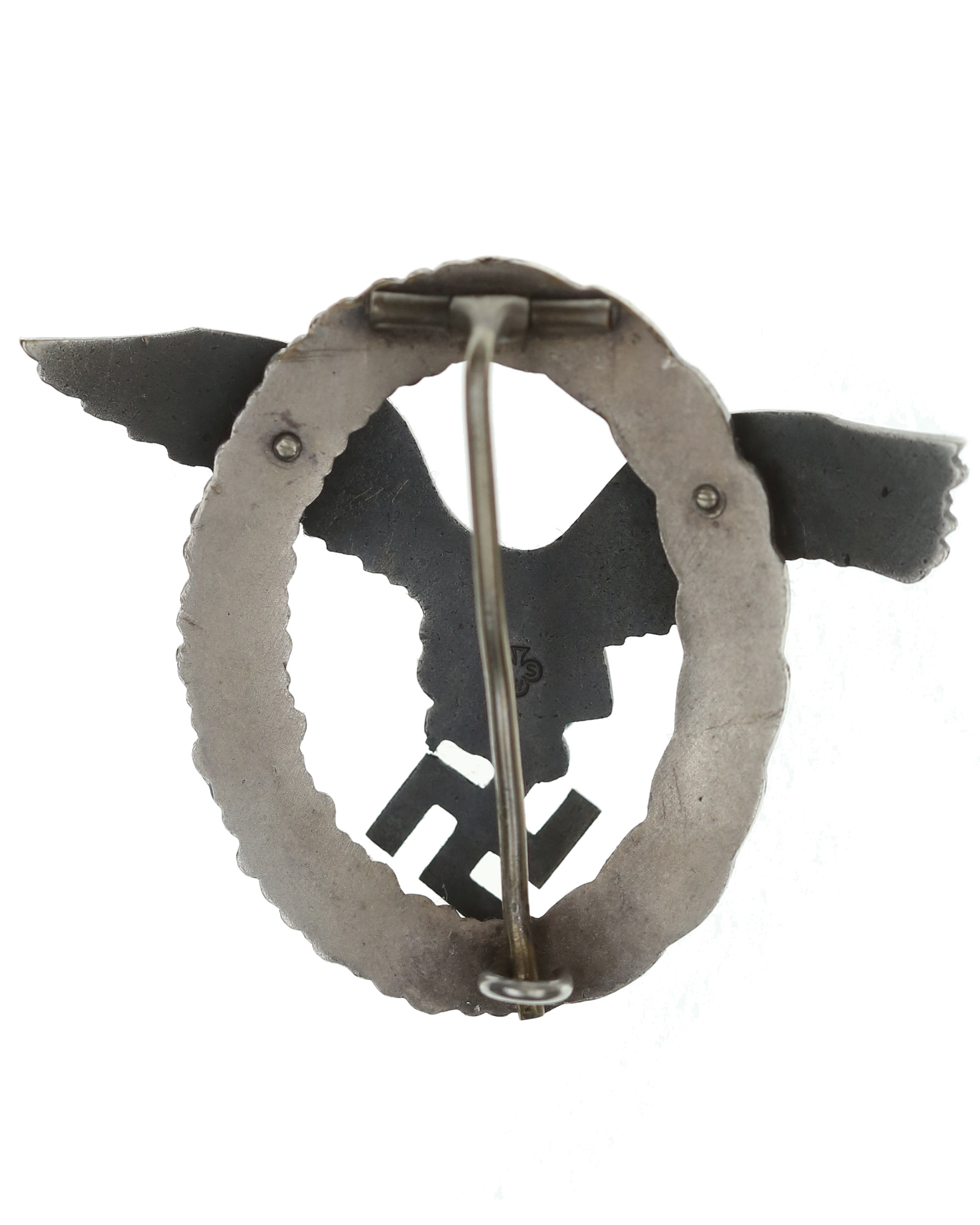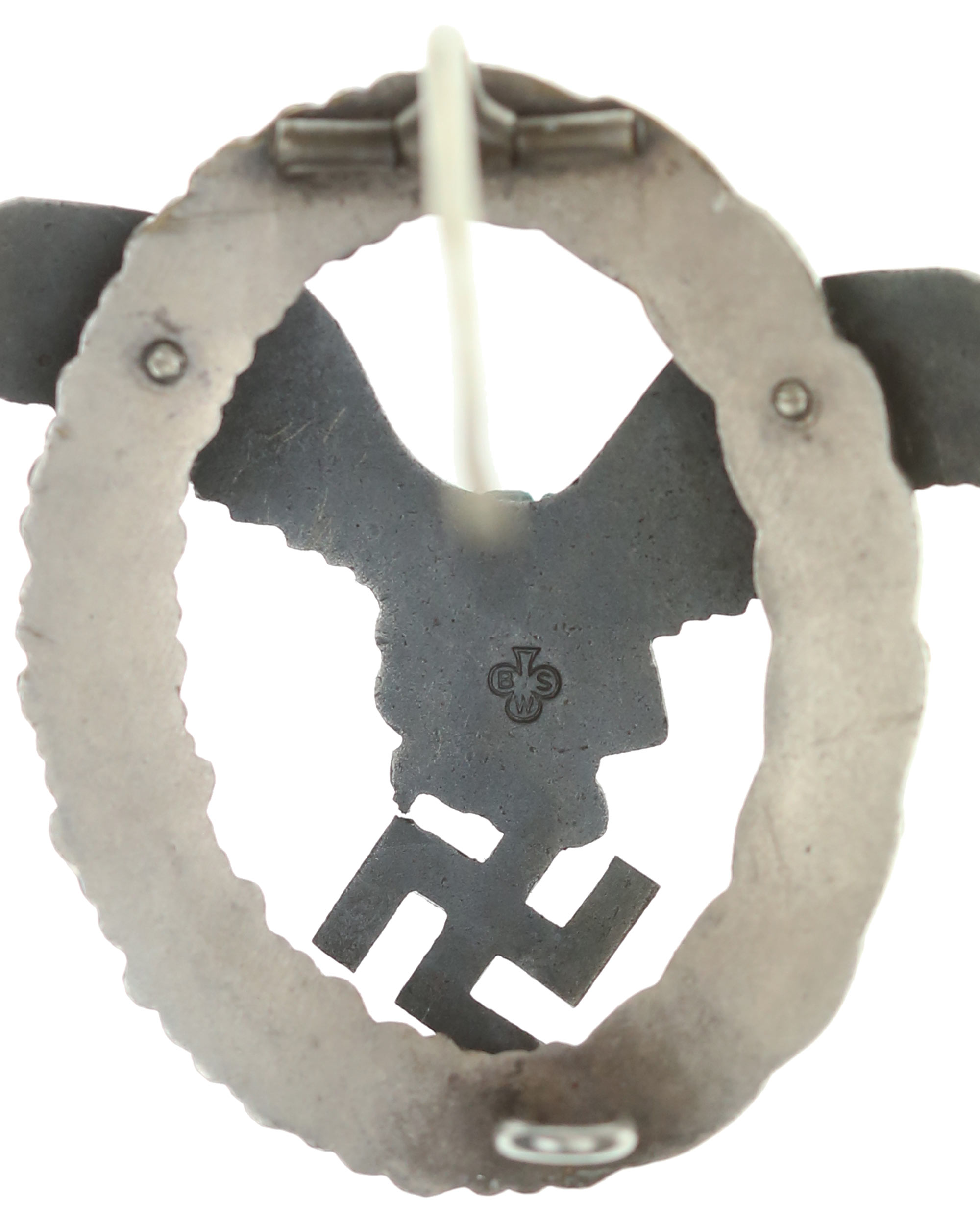 Квалификационный нагрудный знак пилота Люфтваффе, изготовленный из бунтметалла. На обратной стороне стоит маркировка изготовителя BSW - Brüder Schneider, Wien.